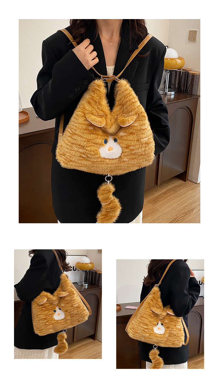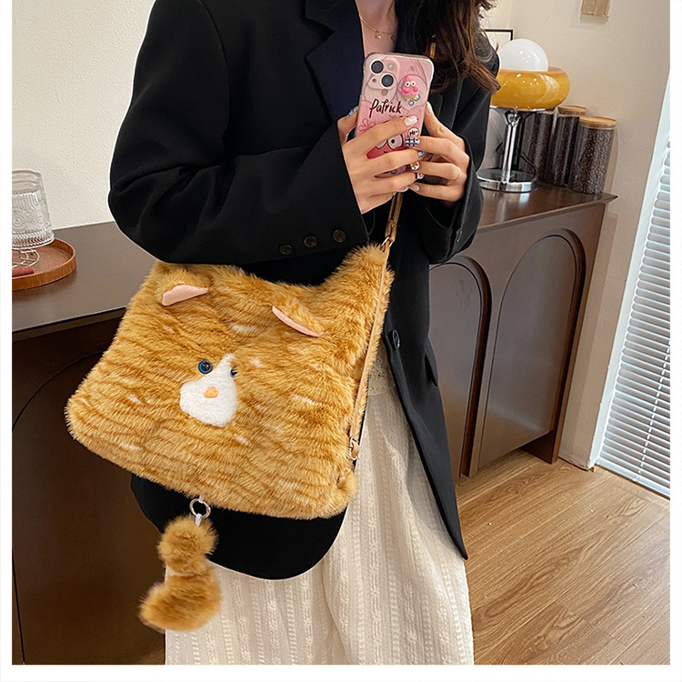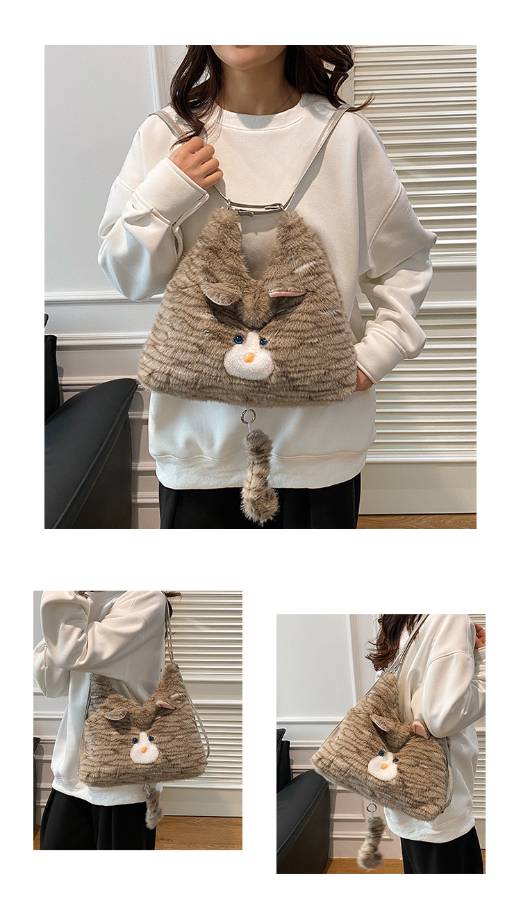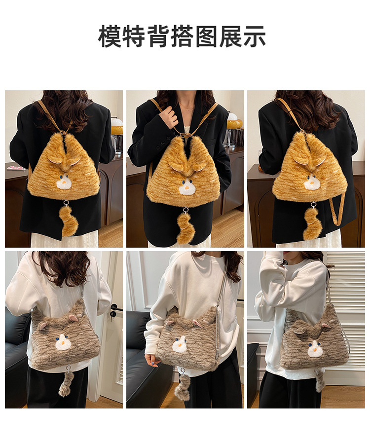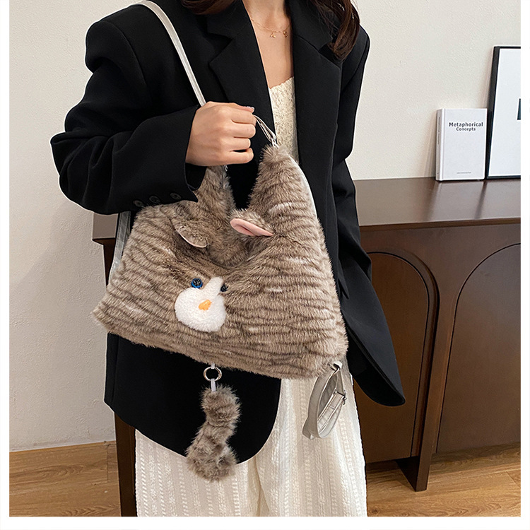 한국 스타일 봉제 귀여운 고양이 겨드랑이 가방 여성 2024 새 겨울 배낭 대용량 통근 토트 백