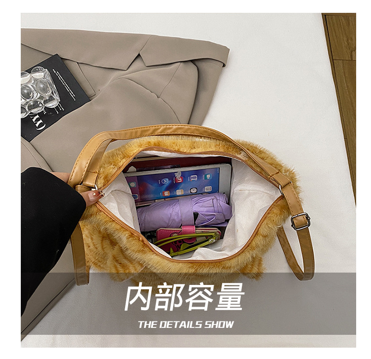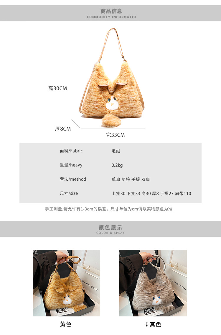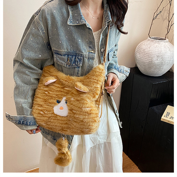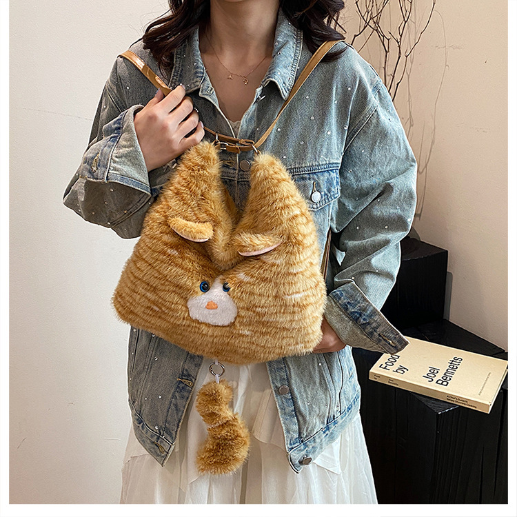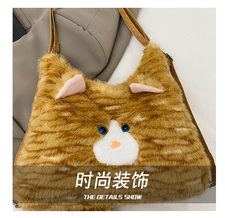 한국 스타일 봉제 귀여운 고양이 겨드랑이 가방 여성 2024 새 겨울 배낭 대용량 통근 토트 백
