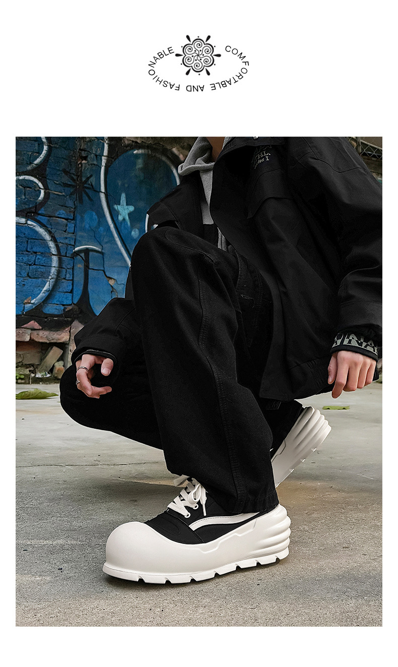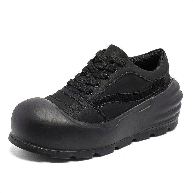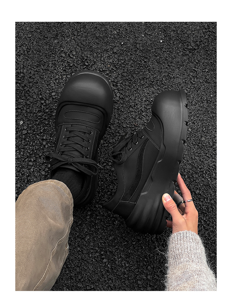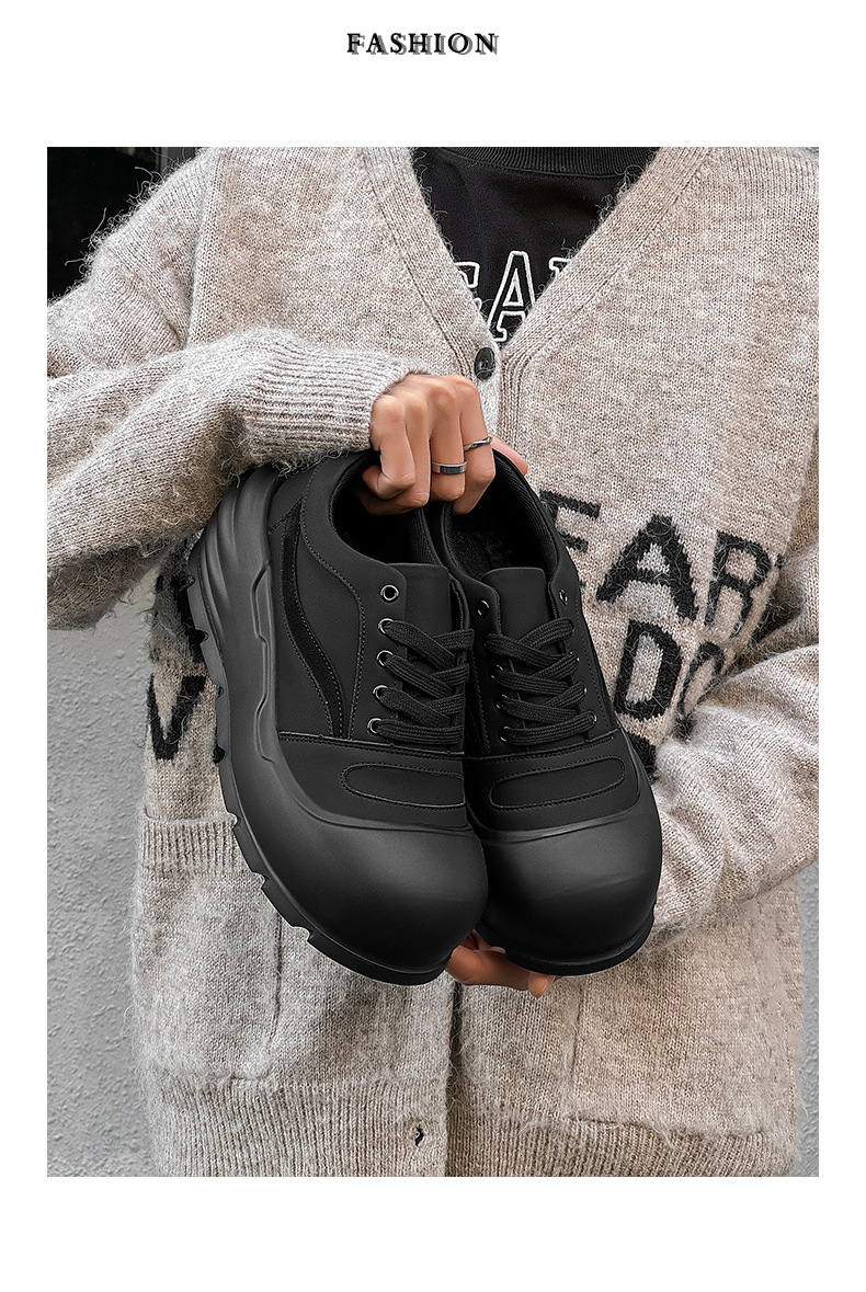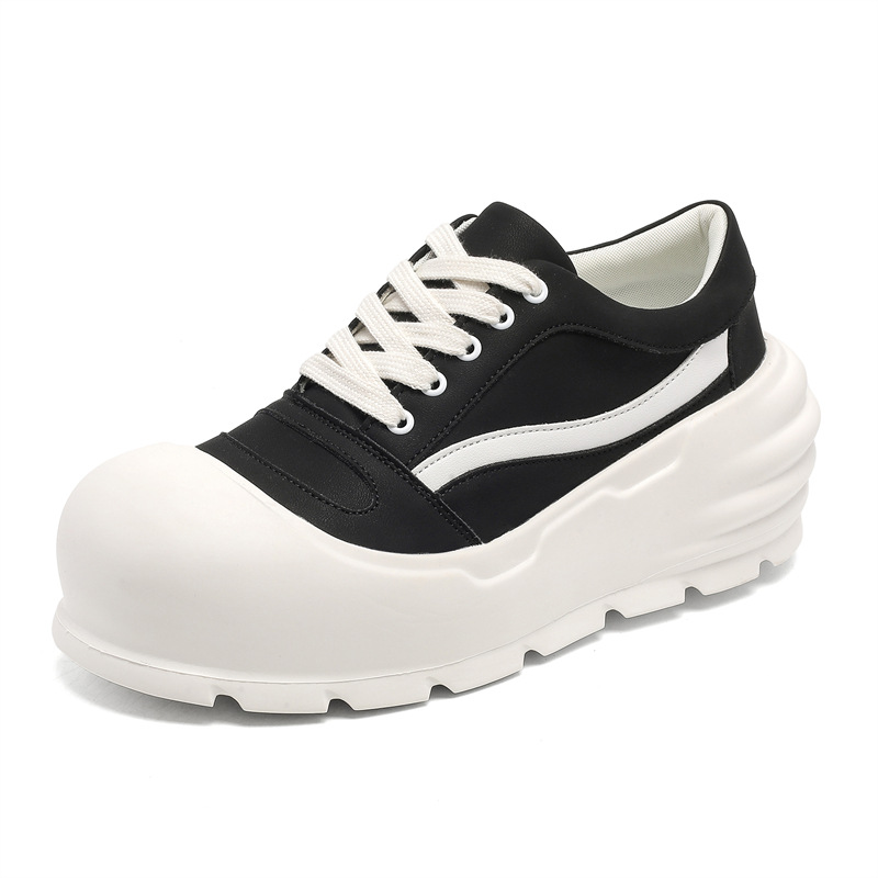 추악한 귀여운 신발 트렌드 올 매치 아빠 신발 라운드 발가락 빵 신발 2024 가을과 겨울 새로운 큰 머리 두꺼운 바닥 높이 증가 보드 신발스토어 가기
