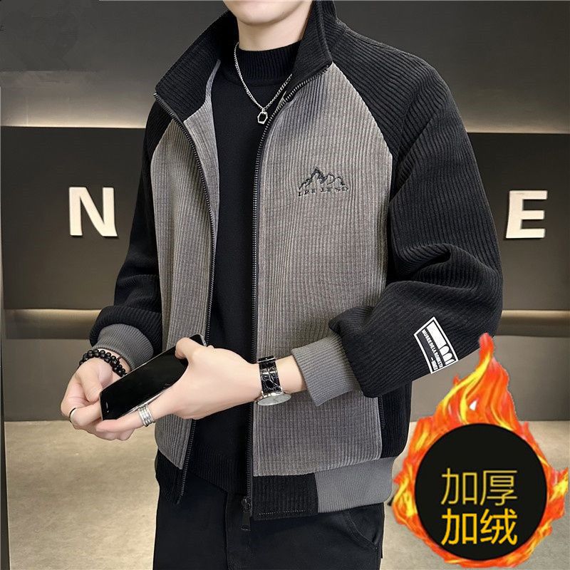 2024 가을과 겨울 새 기모 두껍게 된 고급 남성 칼라 코트 한국 스티칭 캐주얼 코듀로이 재킷 남성
