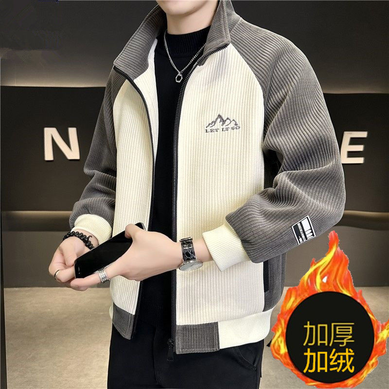 2024 가을과 겨울 새 기모 두껍게 된 고급 남성 칼라 코트 한국 스티칭 캐주얼 코듀로이 재킷 남성스토어 가기