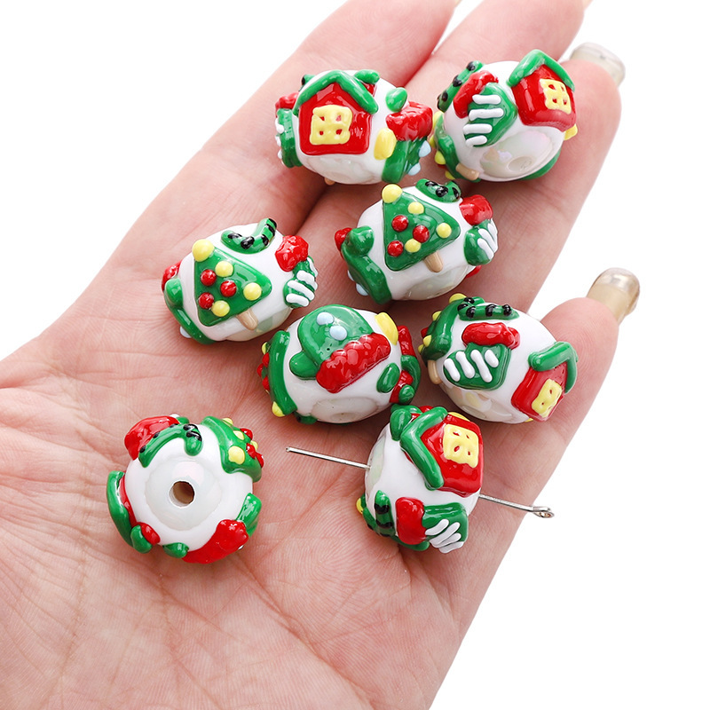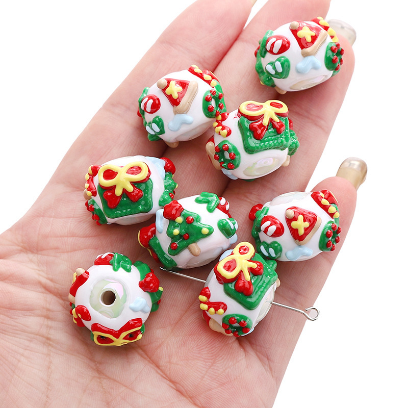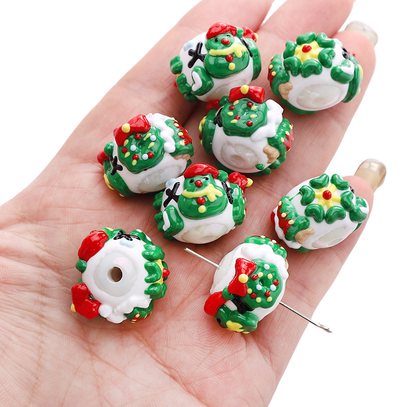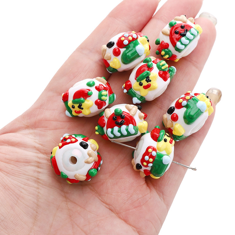 아크릴 크리스마스 손으로 그린 구슬 진저 브레드 맨 만화 구슬 펜던트 수제 DIY 구슬 팔찌 휴대 전화 체인 액세서리스토어 가기