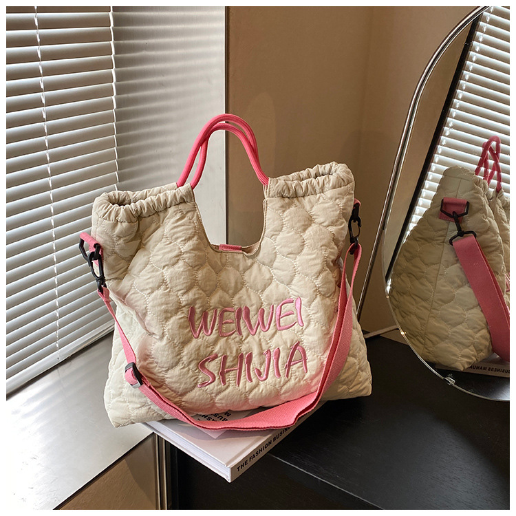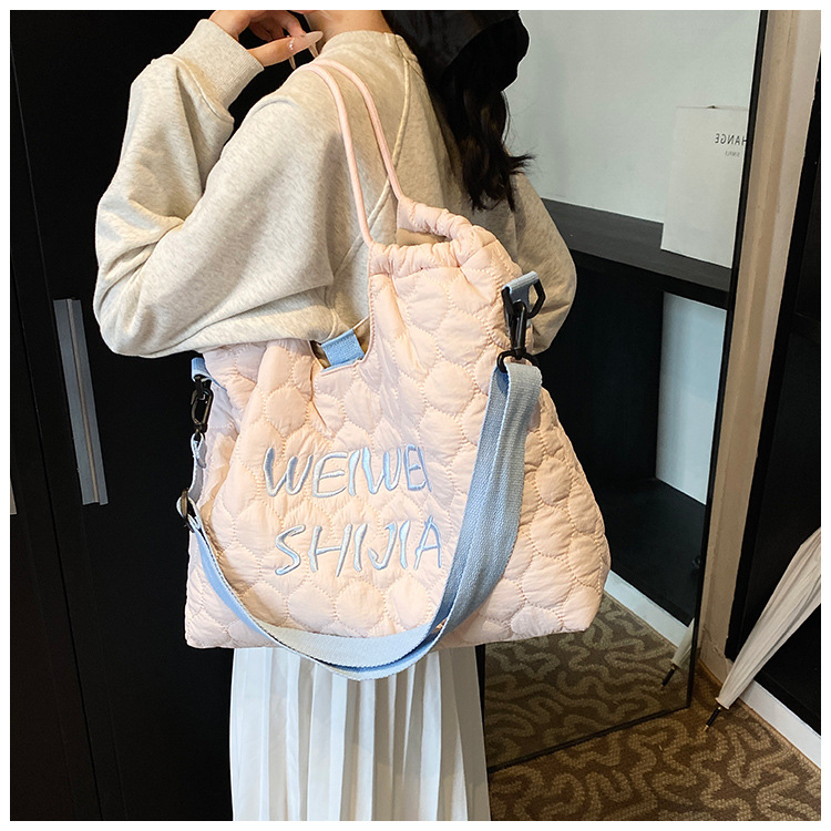 국경 간 대용량 자수 학생 통근 가방 새로운 핸드 토트 백 도파민 경량 어깨 메신저 백