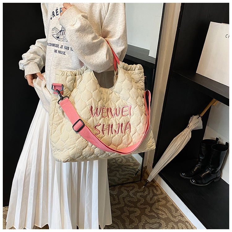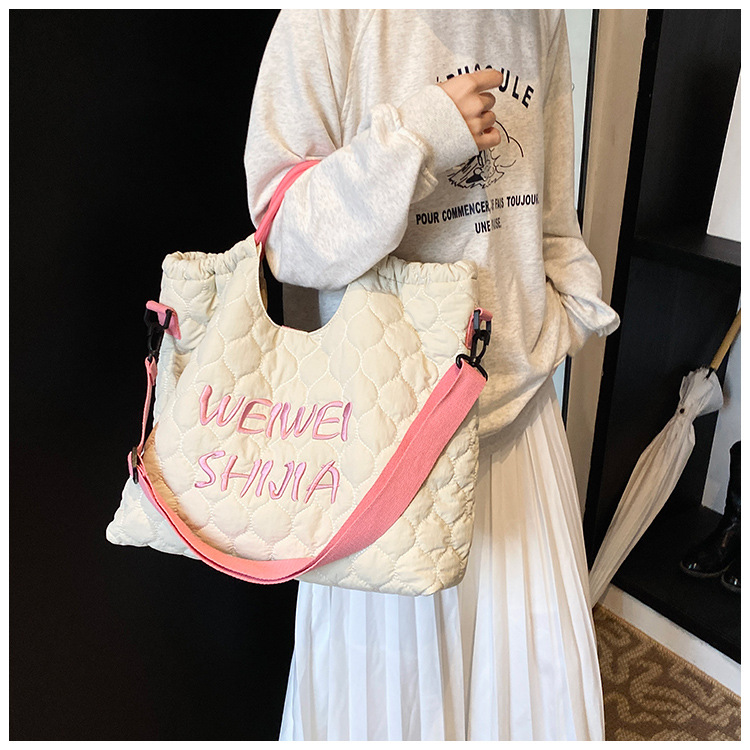 국경 간 대용량 자수 학생 통근 가방 새로운 핸드 토트 백 도파민 경량 어깨 메신저 백스토어 가기