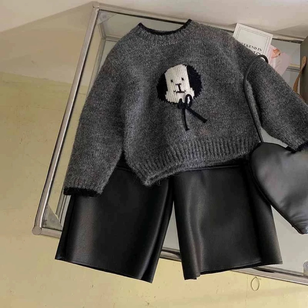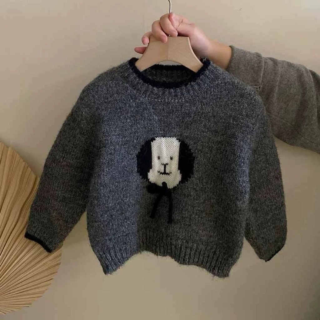 2024 가을과 겨울 새로운 소녀 한국 스타일 귀여운 만화 강아지 둥근 목 스웨터 최고 소녀 스웨터스토어 가기