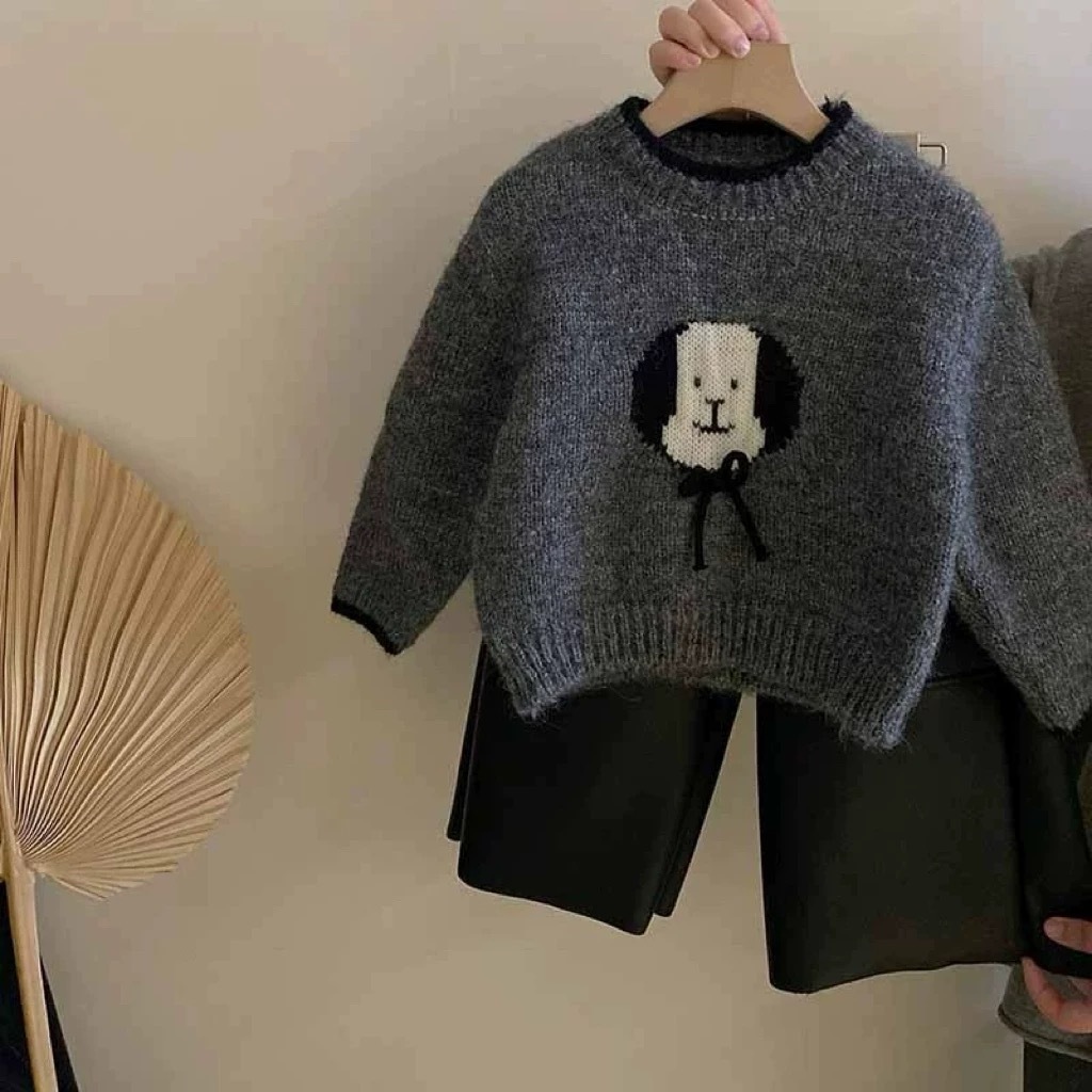 2024 가을과 겨울 새로운 소녀 한국 스타일 귀여운 만화 강아지 둥근 목 스웨터 최고 소녀 스웨터