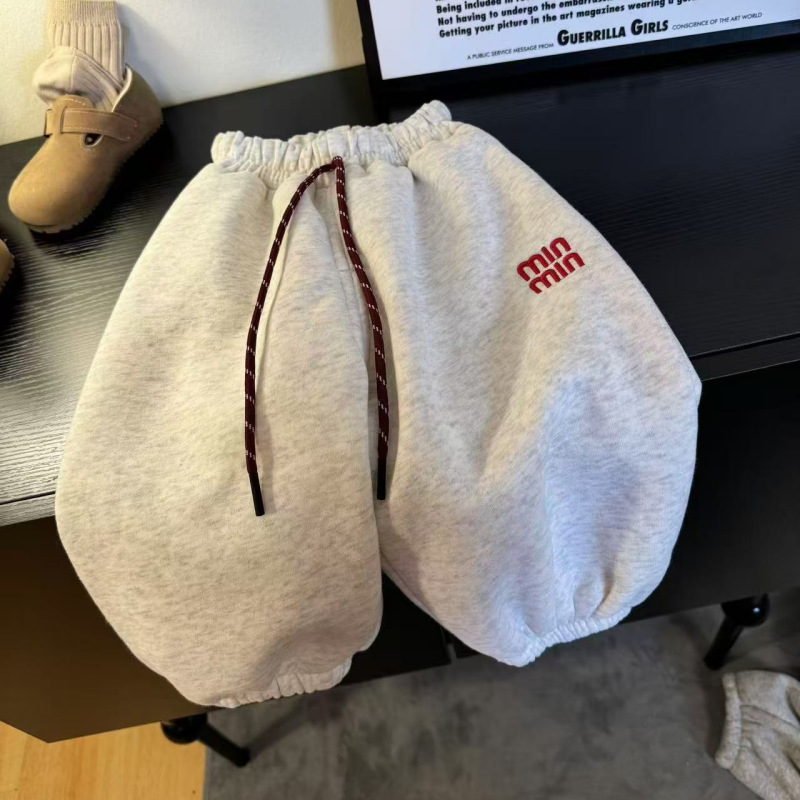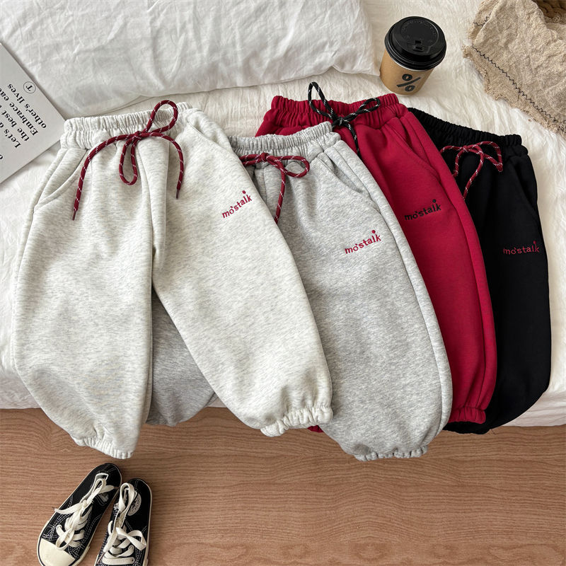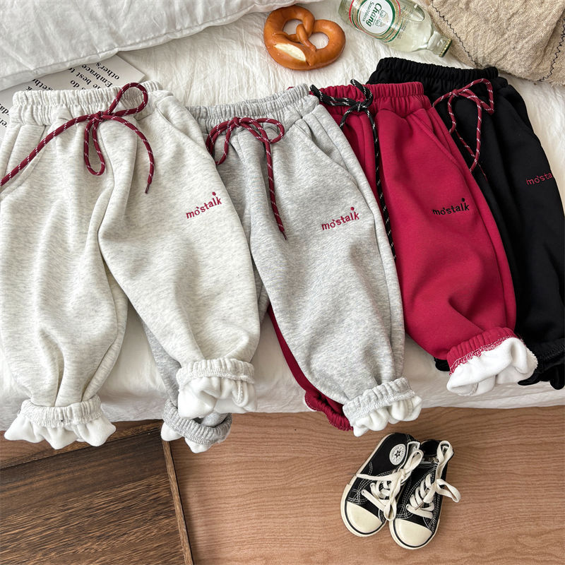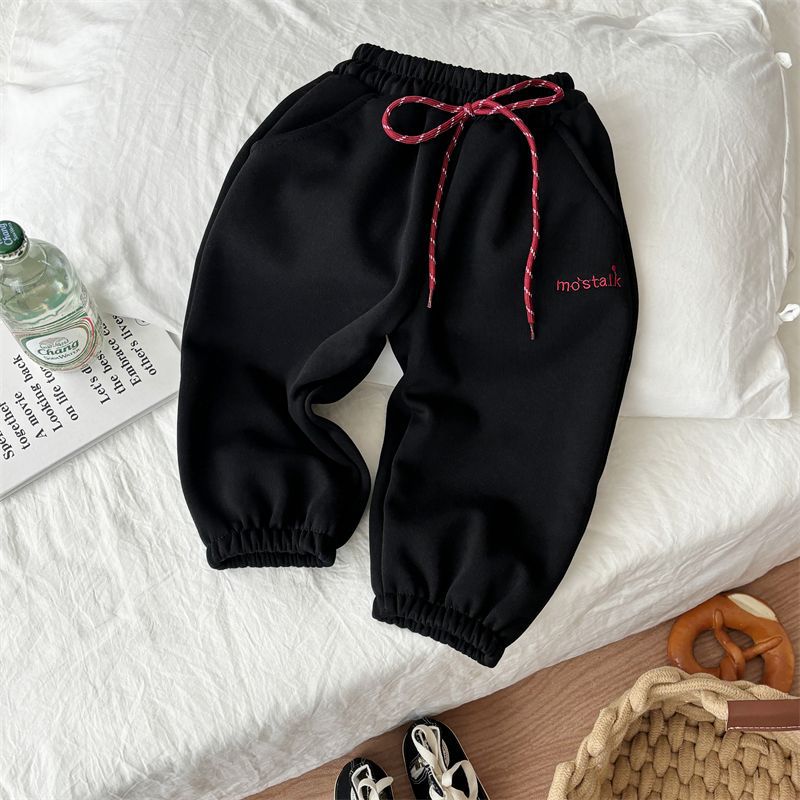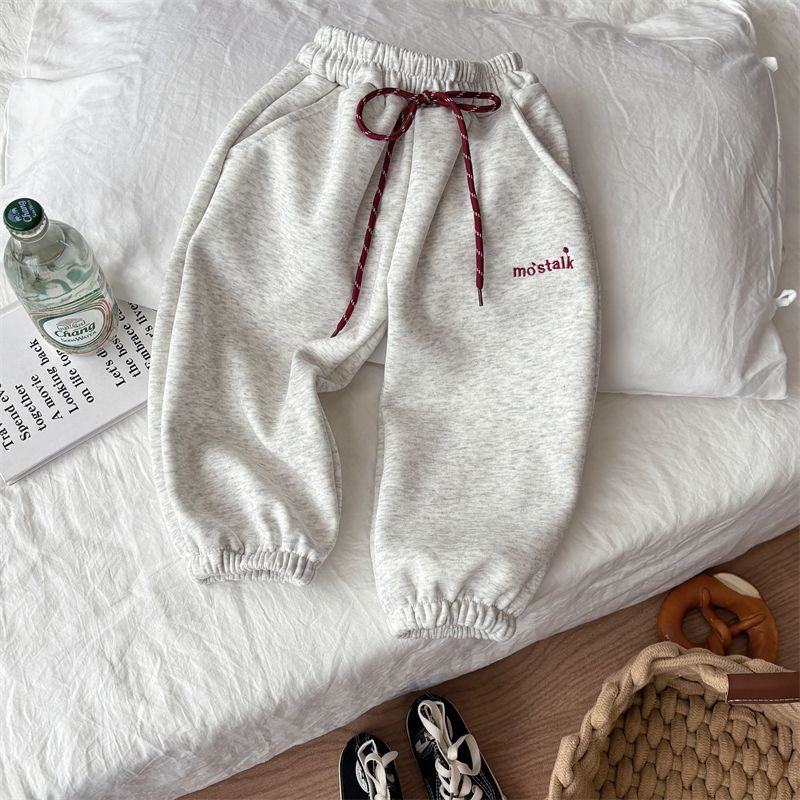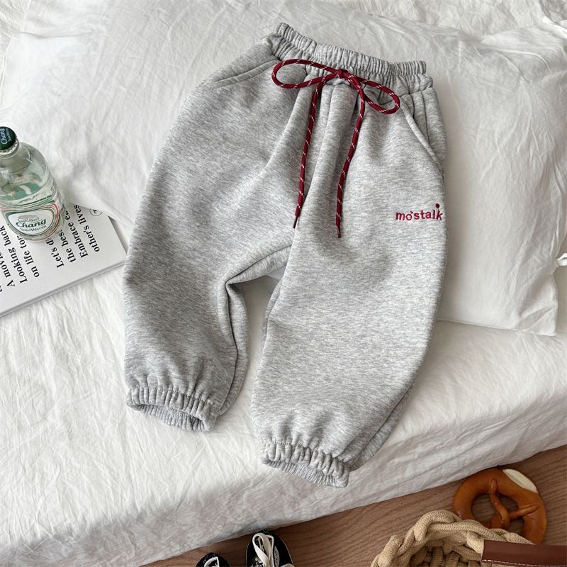 어린이 가을과 겨울 소년과 소녀 아기의 캐주얼 자수 드로우 기모 두꺼운 땀 바지 다리 다리 캐주얼 바지 바지 바지