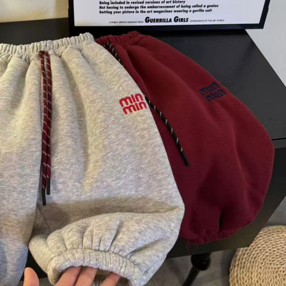 어린이 가을과 겨울 소년과 소녀 아기의 캐주얼 자수 드로우 기모 두꺼운 땀 바지 다리 다리 캐주얼 바지 바지 바지스토어 가기