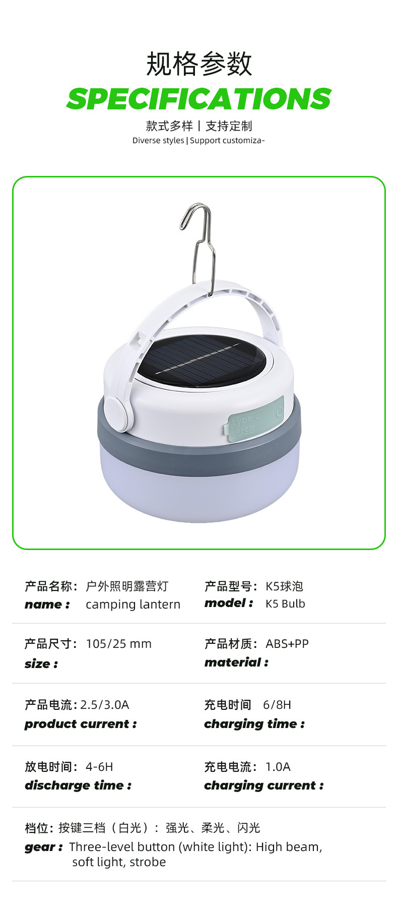 캠핑 램프, 태양광 캠핑 조명, 비상등, 정전 시 야외등, 텐트 충전식 걸이등, 초고휘도 조광 가능