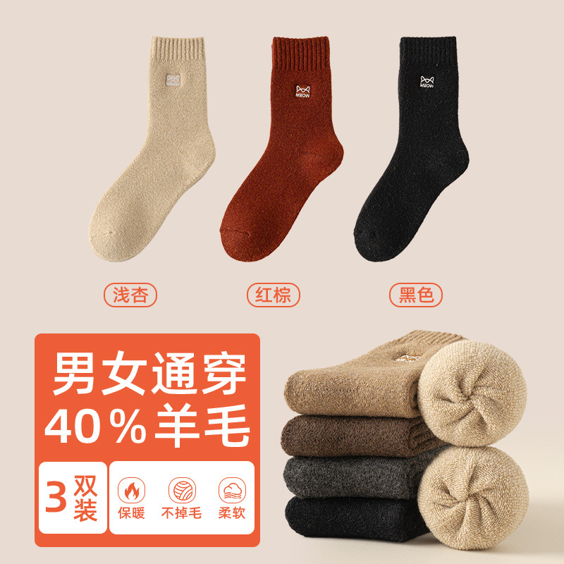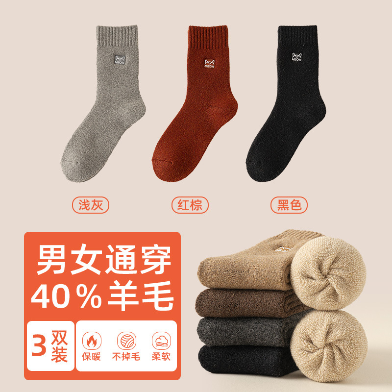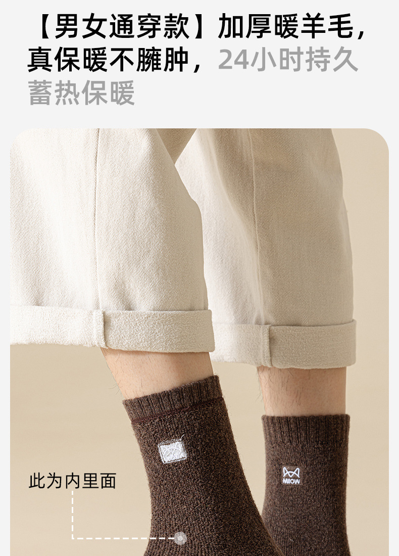 Catman 양모 양말 남성용 가을과 겨울 양말은 두껍게 된 테리 울 봉제 항균 가열 스타킹을 기모 따뜻합니다.스토어 가기
