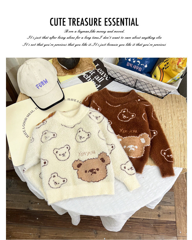 어린이 스웨터 남녀 밍크 벨벳 긴 소매 풀오버 베이스 셔츠 가을 겨울 남자와 여자 포 플러스 두꺼운 어린이 탑