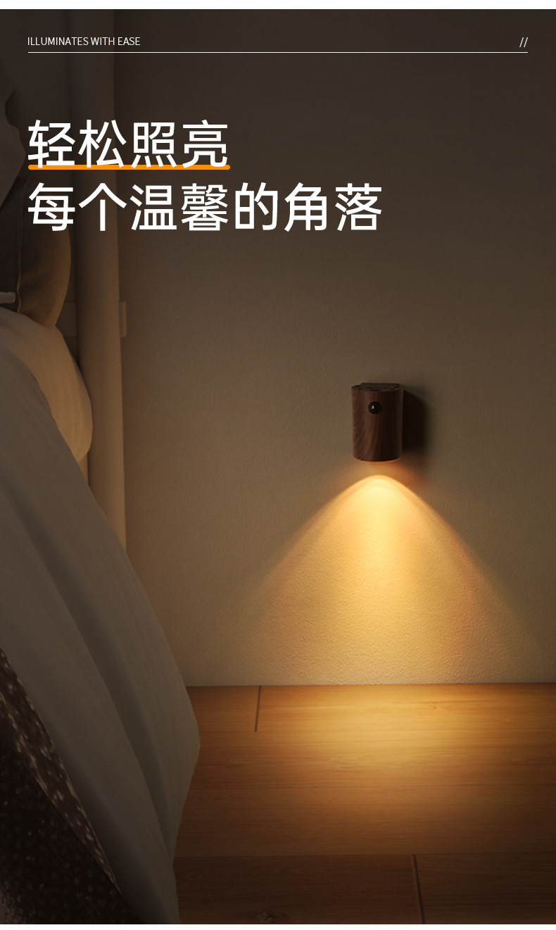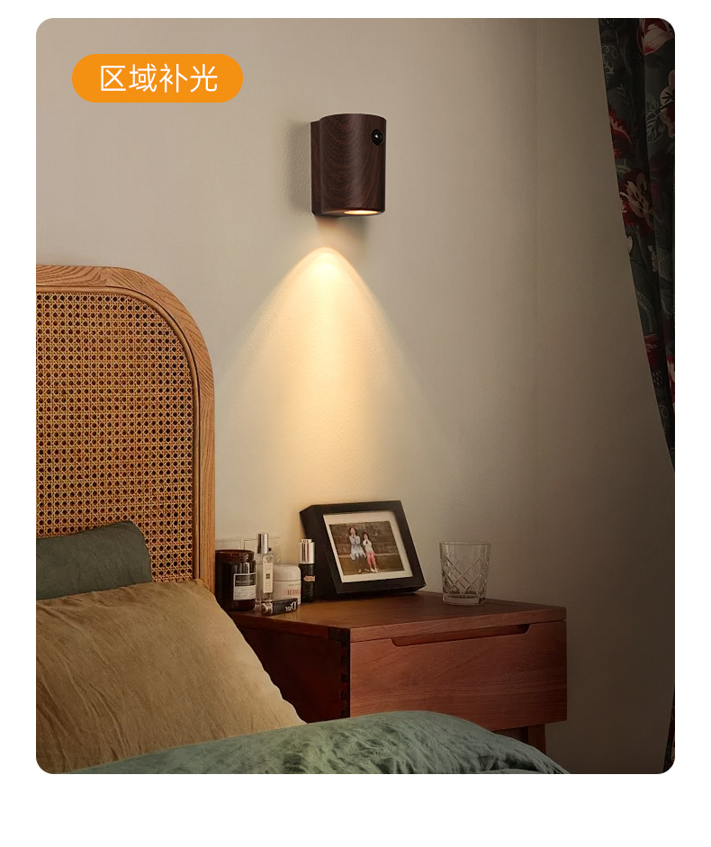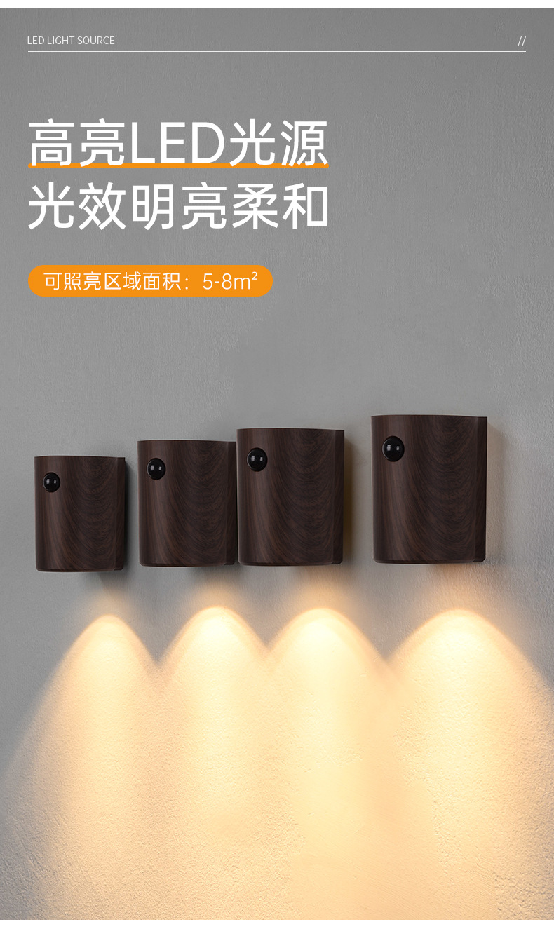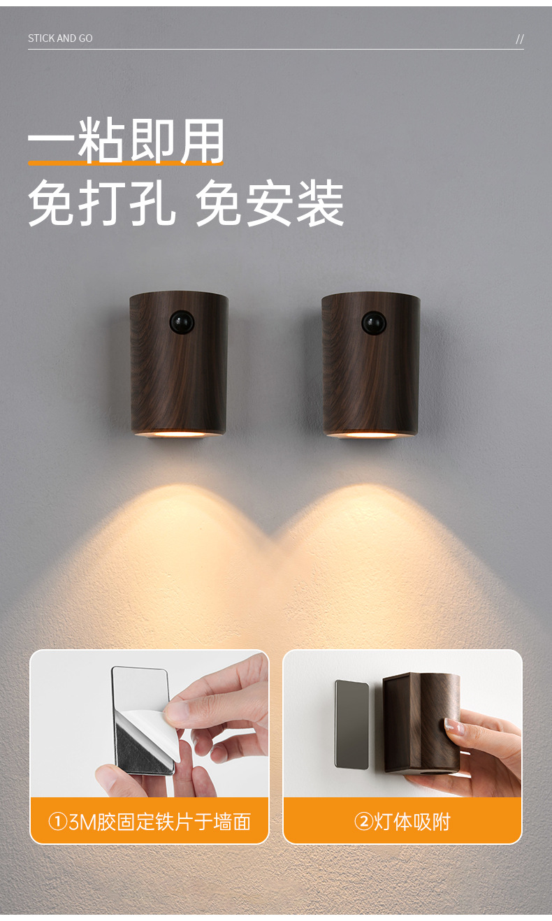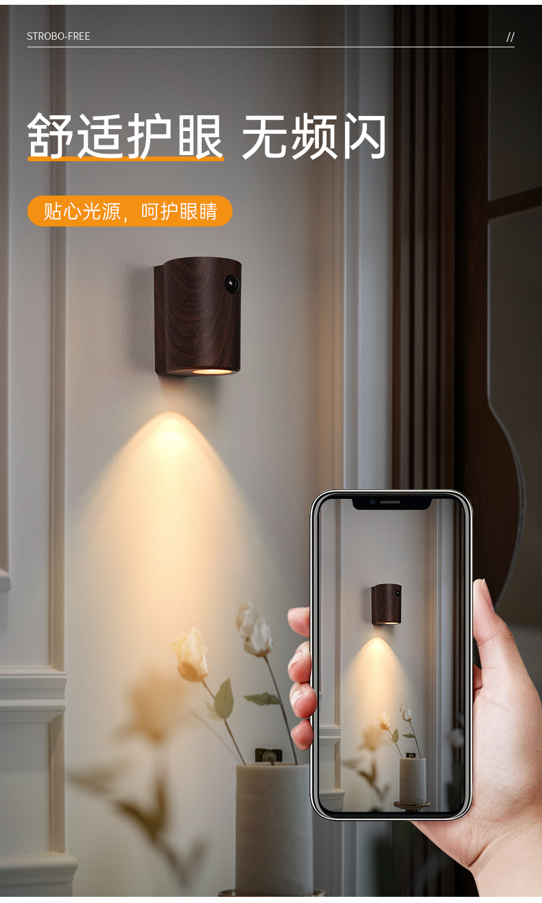 USB 충전 지능형 인체 유도 램프 호두 나무 곡물 대기 램프 마그네틱 벽 램프 입구 도어 스포트라이트 야간 조명