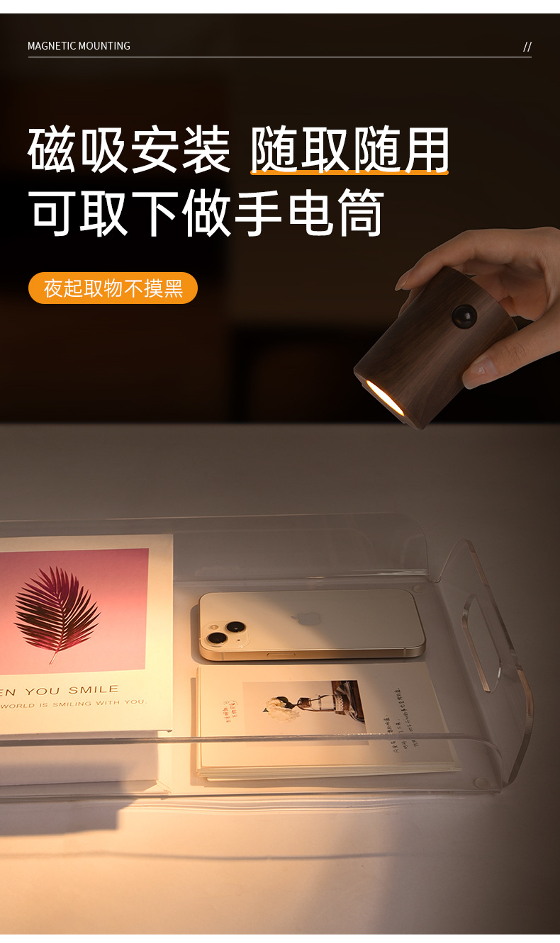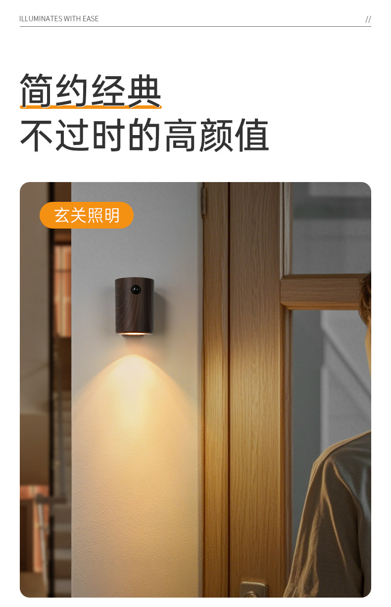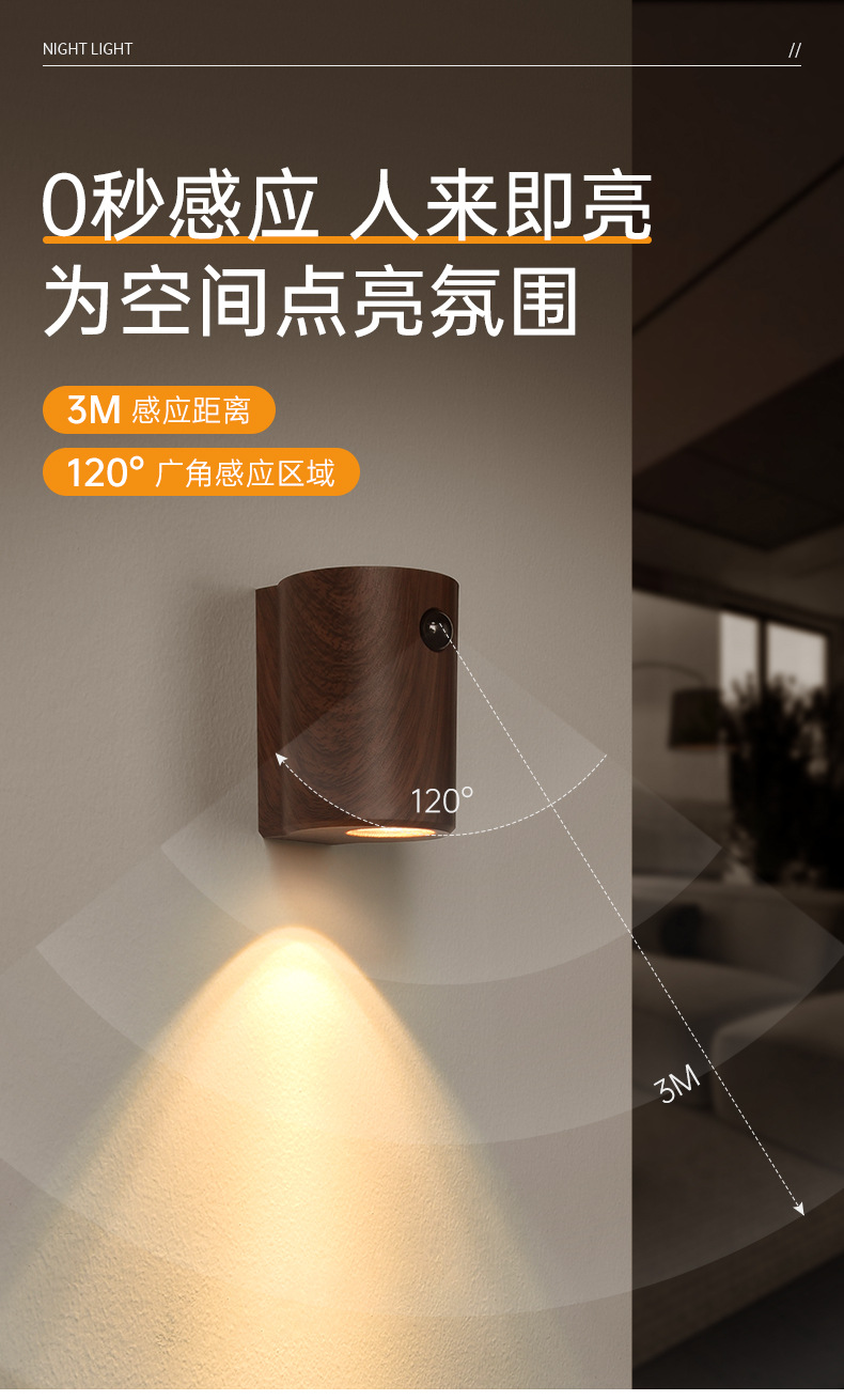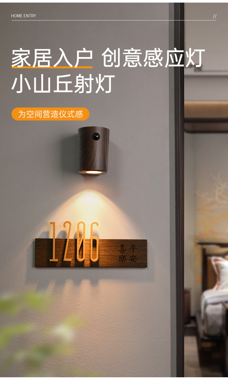 USB 충전 지능형 인체 유도 램프 호두 나무 곡물 대기 램프 마그네틱 벽 램프 입구 도어 스포트라이트 야간 조명