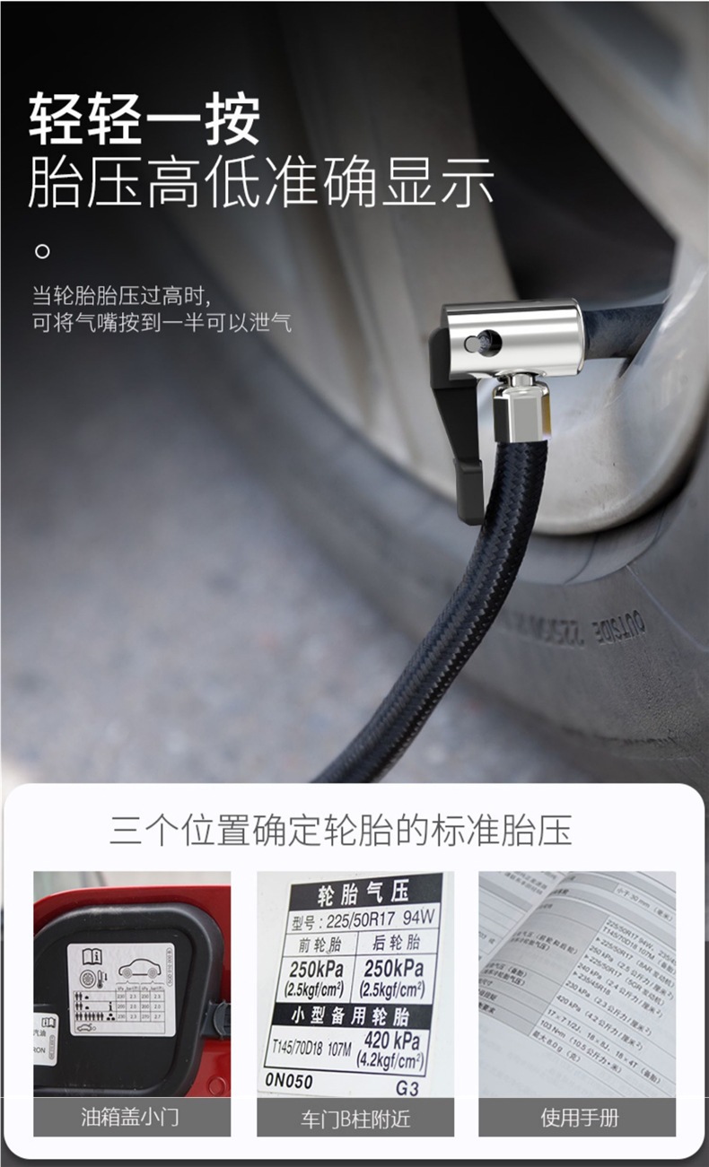 • 100 지능형 디지털 디스플레이 [빠른 공기 보충 + 정확한 압력 측정 + 조명 포함] 공기 공급 노즐