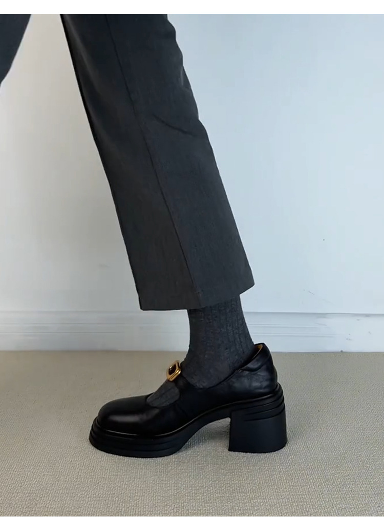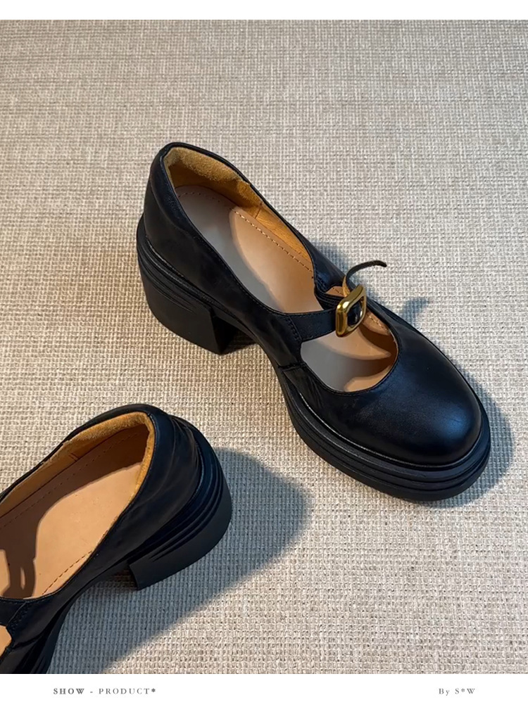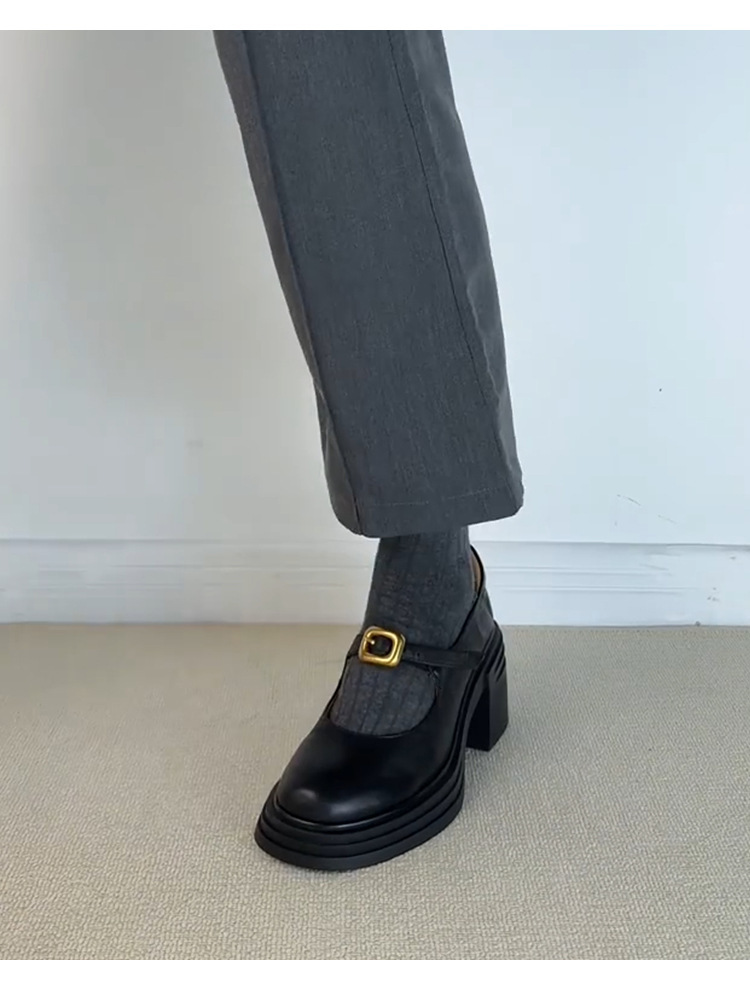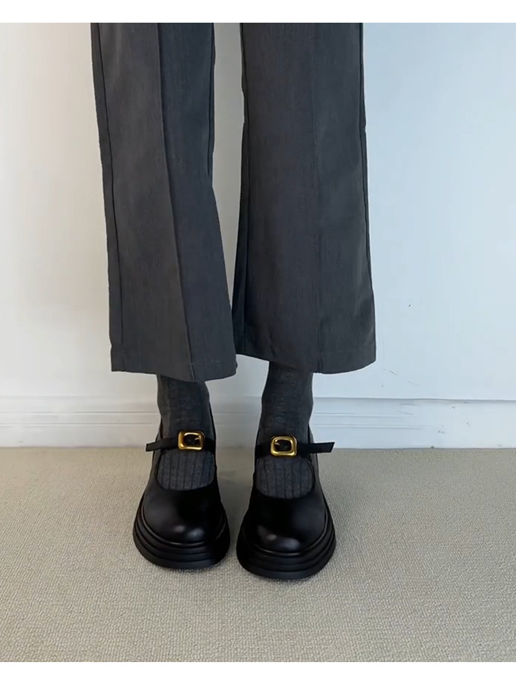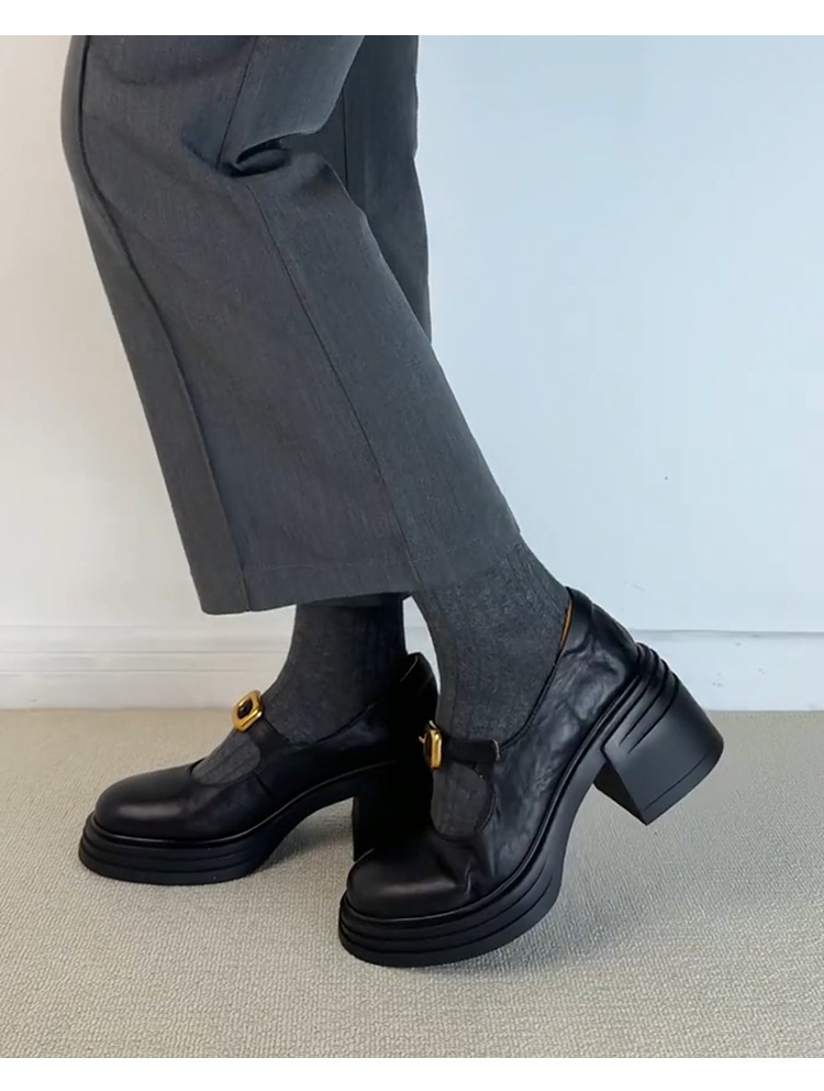 작은 통근 올매치 상승 된 Lefu 단일 레이어 신발 두꺼운 바닥과 둥근 발가락 여성 복고풍 작은 가죽 신발스토어 가기