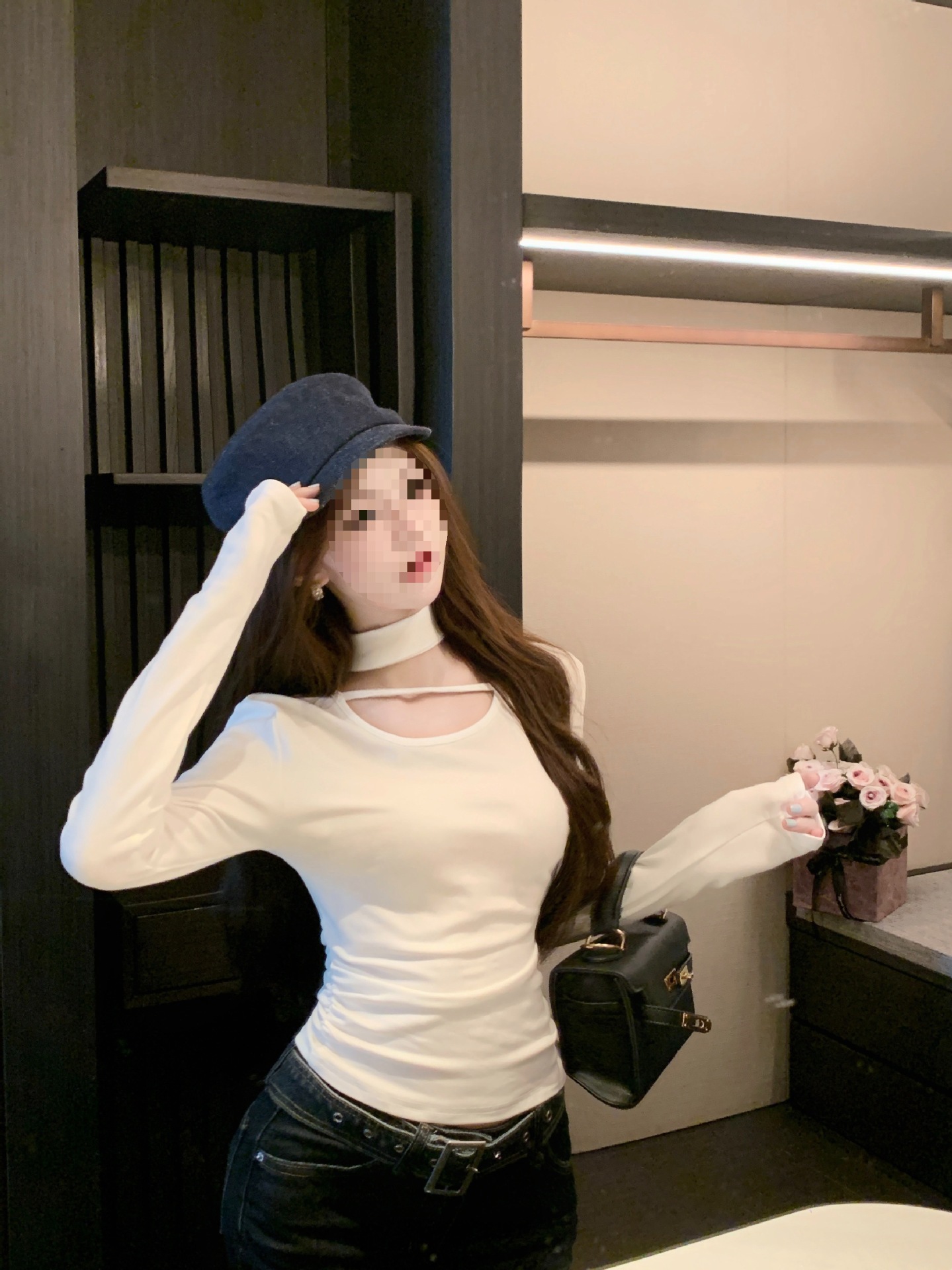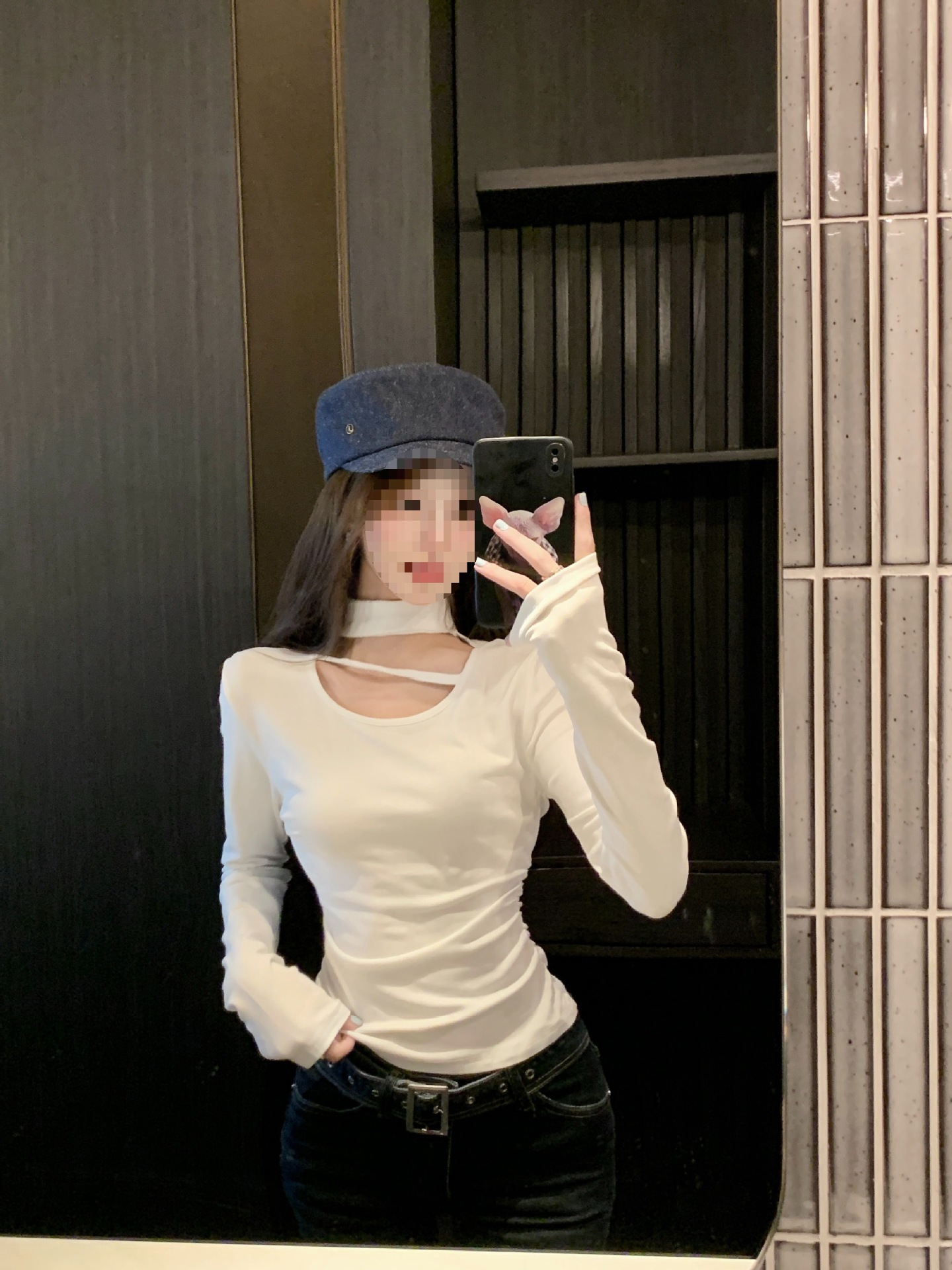 국경 도매 가을과 겨울 스레드 벨벳 내부 따뜻한 순수한 욕망 뜨거운 소녀 목에 긴 소매 티셔츠 여성용 기본 셔츠