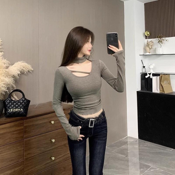 국경 도매 가을과 겨울 스레드 벨벳 내부 따뜻한 순수한 욕망 뜨거운 소녀 목에 긴 소매 티셔츠 여성용 기본 셔츠스토어 가기