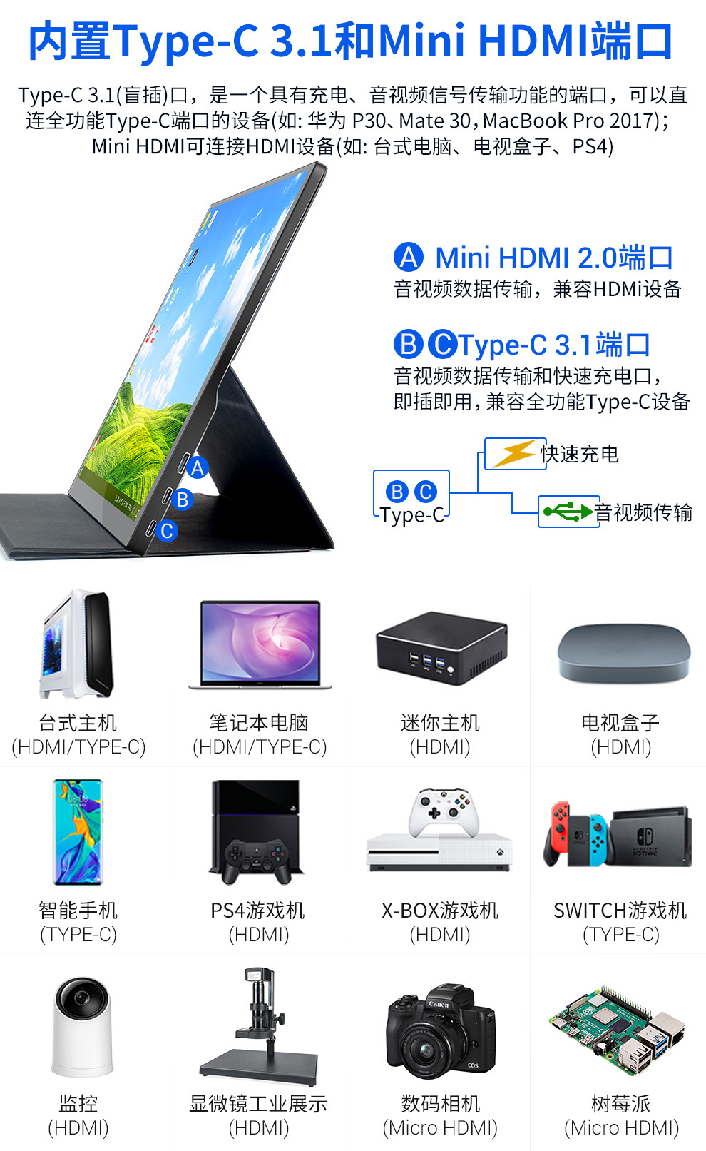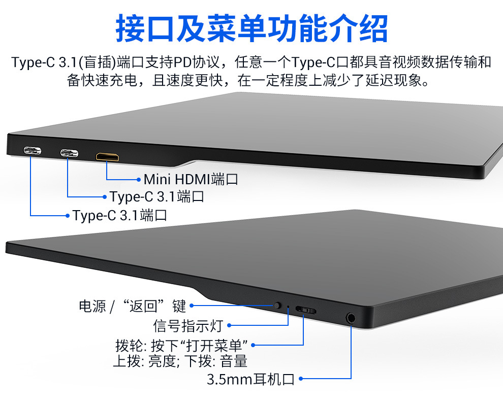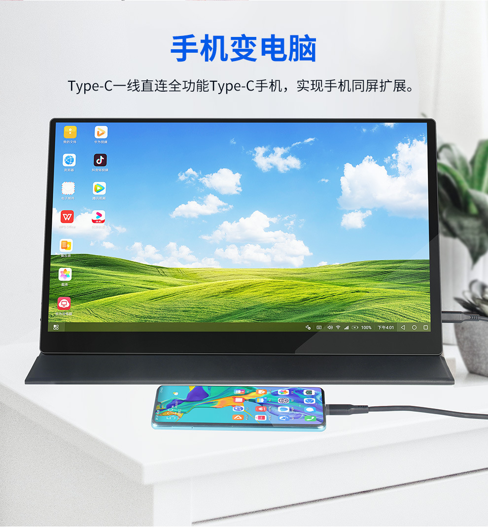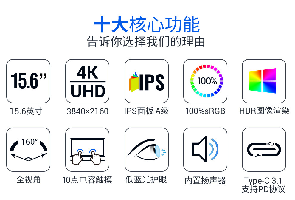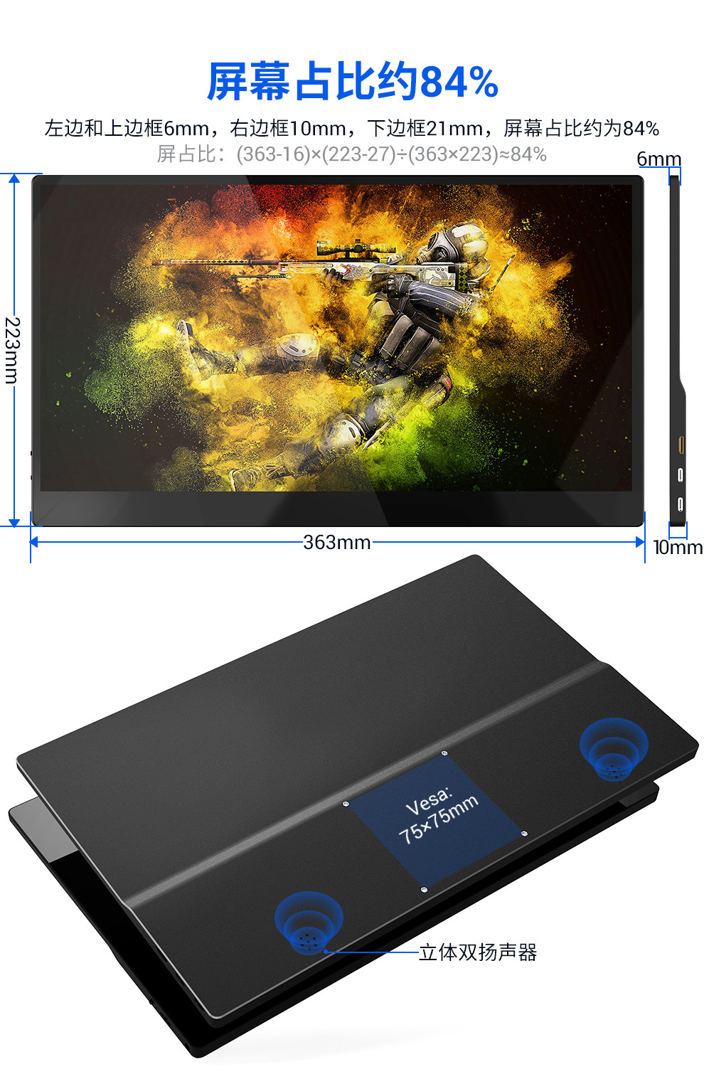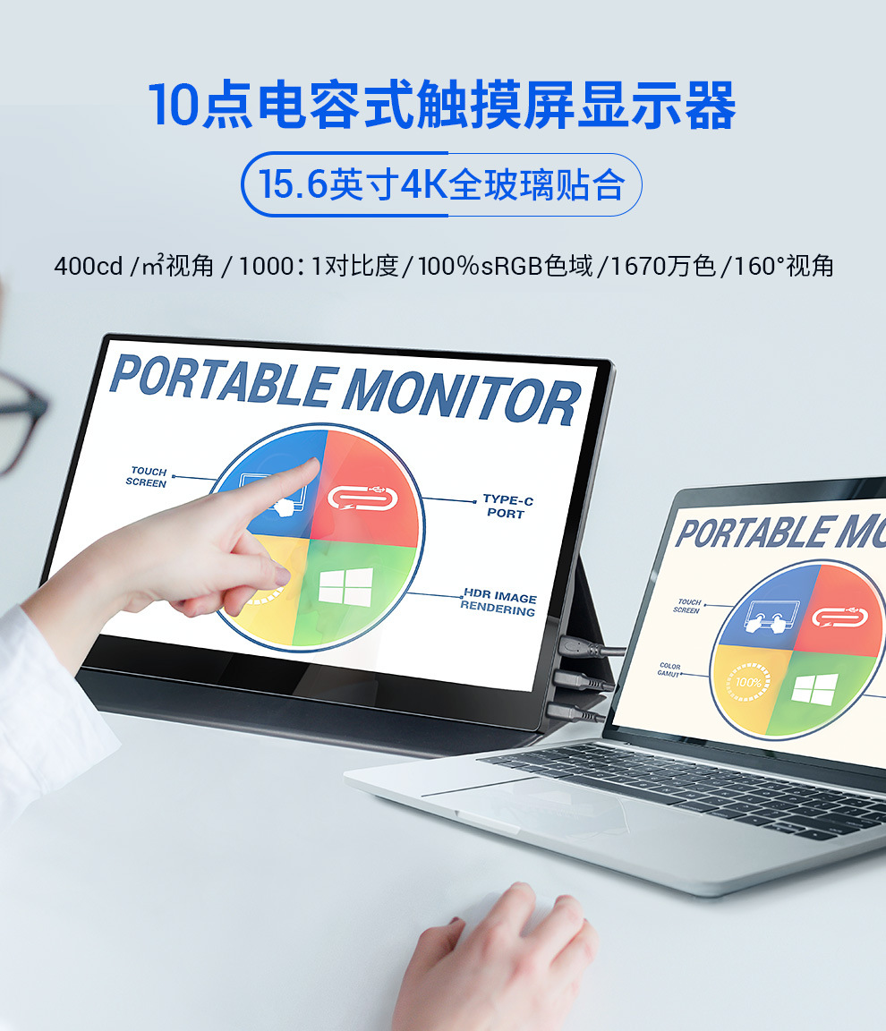 15.6인치 4K 휴대용 터치 디스플레이 고화질 노트북 확장 화면 게임 외부 화면 IPS 대형 화면