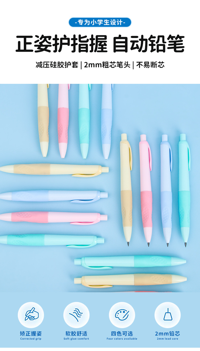 창조적 인 긍정적 인 자세 자동 연필 2.0mm 초등학생 높은 컬러 값 프레스 연필 샤퍼 프리 연속 코어 연필 도매