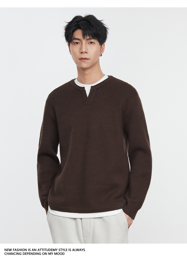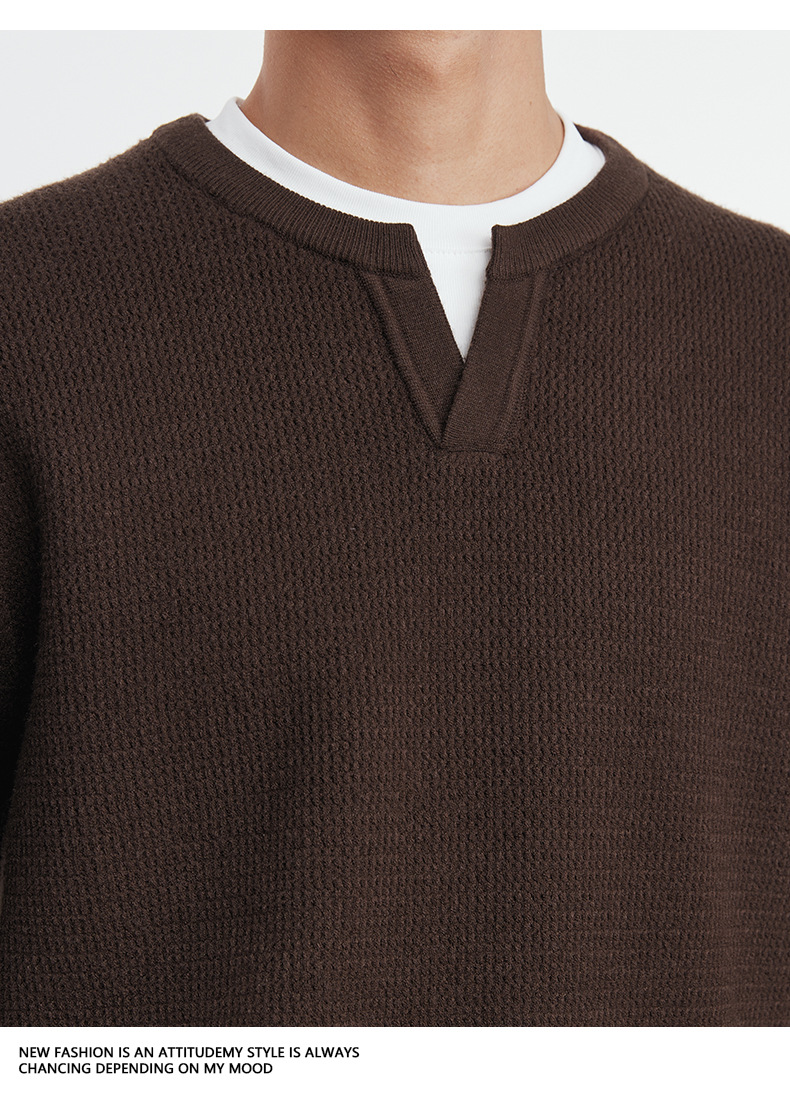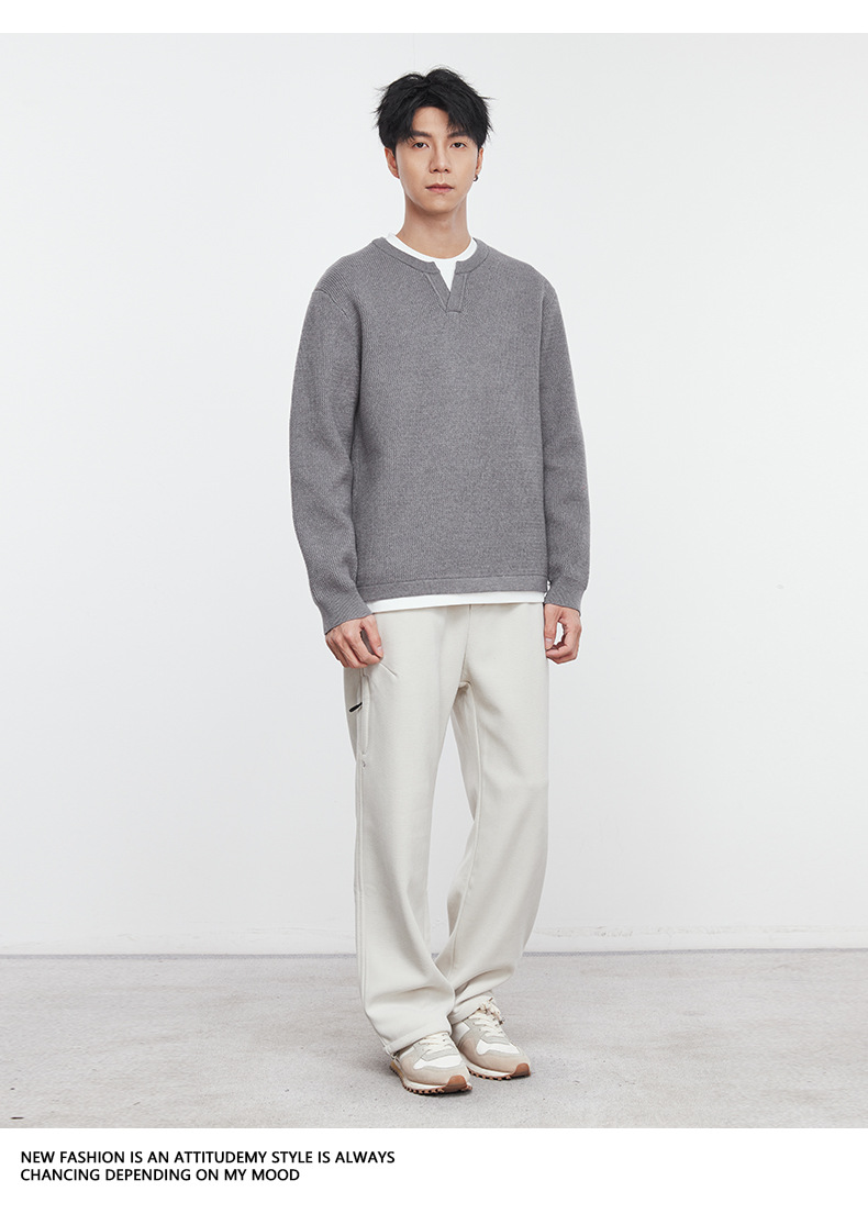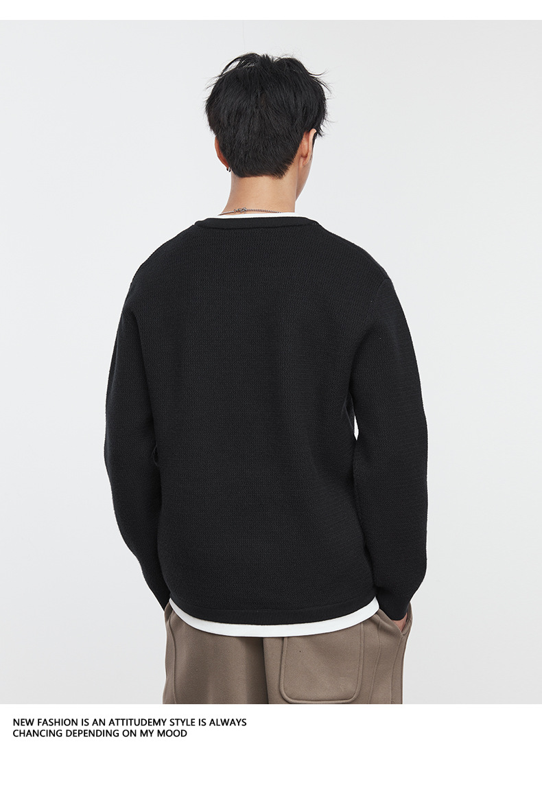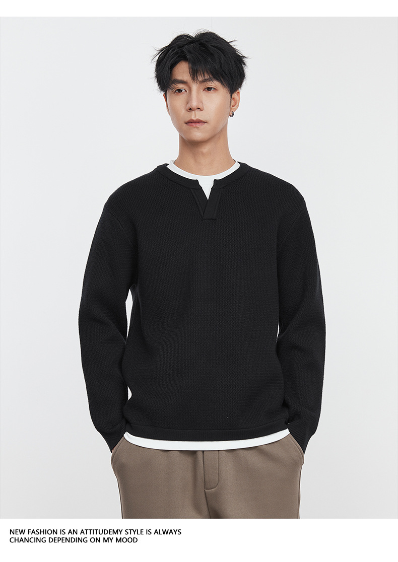 또한 자체 가열 가짜 투피스 니트 스웨터 남성 가을과 겨울 2024 새로운 느슨한 긴 소매 바닥 셔츠 최고 조수스토어 가기