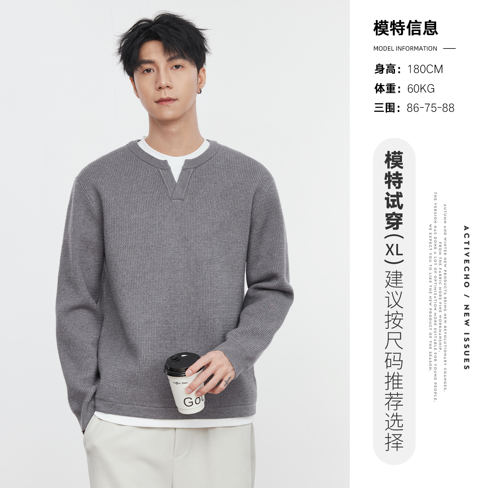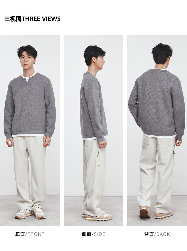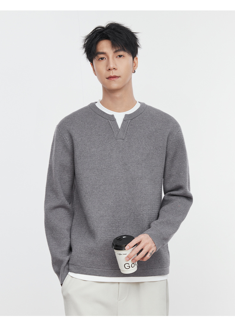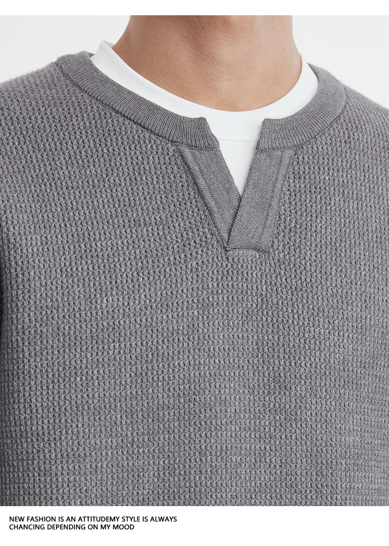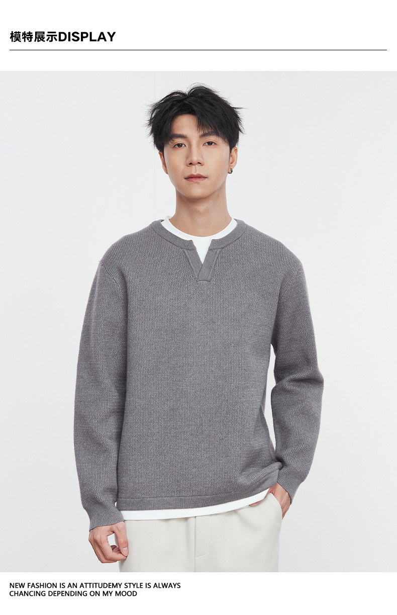 또한 자체 가열 가짜 투피스 니트 스웨터 남성 가을과 겨울 2024 새로운 느슨한 긴 소매 바닥 셔츠 최고 조수스토어 가기