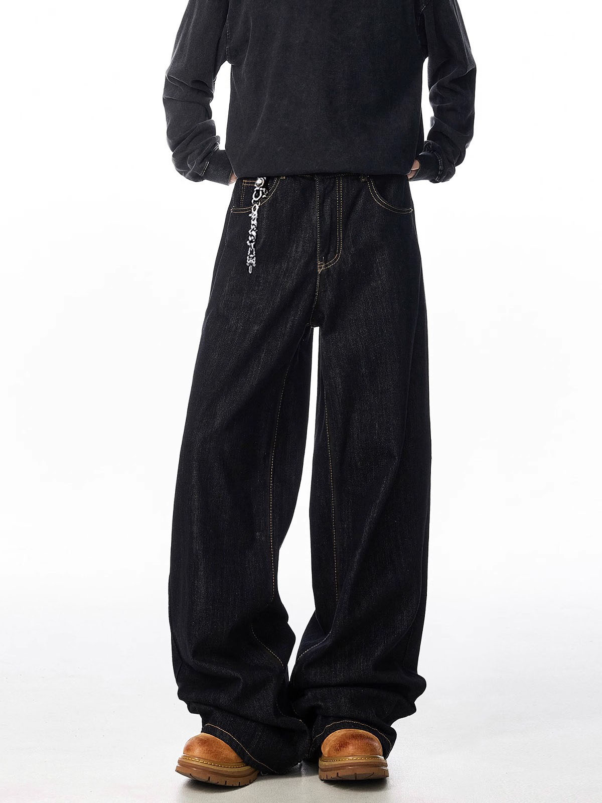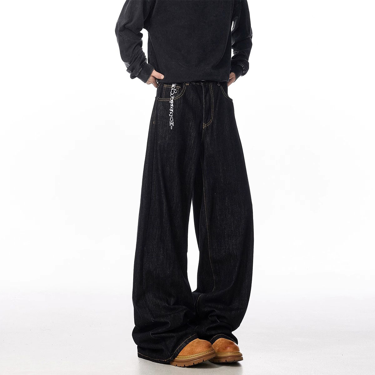 아메리칸 스타일 레트로 타닌 마이크로 라르 청바지 남성 가을과 겨울 클렌핏 루즈 캐주얼 시미터 와이드 레그 롱 바지