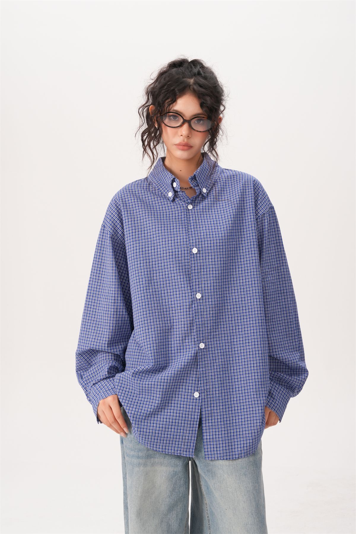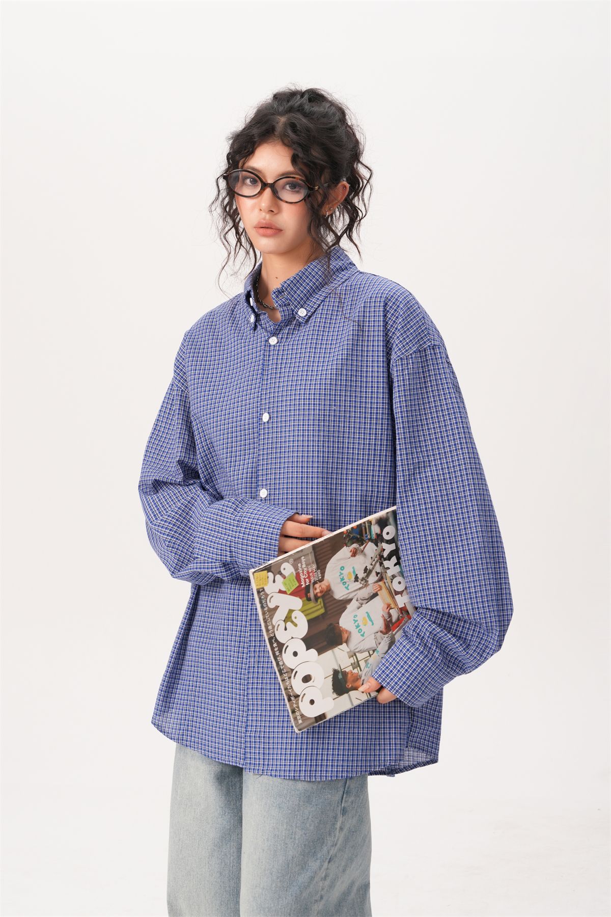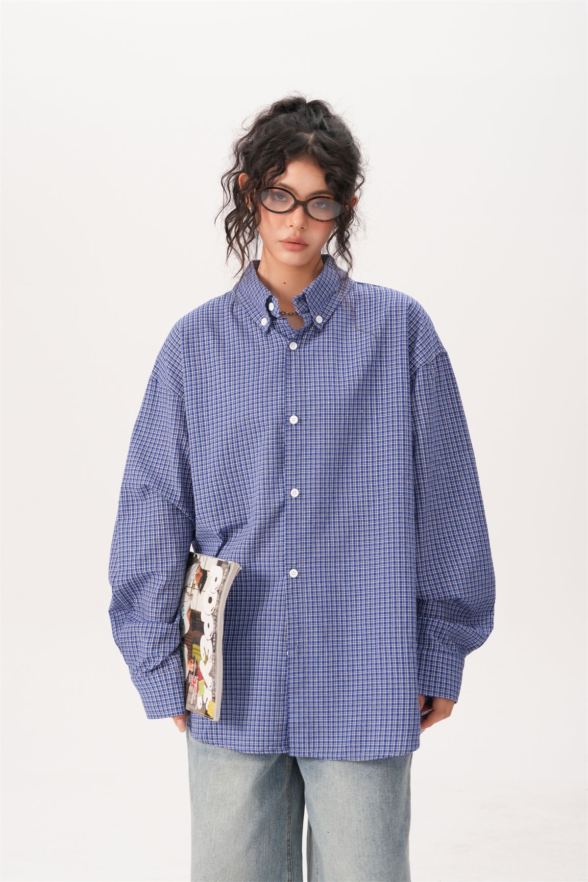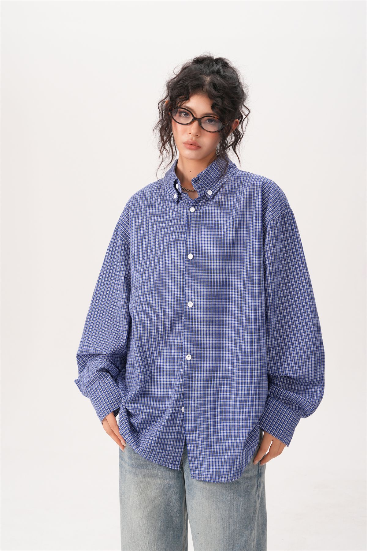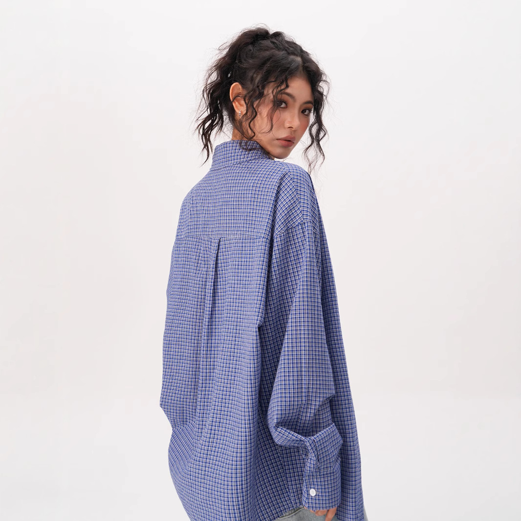 미국 복고풍 게으른 푸른 격자 무늬 셔츠 여성과 남성을위한 봄과 가을 새로운 패션 브랜드 캐주얼 긴팔 셔츠스토어 가기