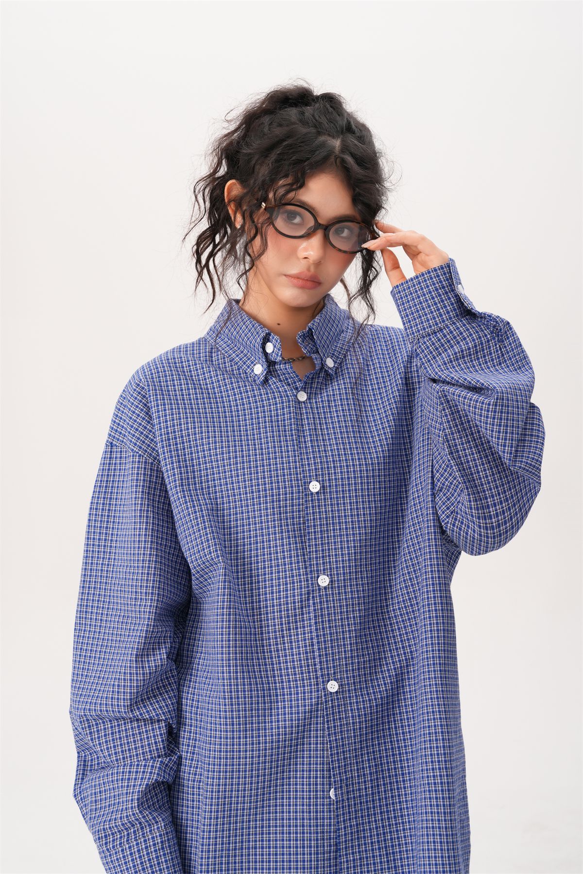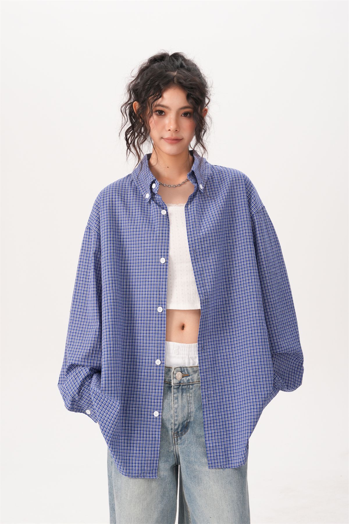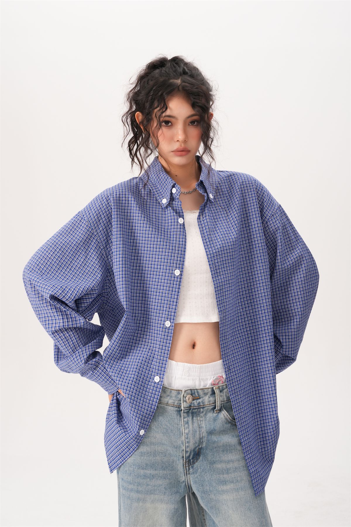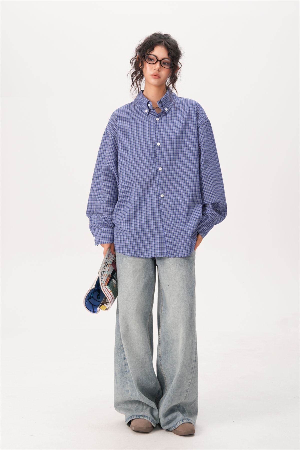 미국 복고풍 게으른 푸른 격자 무늬 셔츠 여성과 남성을위한 봄과 가을 새로운 패션 브랜드 캐주얼 긴팔 셔츠스토어 가기