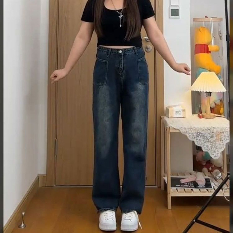 빈티지 청바지 여성용 루즈 와이드 레그 올 매치 통통녀 두꺼운 다리 슬림 핏 인스 타 그램 스타일 트렌디 팬츠