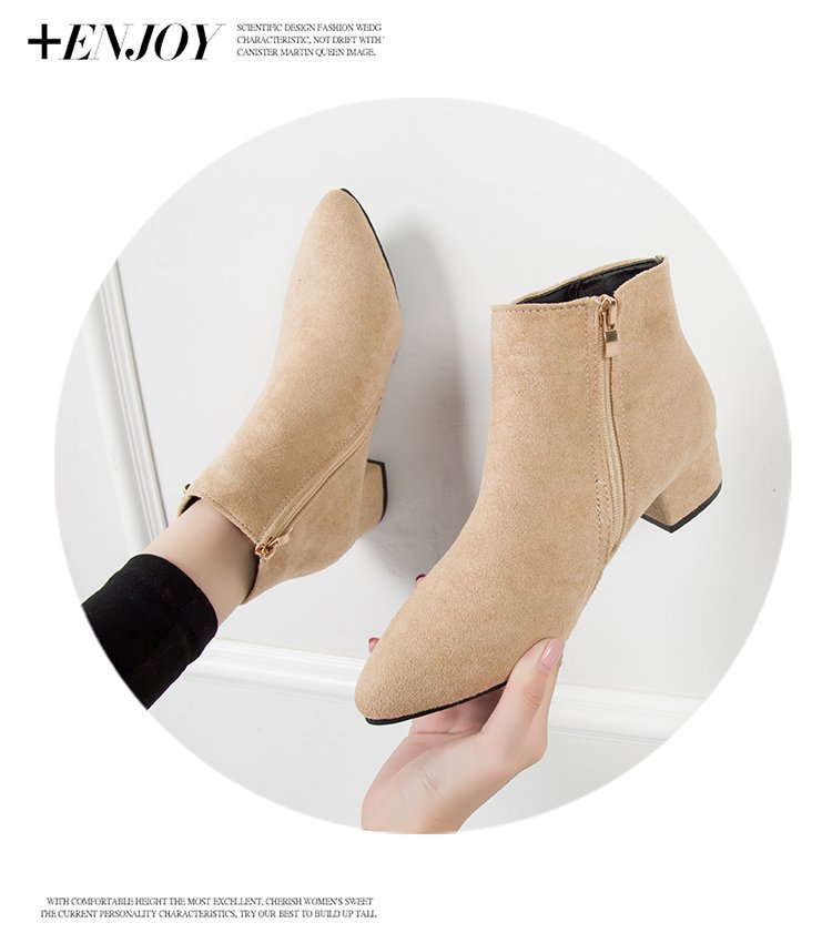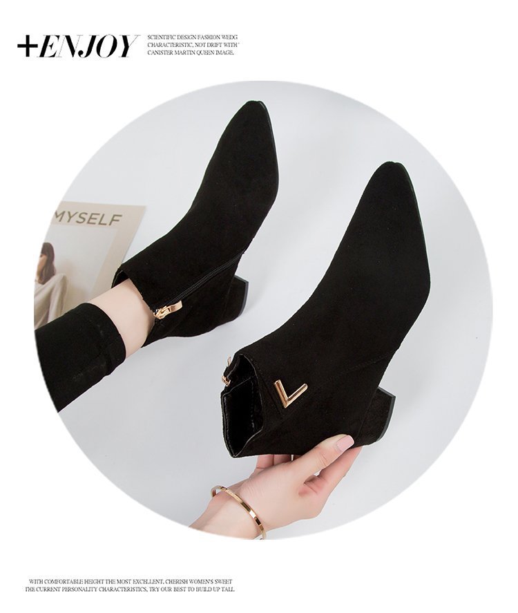 첼시 부츠 여성 슬립 방지 2020 새로운 스타일 마틴 부츠 짧은 부츠 포인팅 두꺼운 힐 힐 높이 증가 오토바이 부츠 Instagram 스타일 좋은스토어 가기