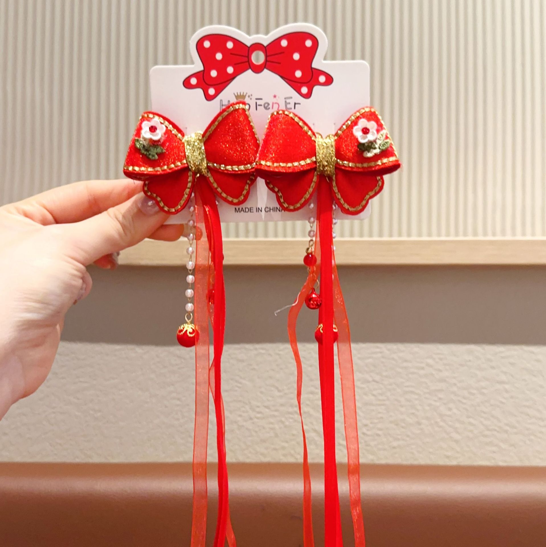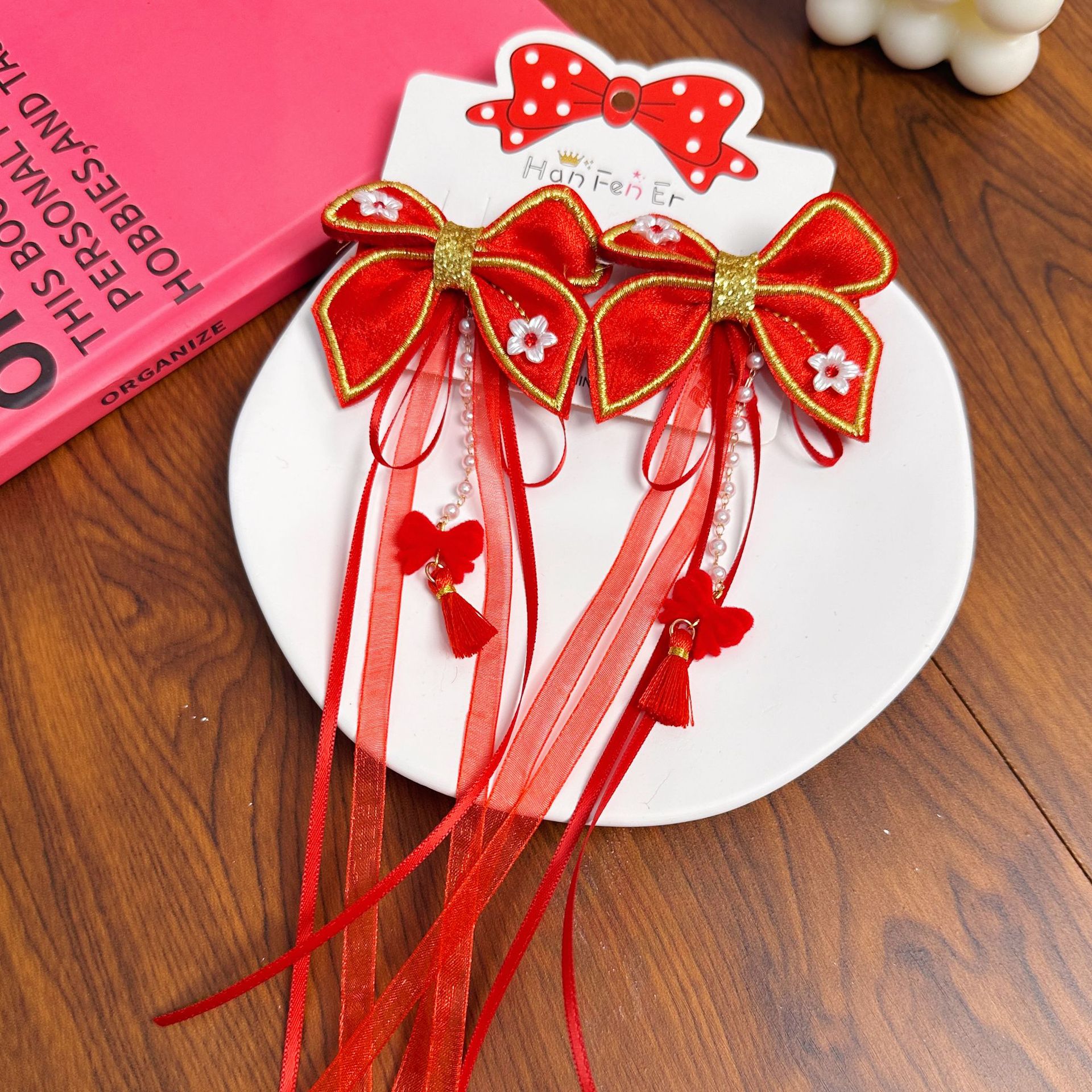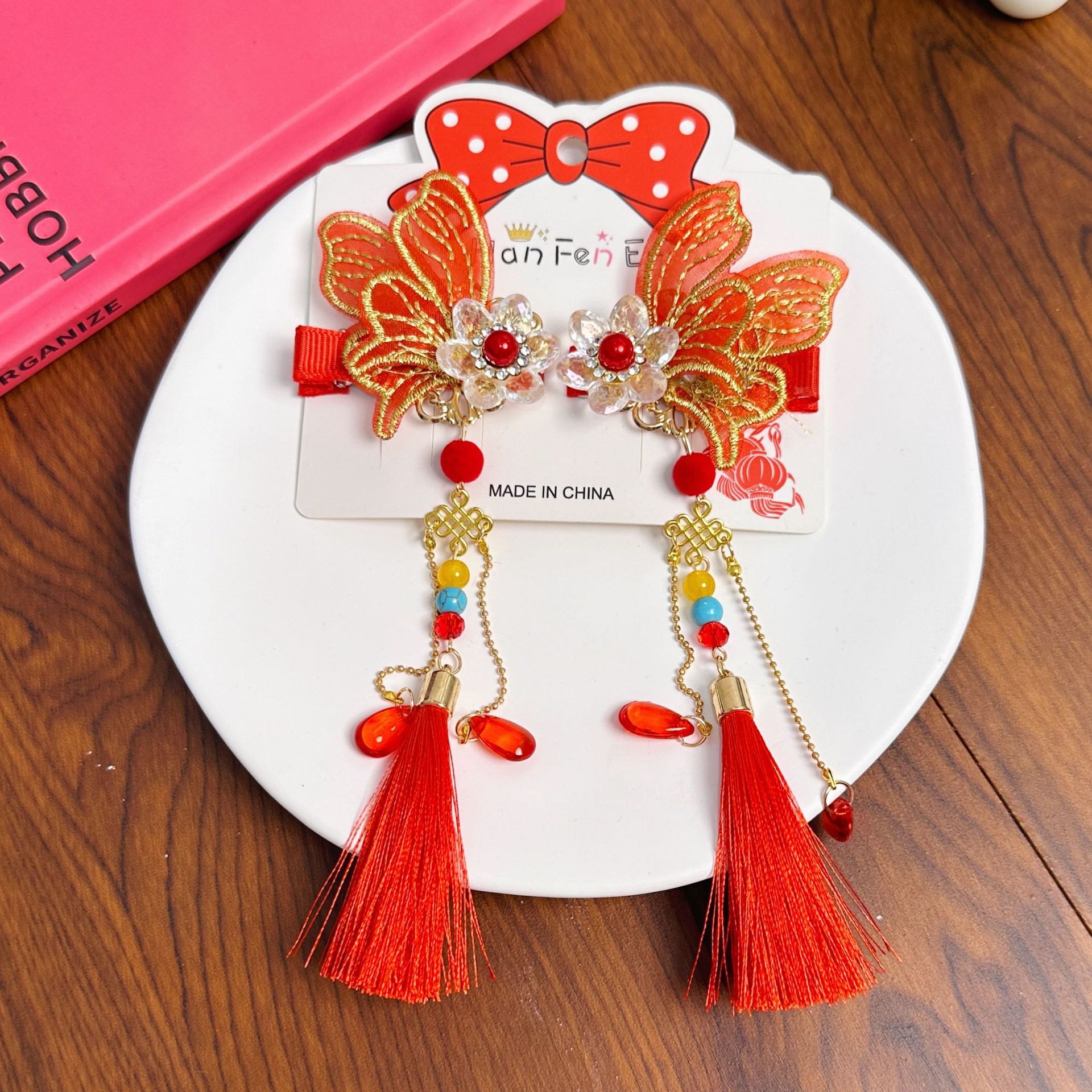새해 어린이 머리핀 깃털 빨간 술 스트리밍 헤어 액세서리 축제 나비 머리핀 소녀 아기 헤드웨어