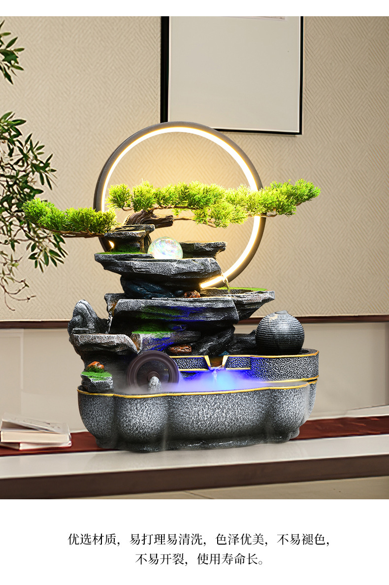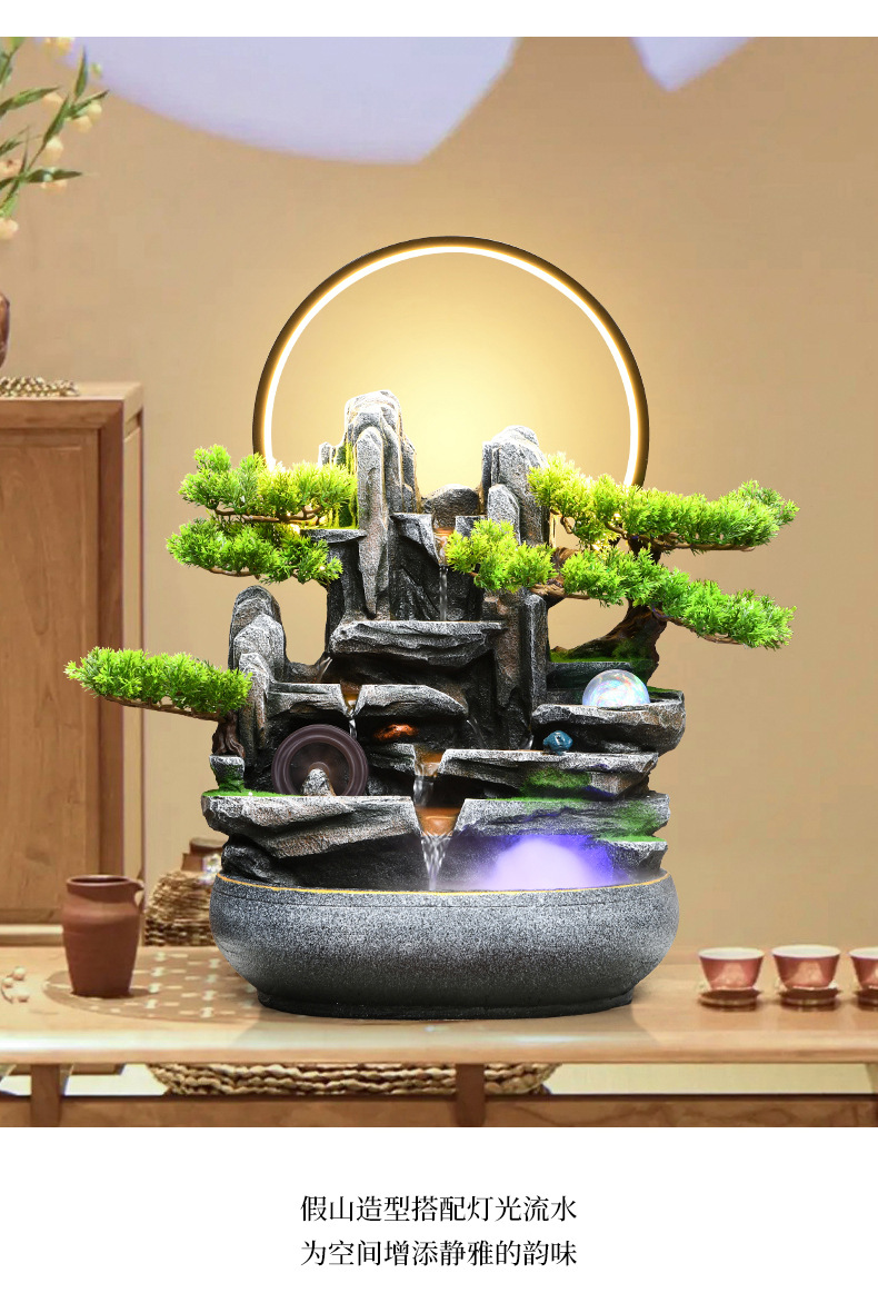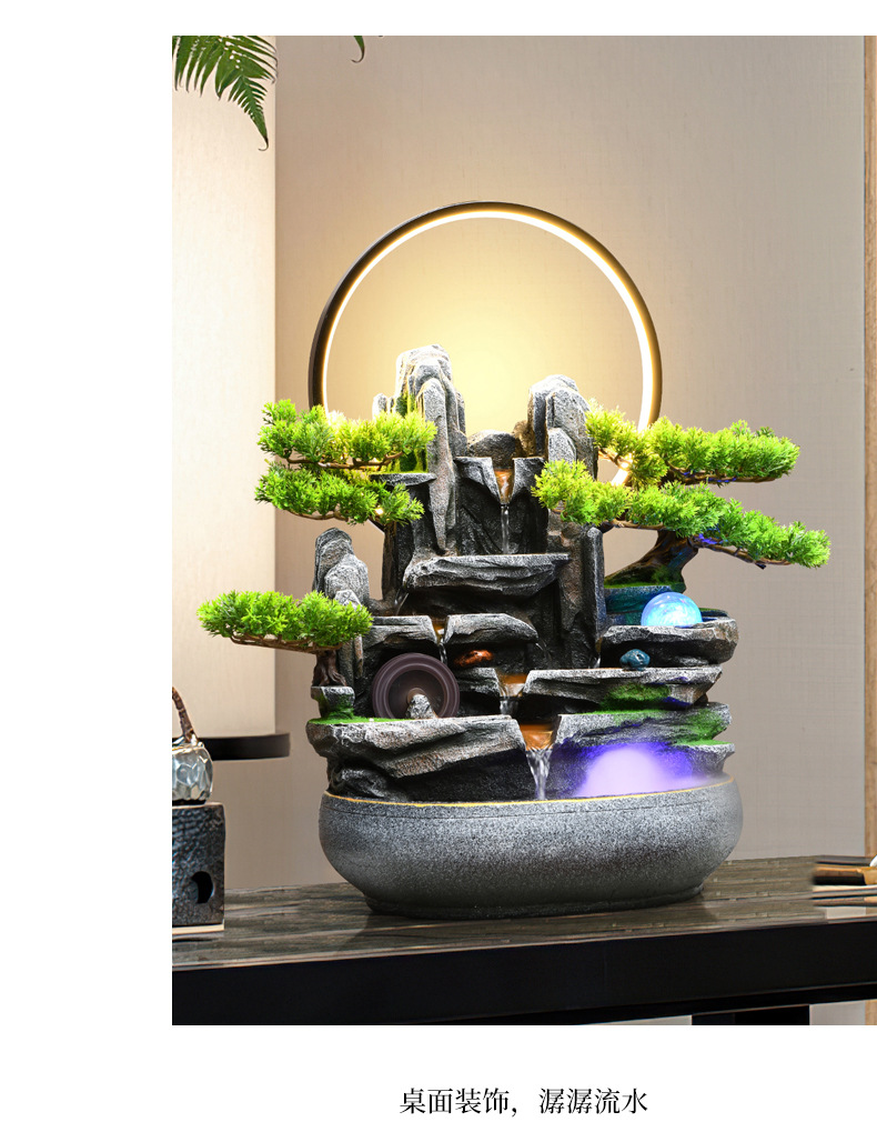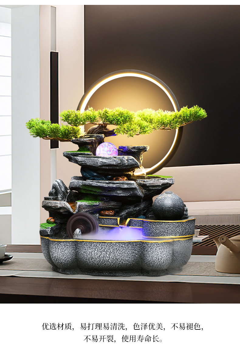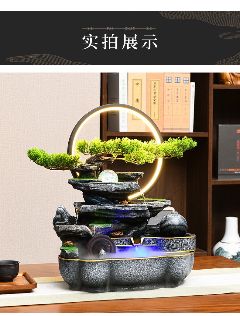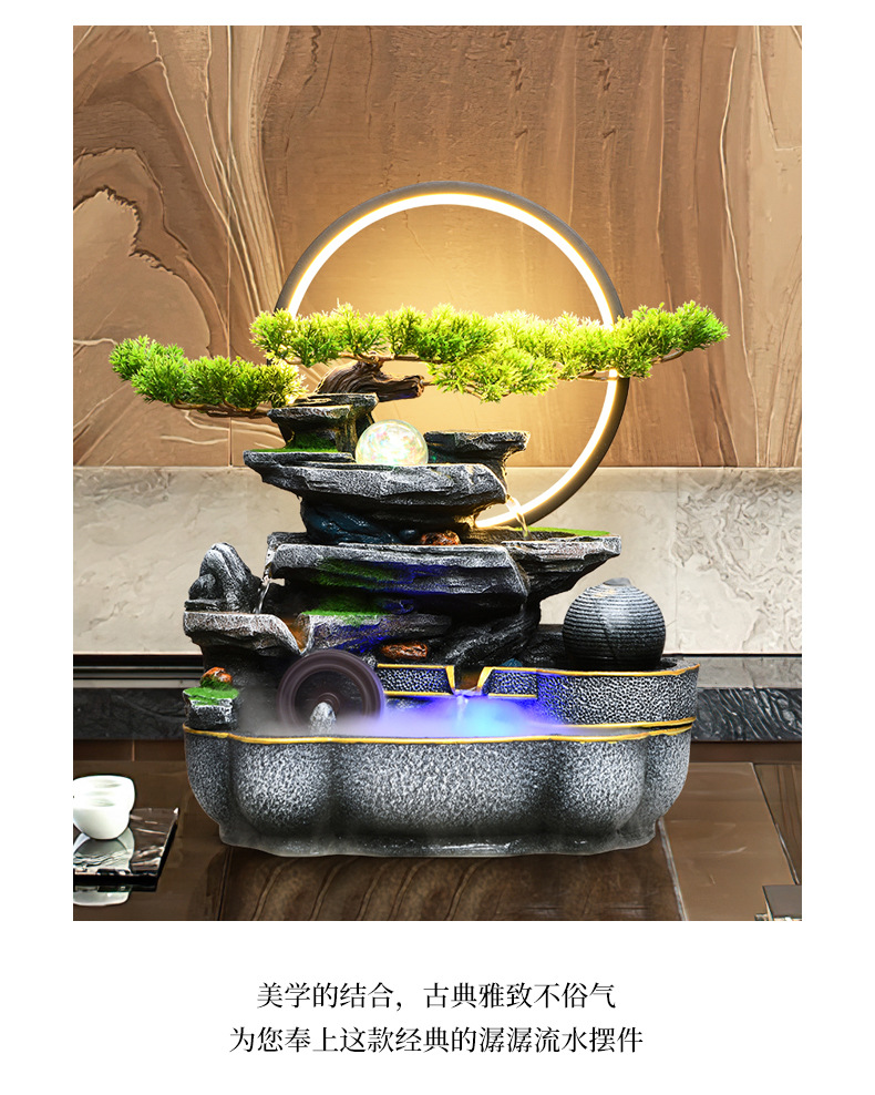 새로운 중국 스타일의 간단한 바위 물 분수 실내 데스크탑 바닥 분재 장식 가습기 풍수 공 작은 장식품스토어 가기