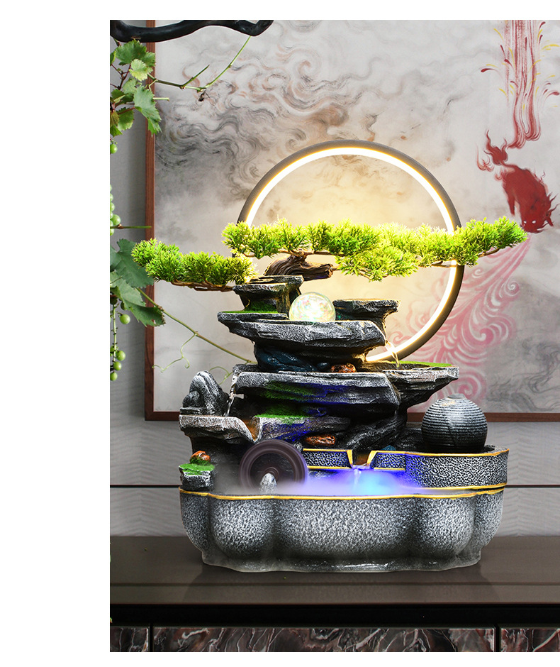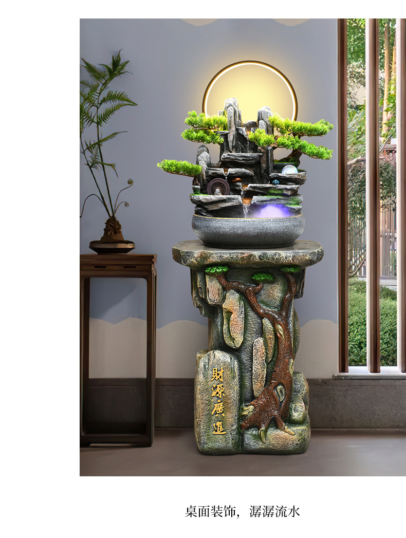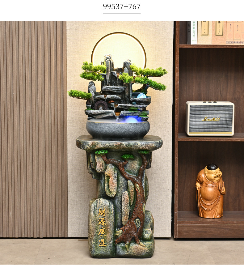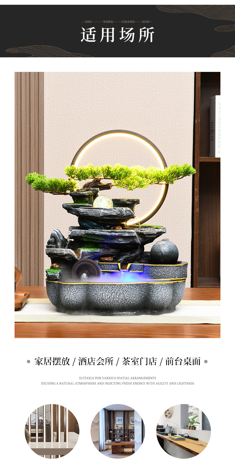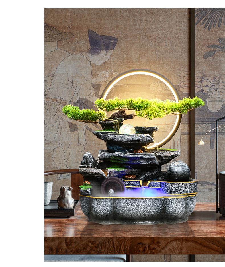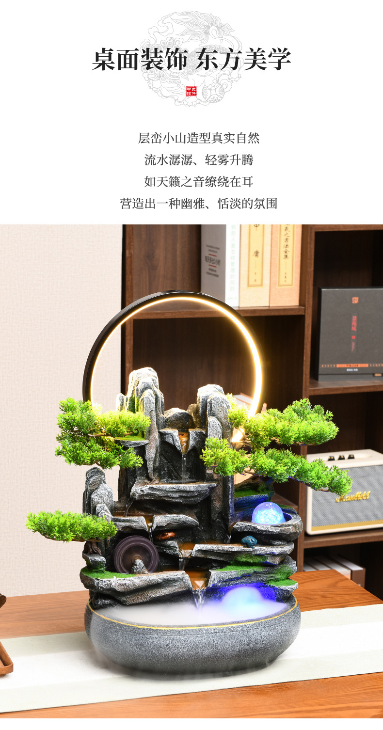 새로운 중국 스타일의 간단한 바위 물 분수 실내 데스크탑 바닥 분재 장식 가습기 풍수 공 작은 장식품스토어 가기