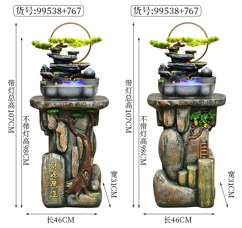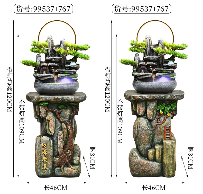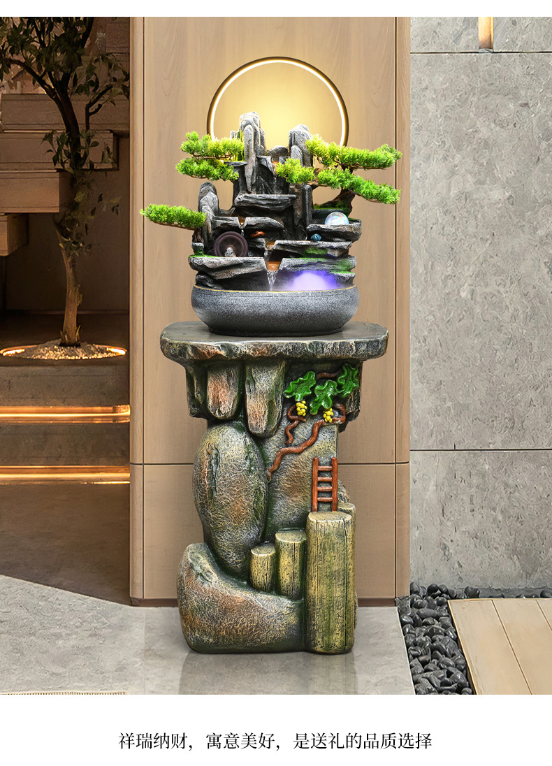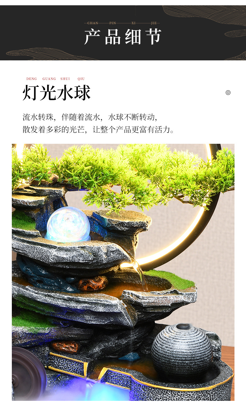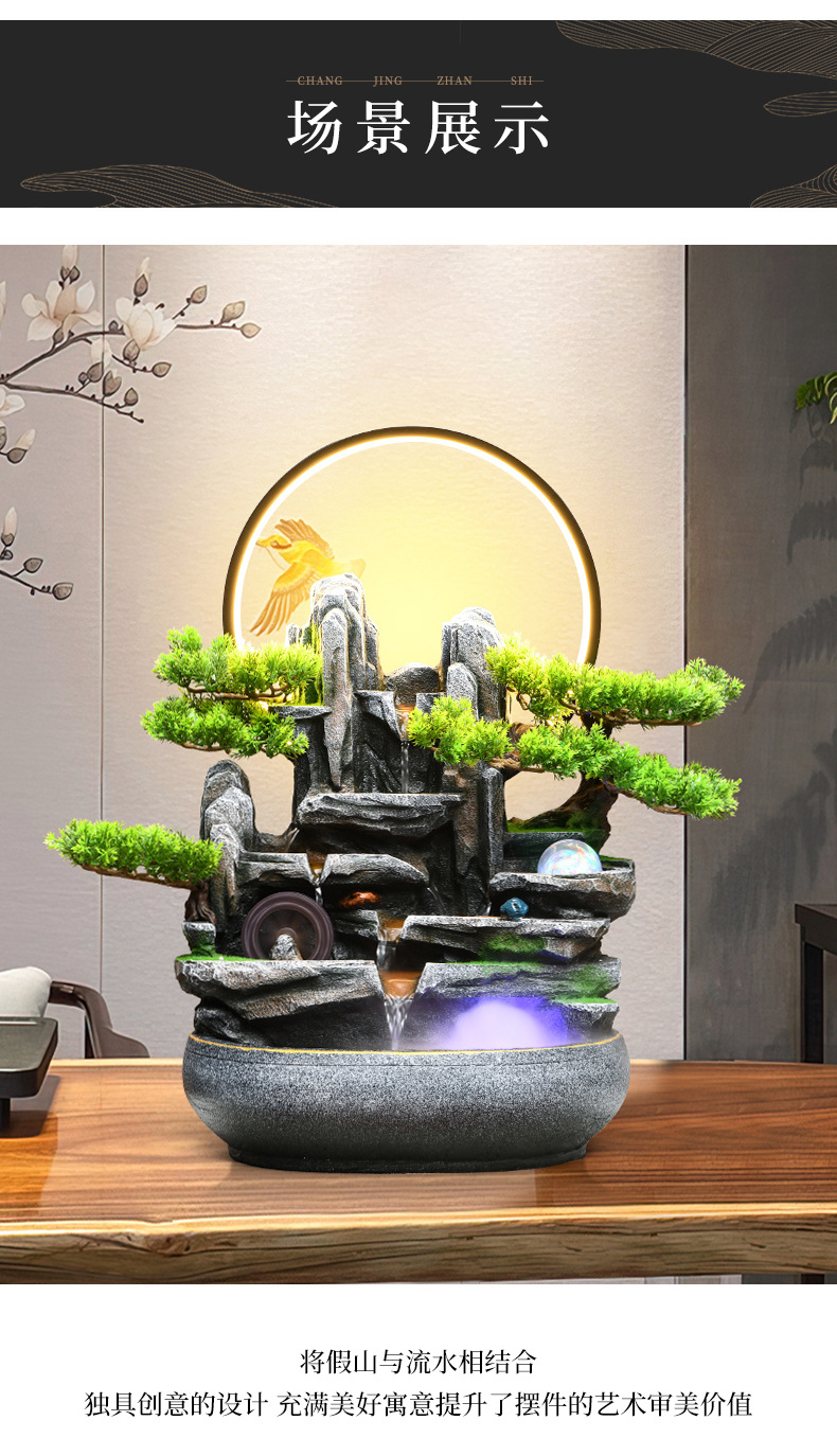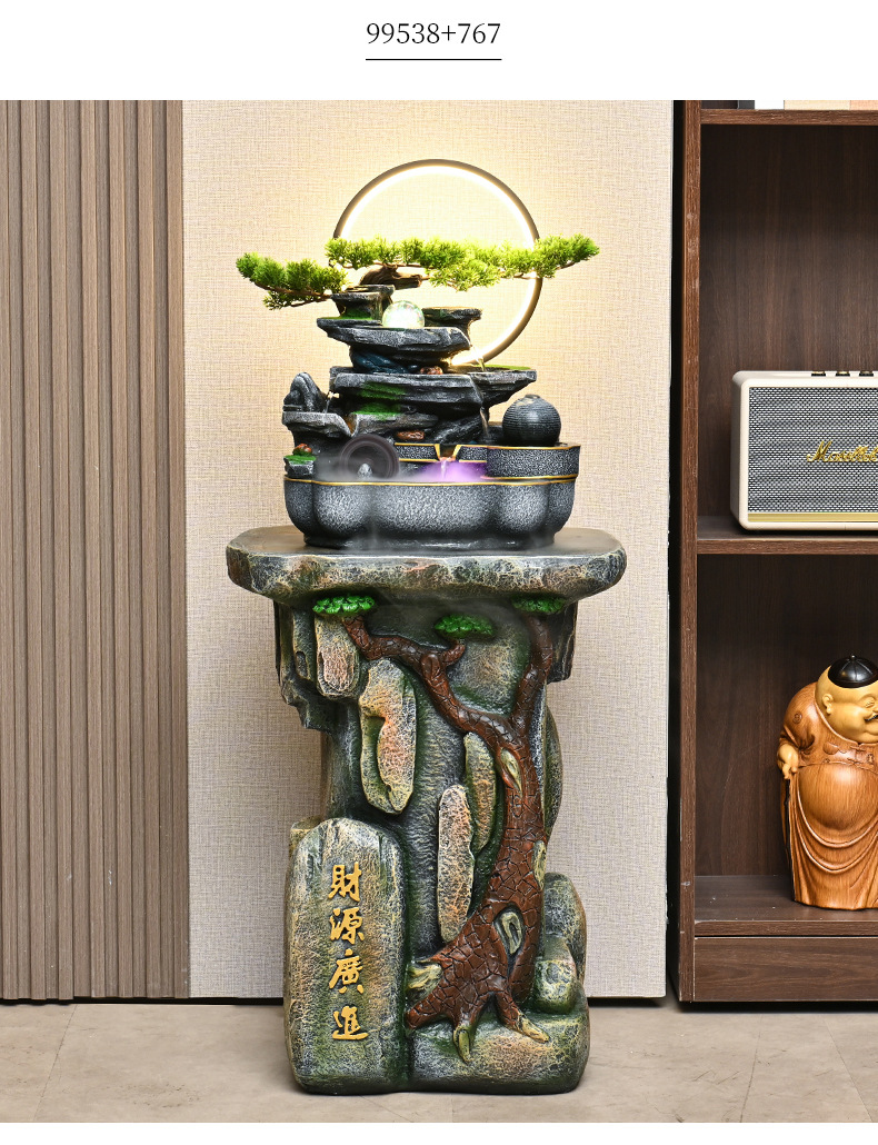 새로운 중국 스타일의 간단한 바위 물 분수 실내 데스크탑 바닥 분재 장식 가습기 풍수 공 작은 장식품스토어 가기