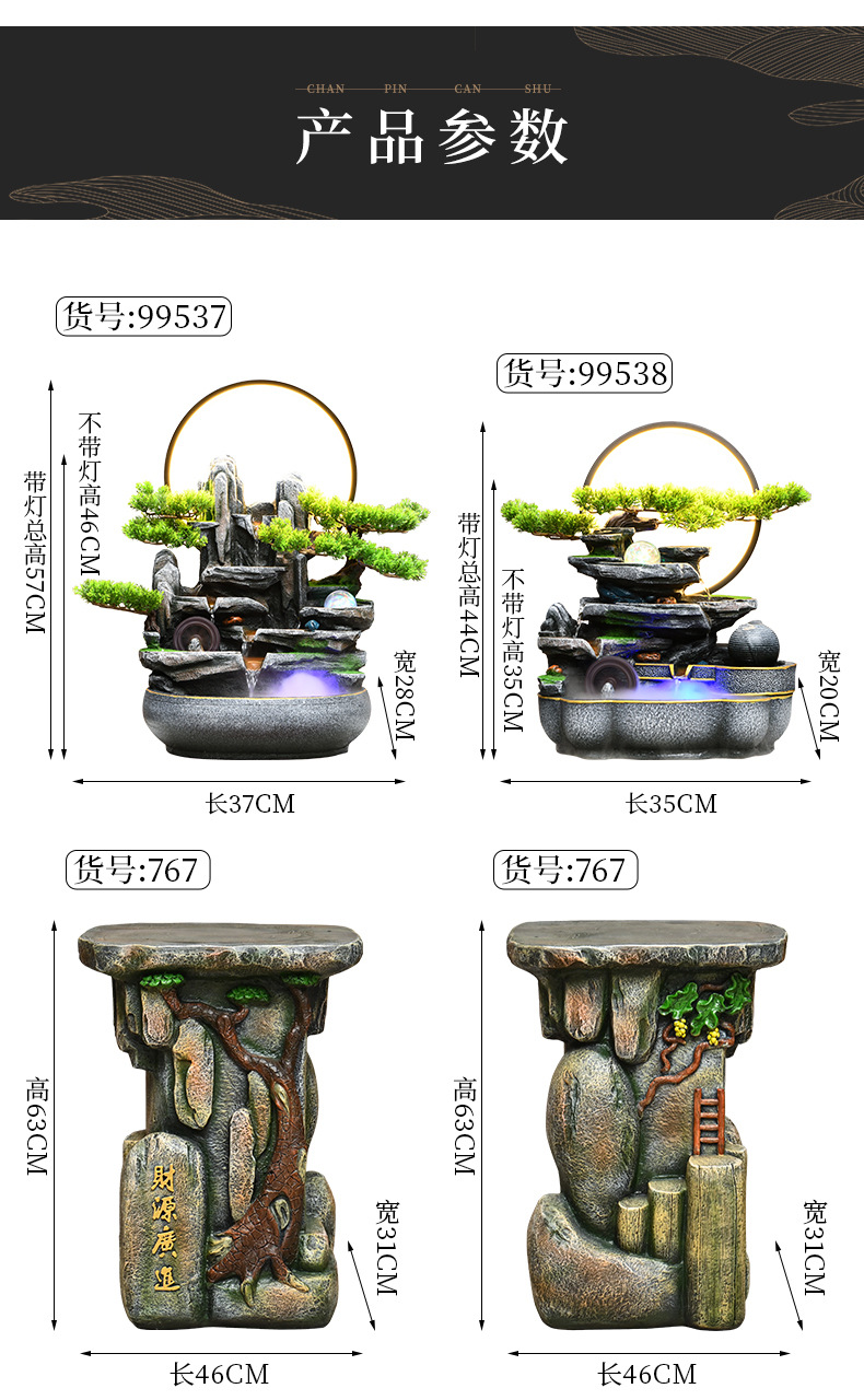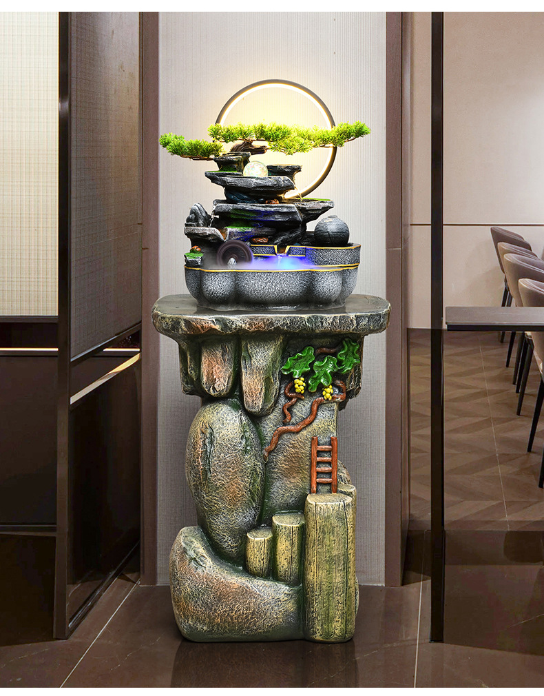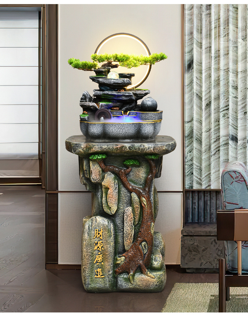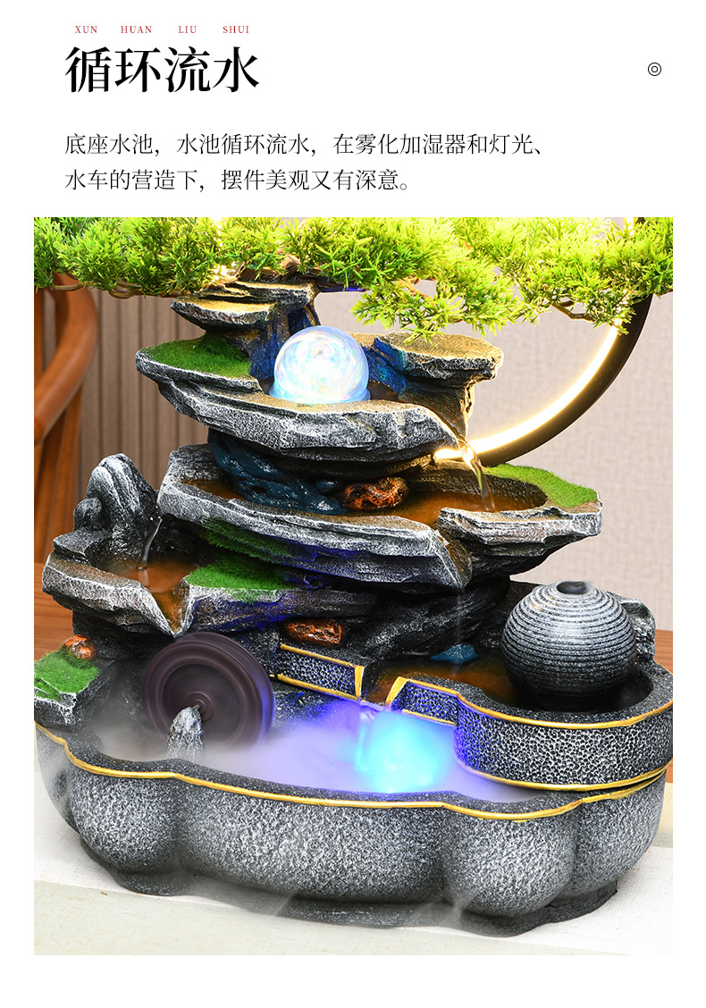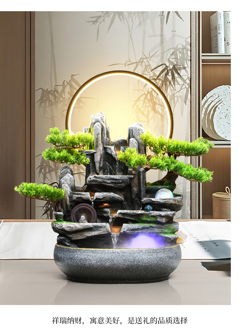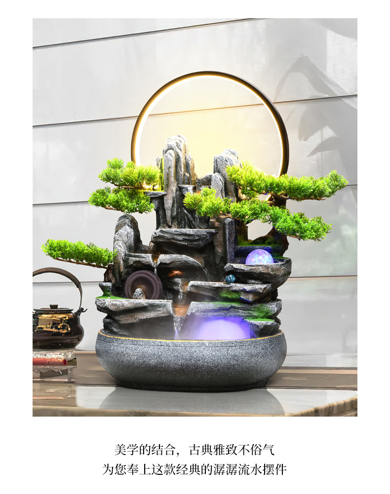 새로운 중국 스타일의 간단한 바위 물 분수 실내 데스크탑 바닥 분재 장식 가습기 풍수 공 작은 장식품