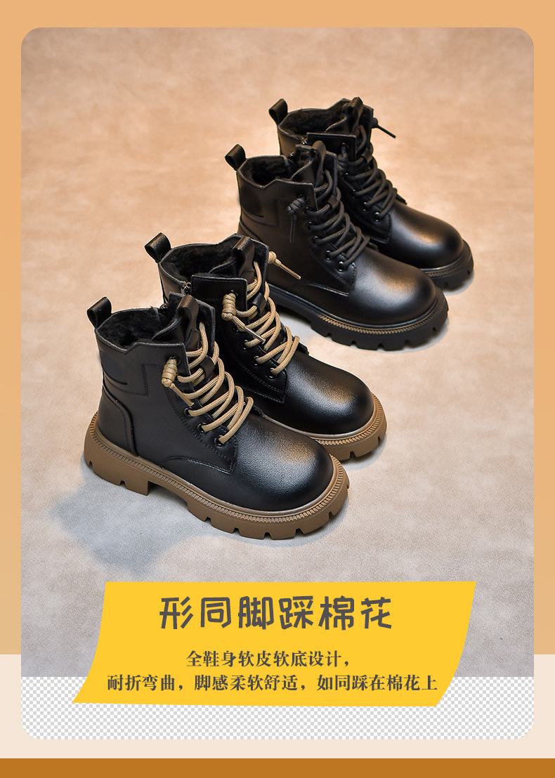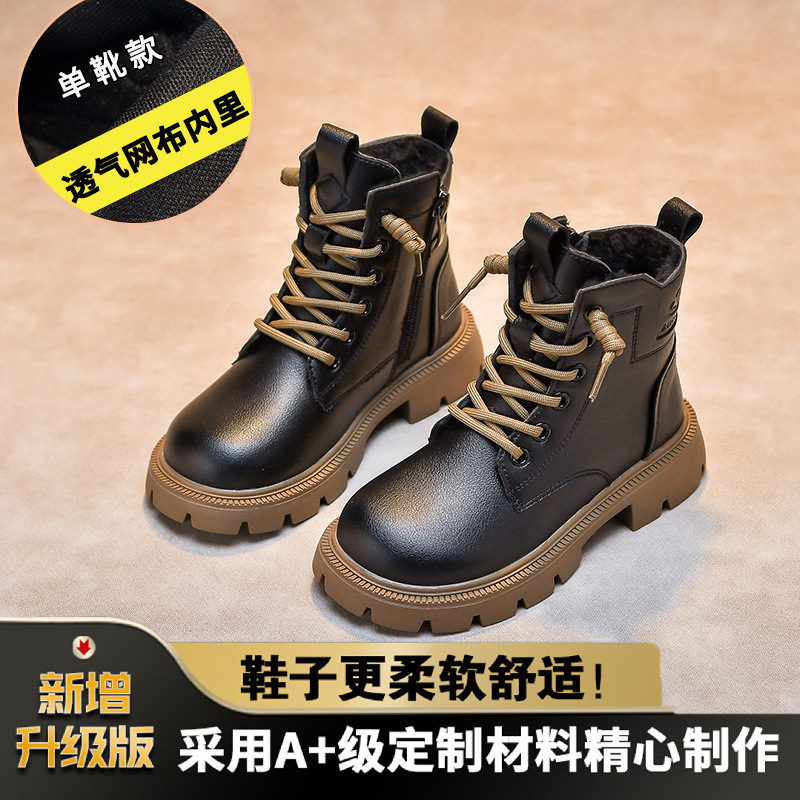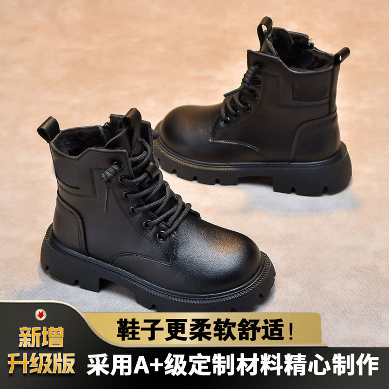 소녀 부츠 가을 겨울 2024 새로운 기모 가죽 부츠 중대형 어린이 영어 스타일 부드러운 바닥 마틴 부츠 소년 작은 가죽 부츠