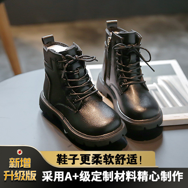 소녀 부츠 가을 겨울 2024 새로운 기모 가죽 부츠 중대형 어린이 영어 스타일 부드러운 바닥 마틴 부츠 소년 작은 가죽 부츠스토어 가기