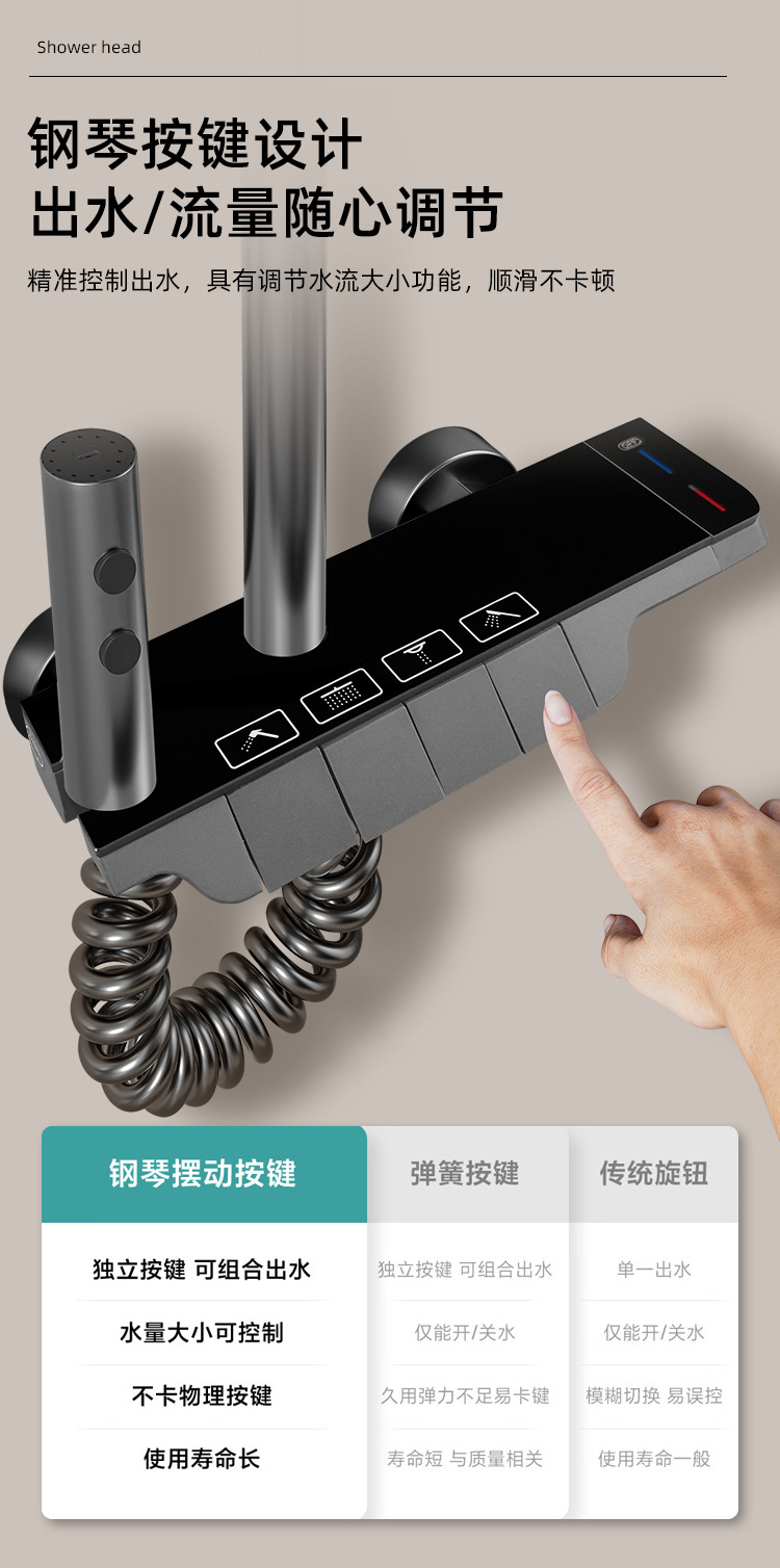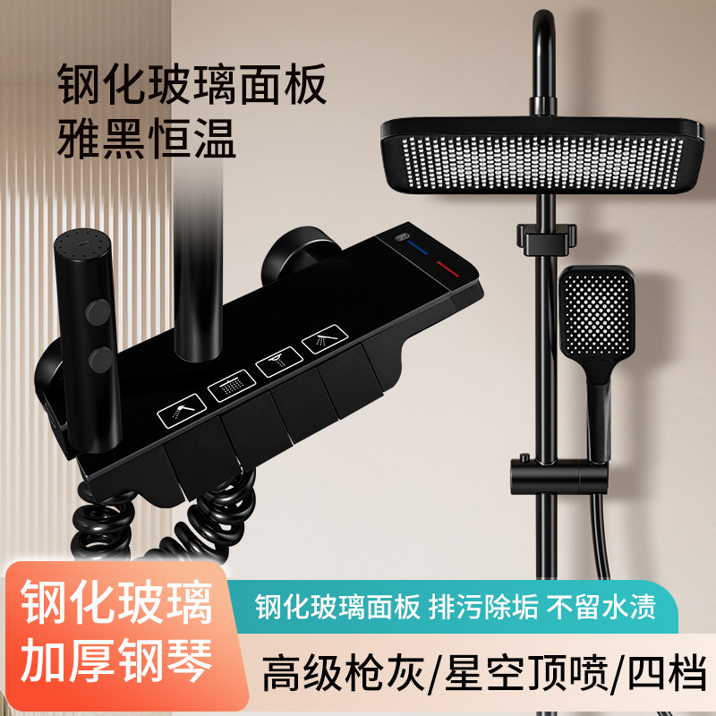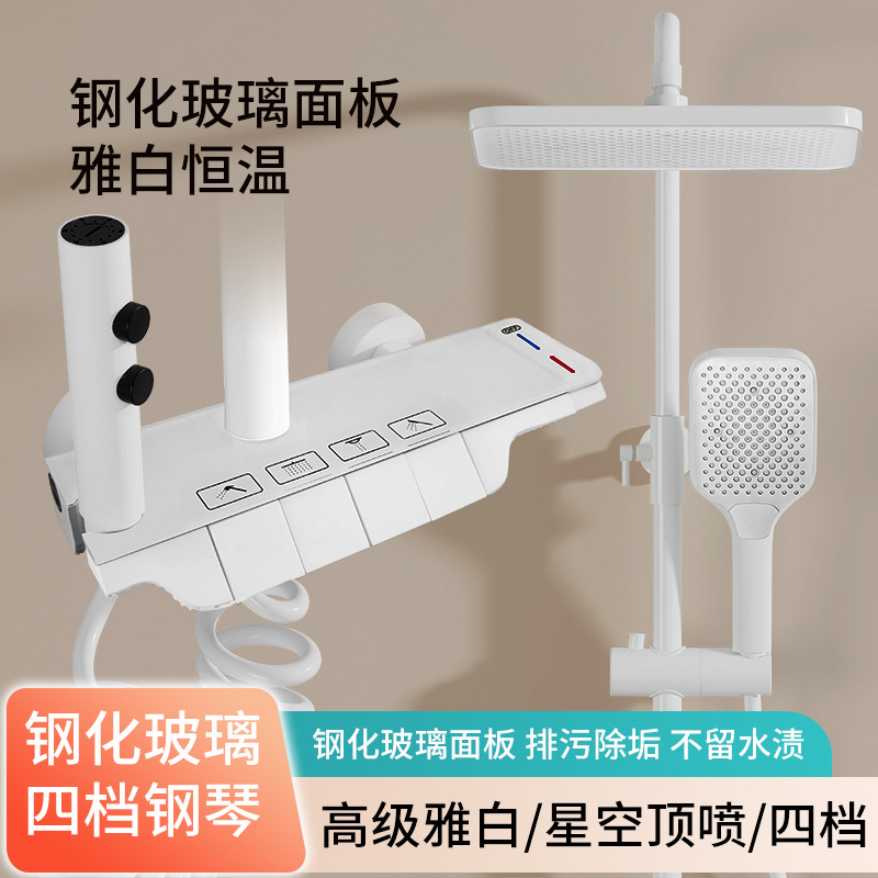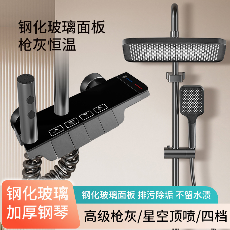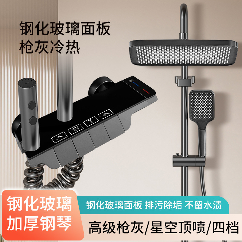 전체 구리 샤워 키트 가정용 욕실 욕실 항온 유리 피아노 버튼 레인 부스터 노즐
