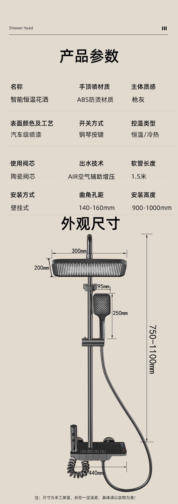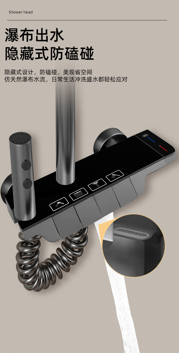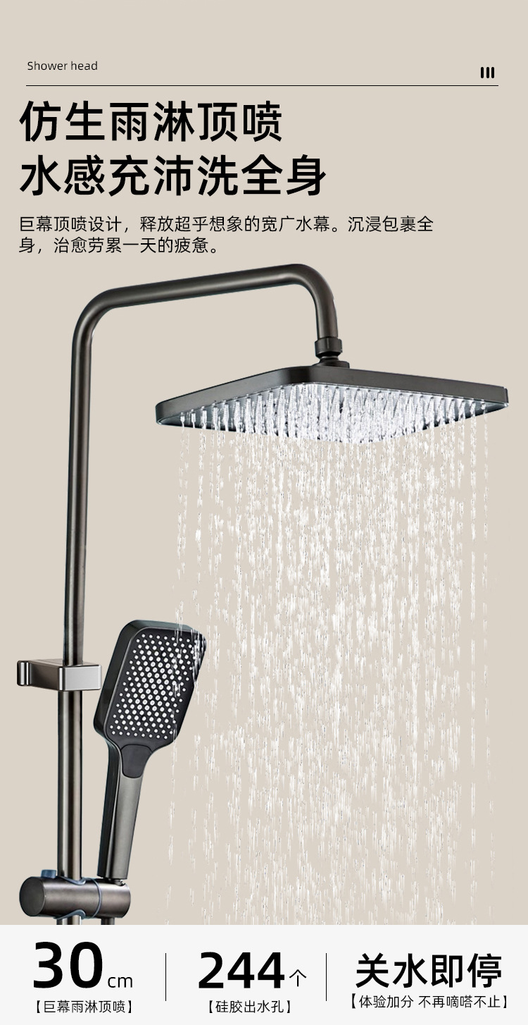 전체 구리 샤워 키트 가정용 욕실 욕실 항온 유리 피아노 버튼 레인 부스터 노즐