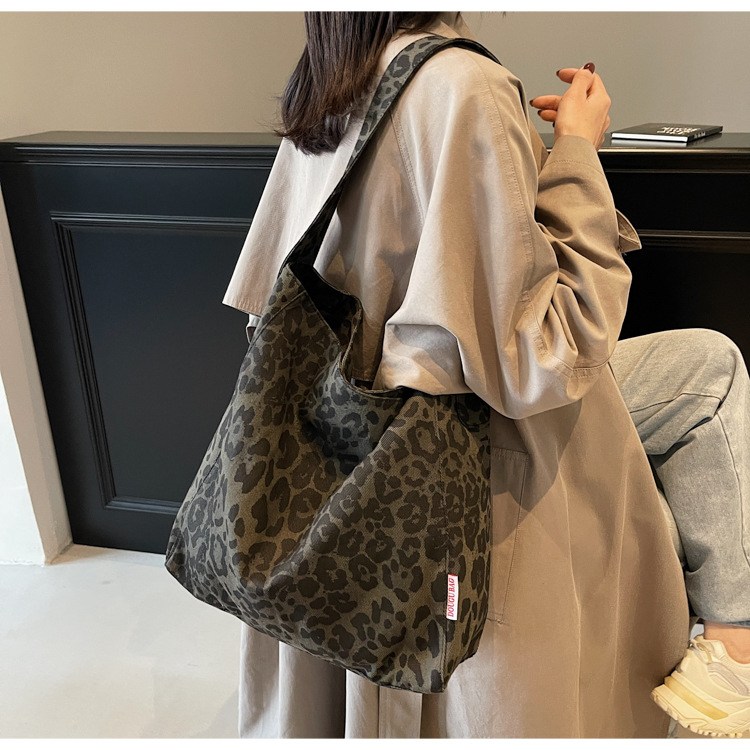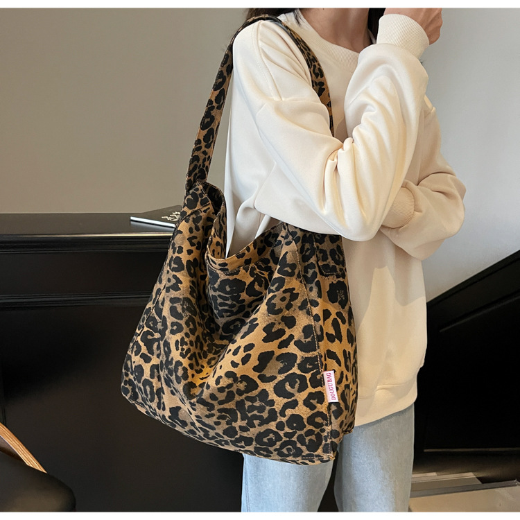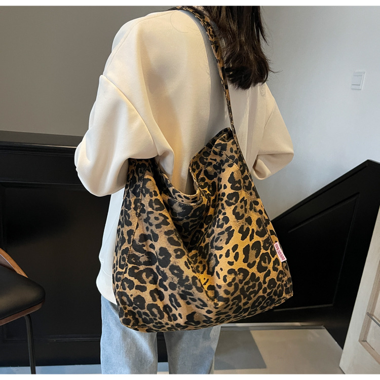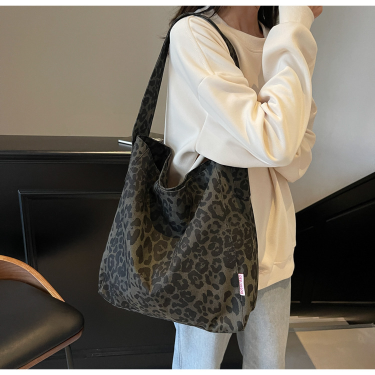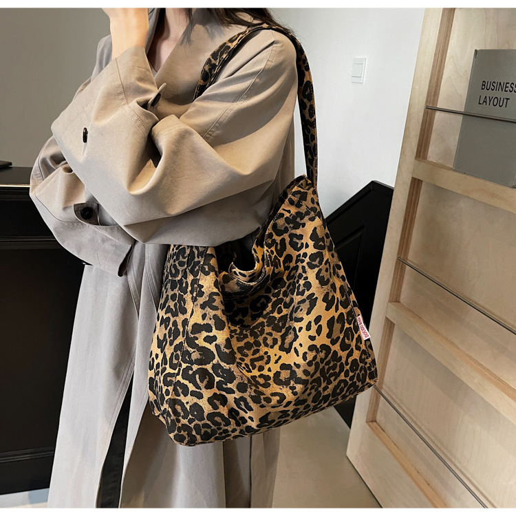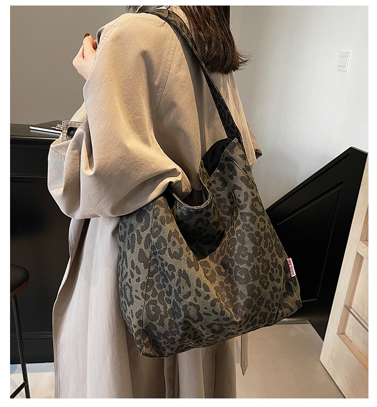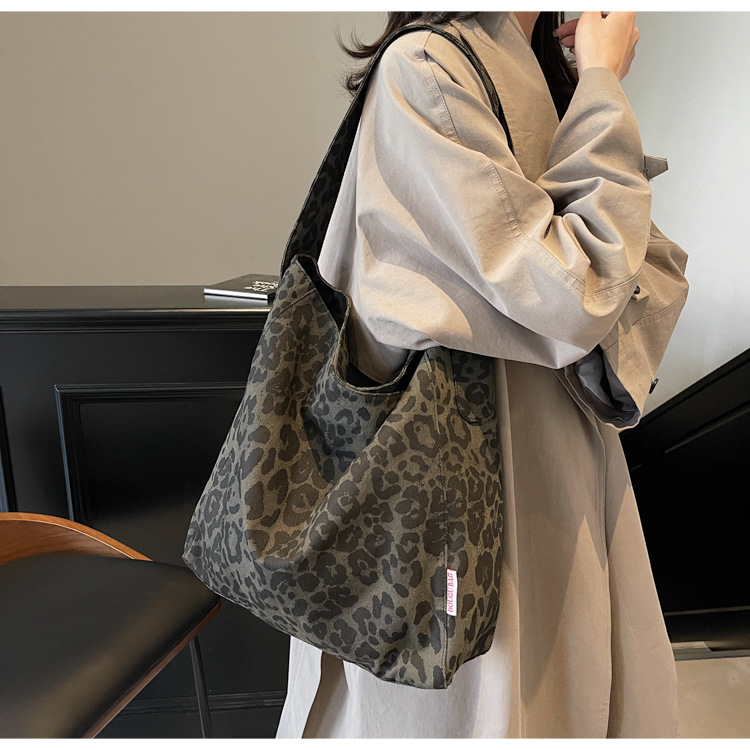 레오파드 무늬 캔버스 가방 여성의 새로운 한국 스타일 가을 및 겨울 대용량 통근 어깨 토트 백 게으른 슬랙 토트 백스토어 가기