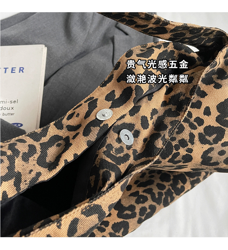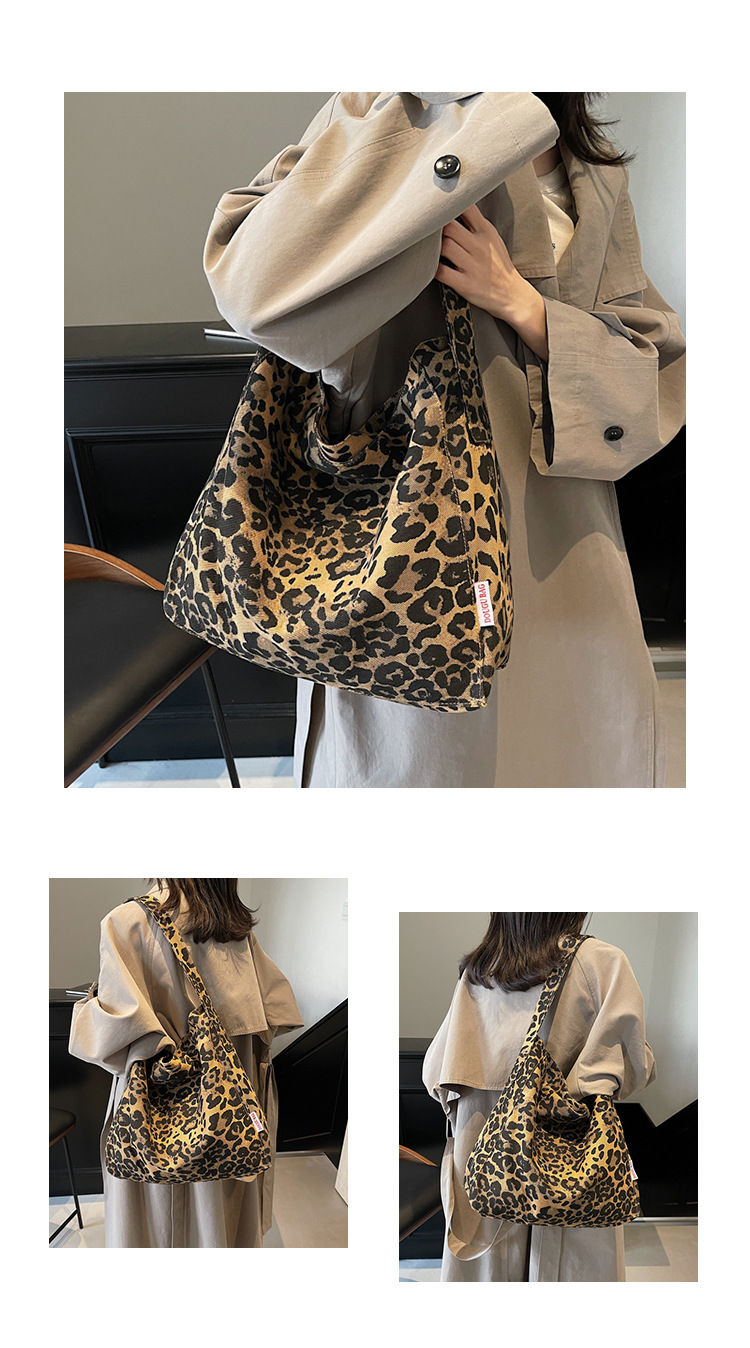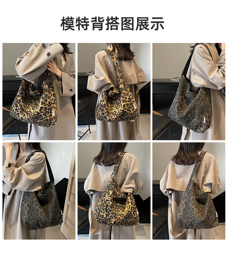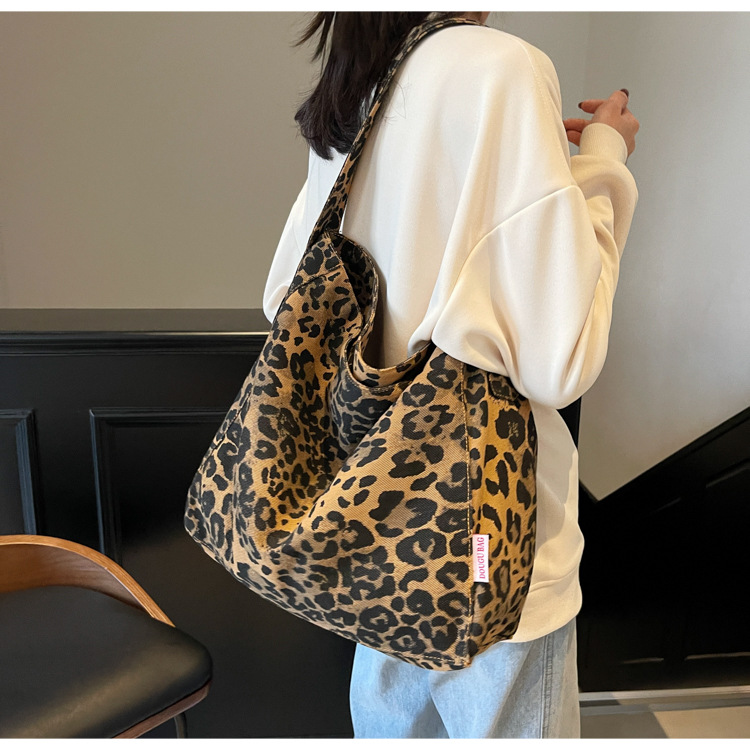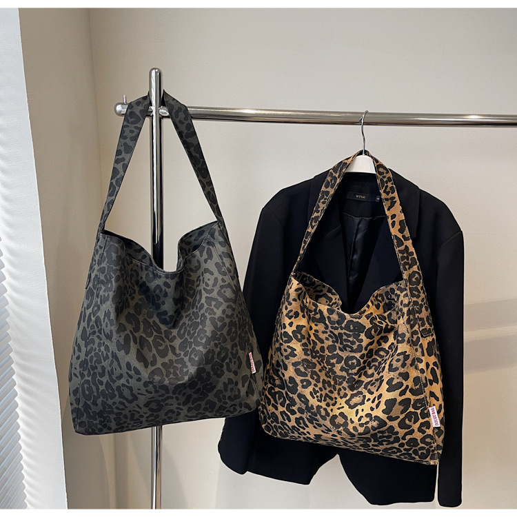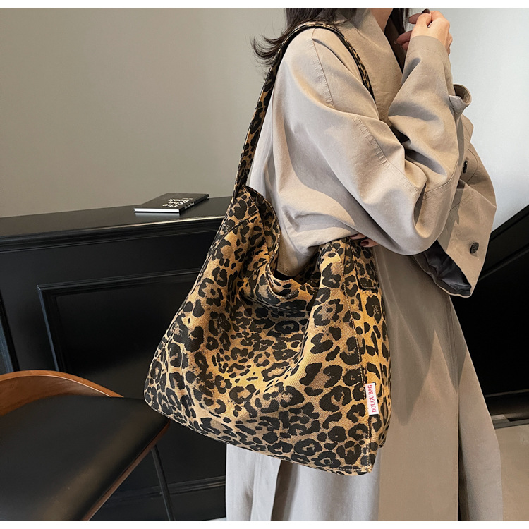 레오파드 무늬 캔버스 가방 여성의 새로운 한국 스타일 가을 및 겨울 대용량 통근 어깨 토트 백 게으른 슬랙 토트 백스토어 가기