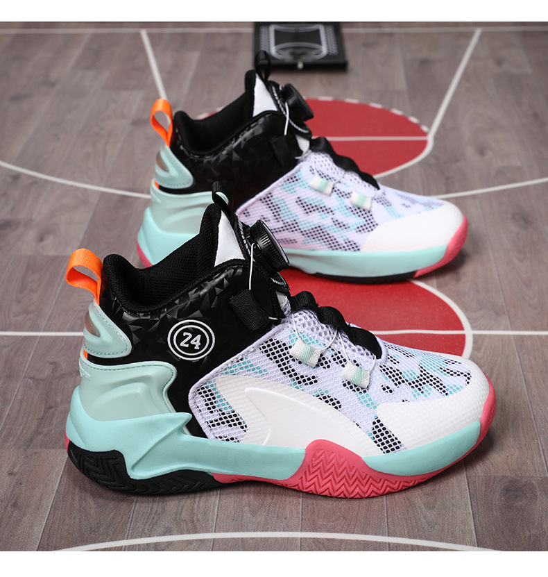 초등학생을위한 달리기 신발 어린이 신발 농구 신발 소년을위한 어린이 회전 버튼 운동화 메쉬 운동화