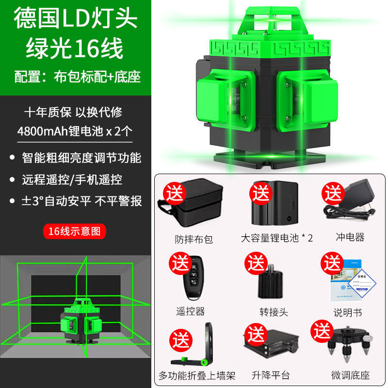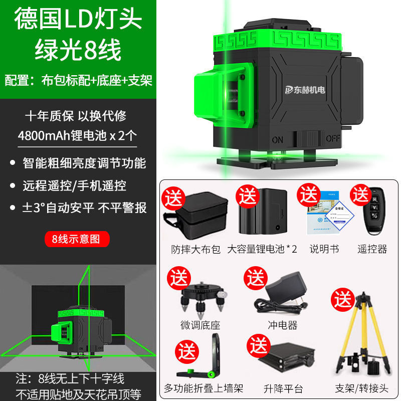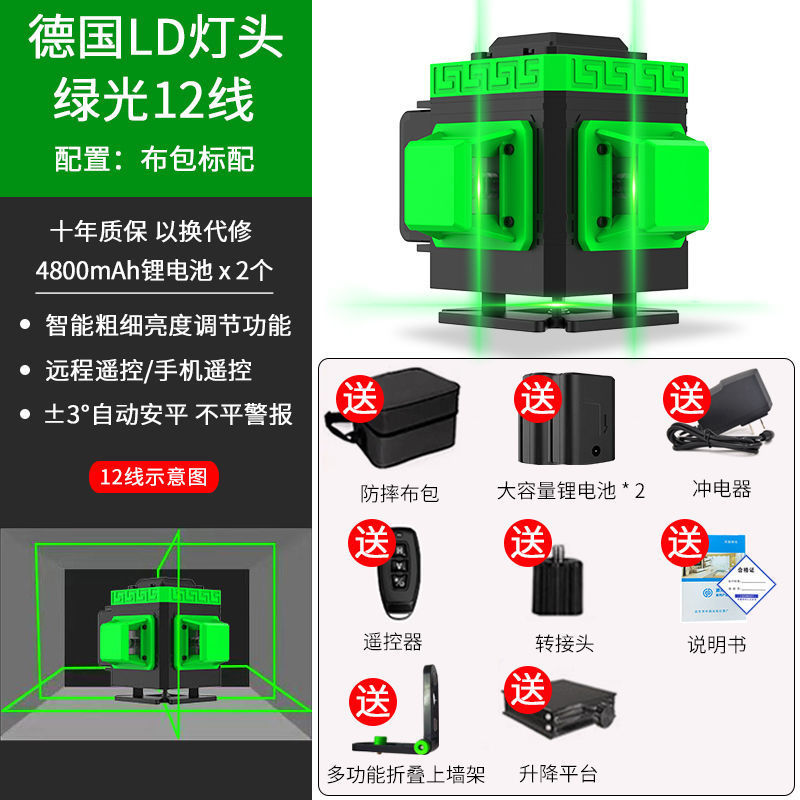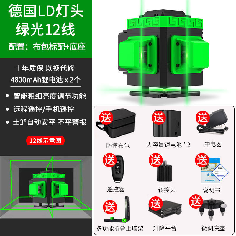 새로운 레이저 적외선 레벨 녹색광 강한 빛 고정밀 자동 레벨링 야외 벽걸이 형 바닥 장비스토어 가기