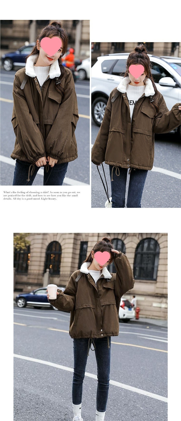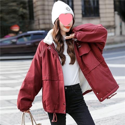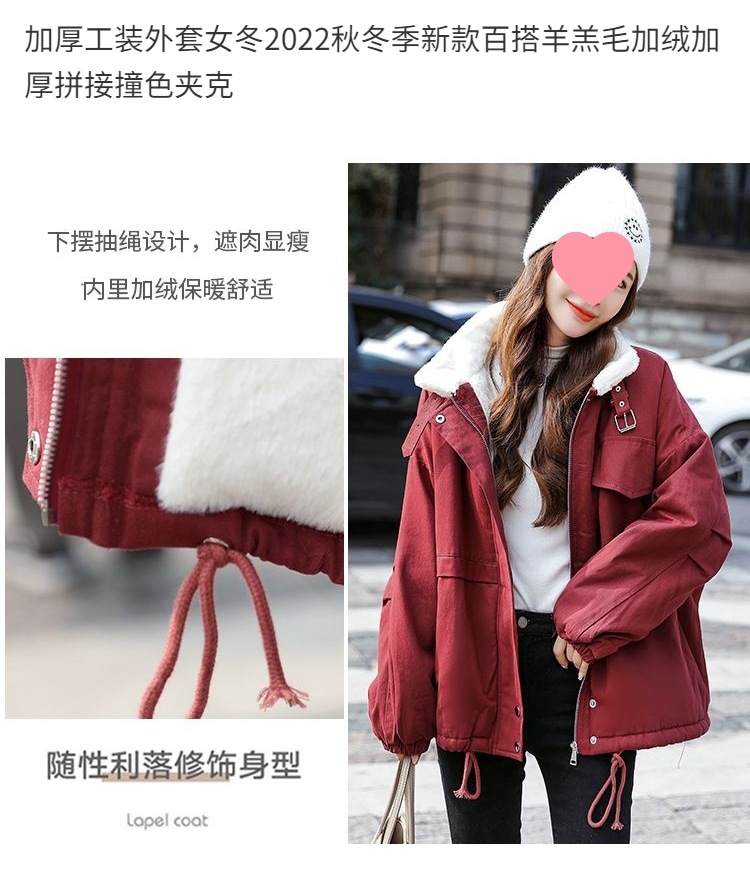 두꺼운 크록 재킷 여자 겨울 2023 가을 및 겨울 새로운 올 매치 양고기 양모 기모 두꺼운 스티칭 콘트라스트 재킷스토어 가기