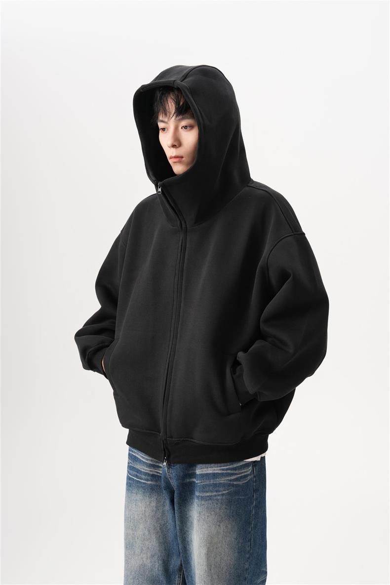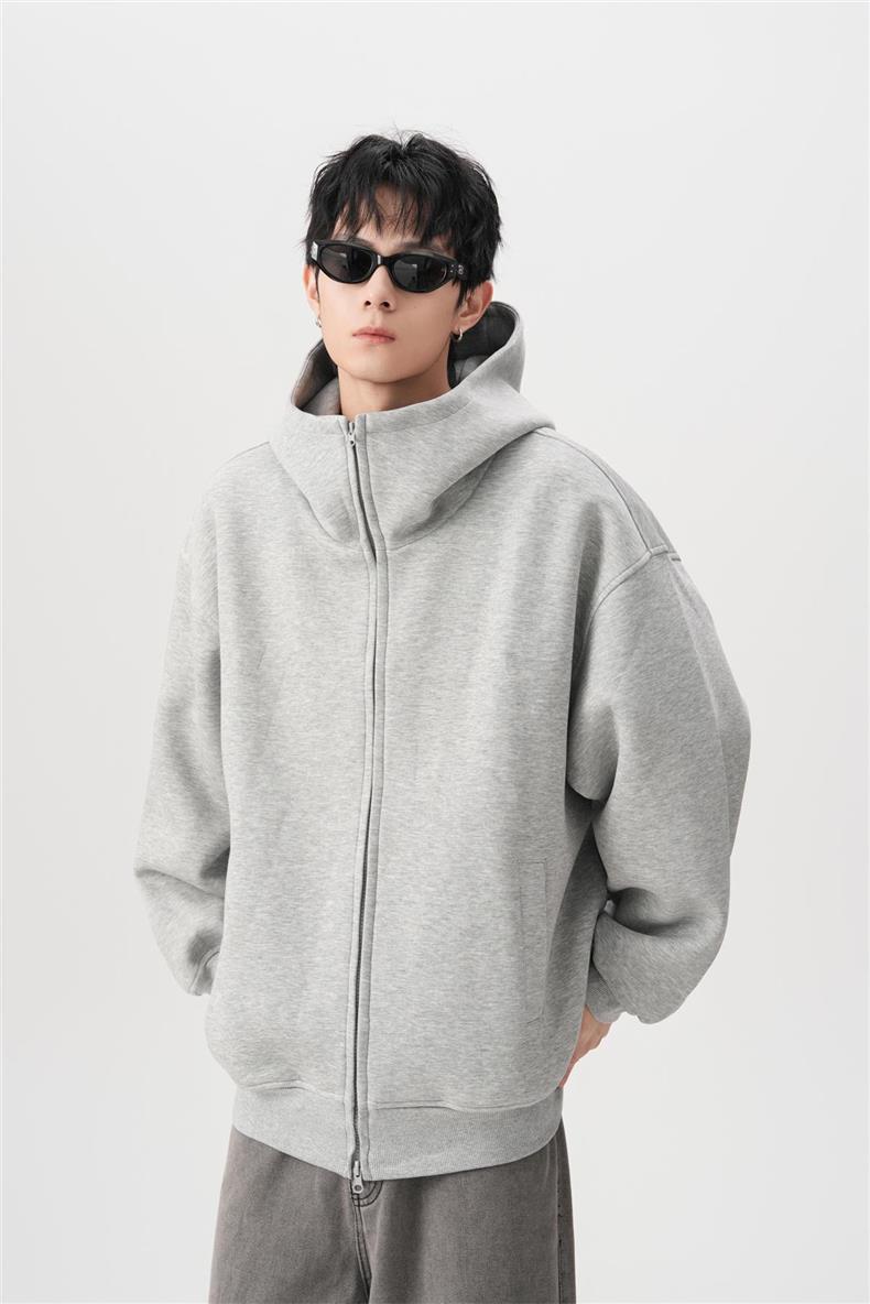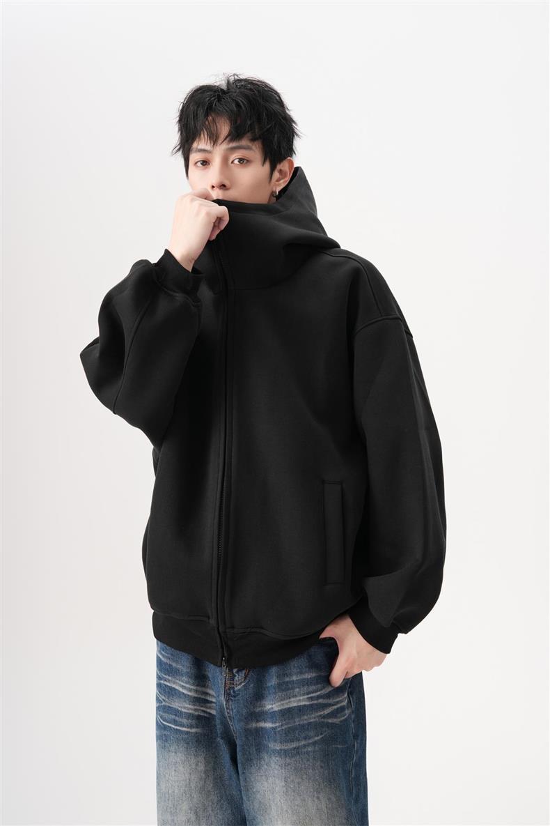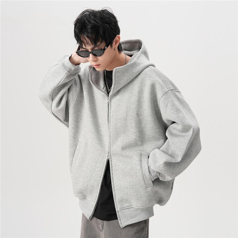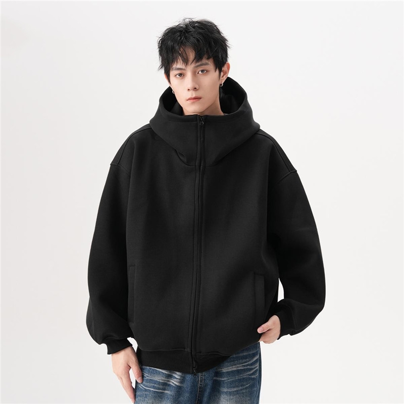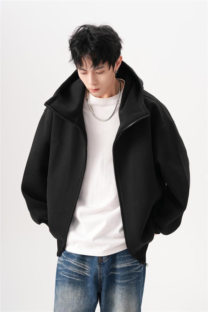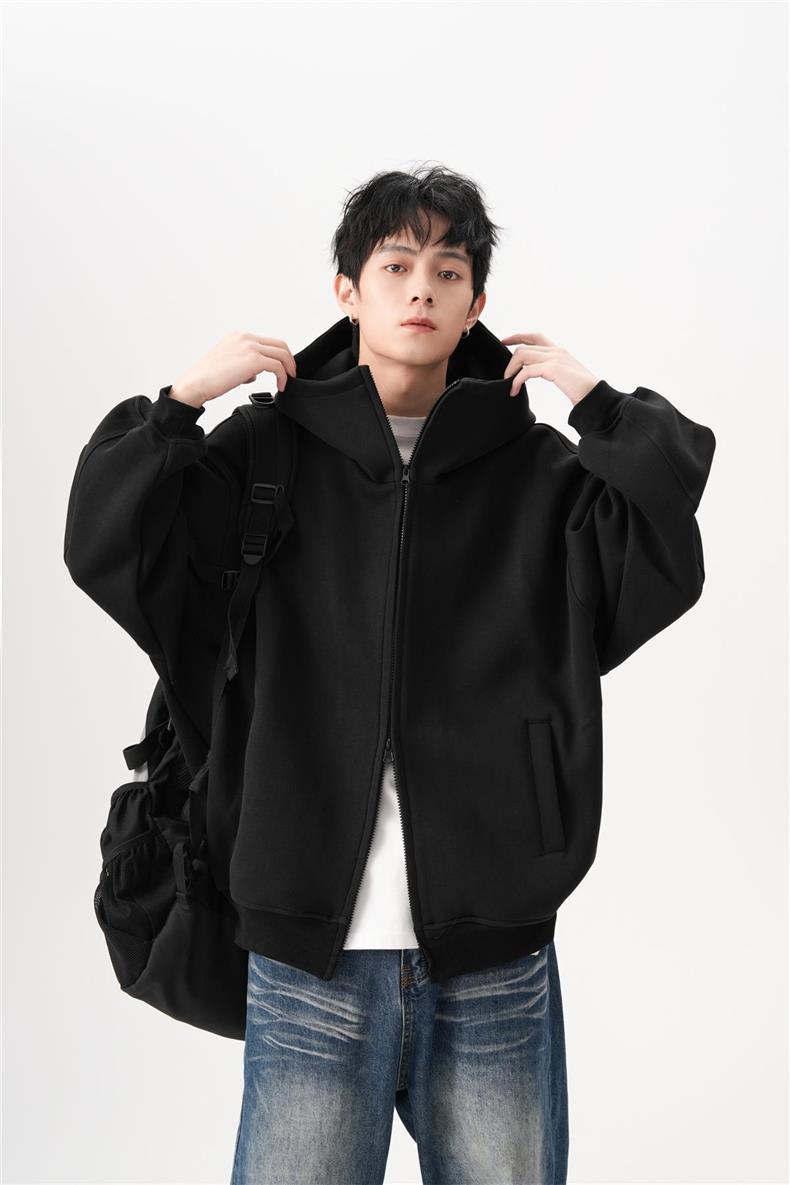 아메리칸 스타일 레트로 솔리드 컬러 빅 햇 카디건 스웨터 남자 가을과 겨울 느슨한 올 매치 와이드 더블 지퍼 재킷 트렌디스토어 가기