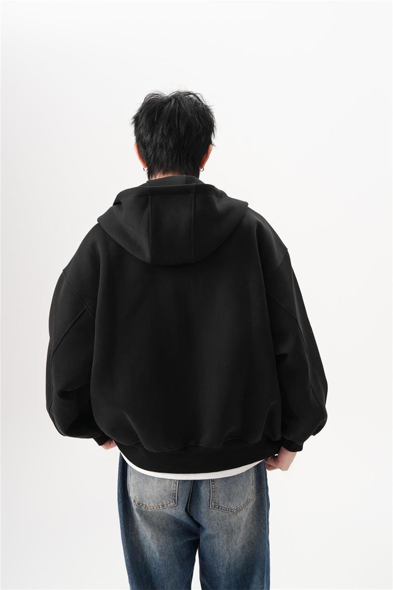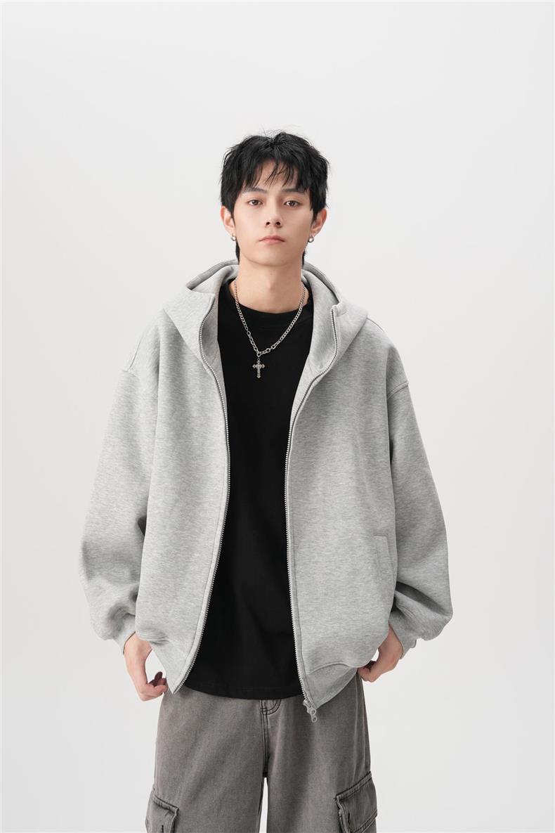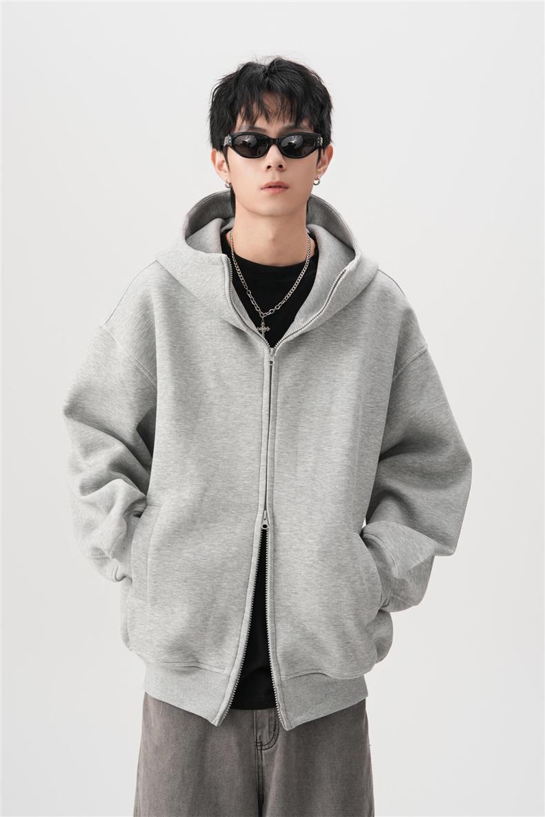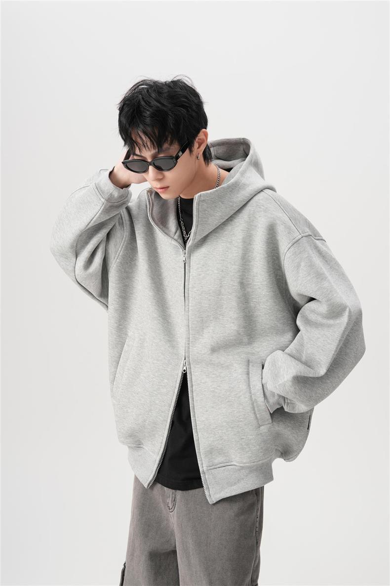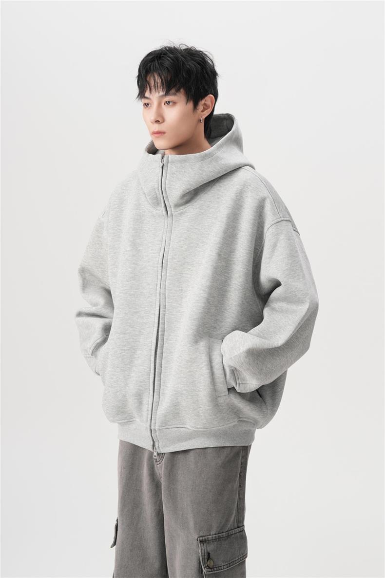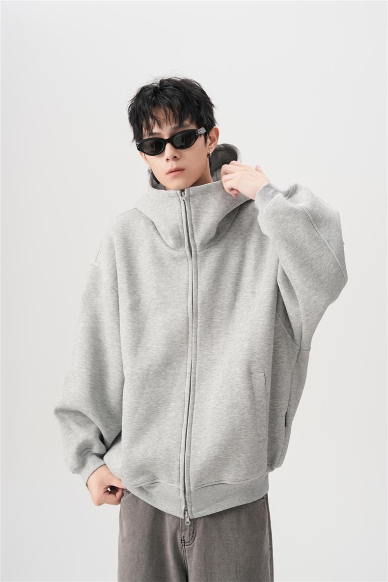 아메리칸 스타일 레트로 솔리드 컬러 빅 햇 카디건 스웨터 남자 가을과 겨울 느슨한 올 매치 와이드 더블 지퍼 재킷 트렌디스토어 가기