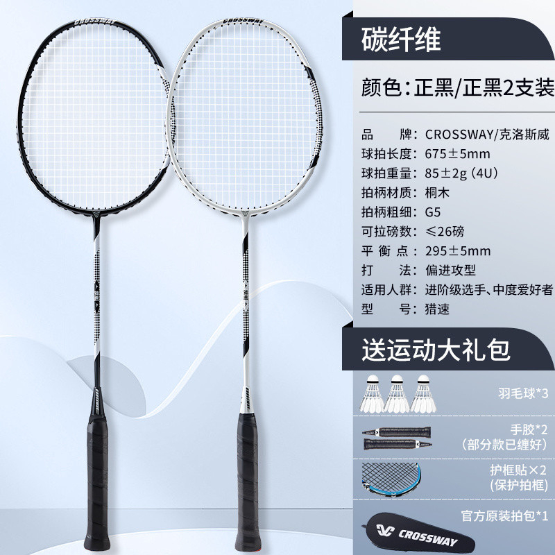 • 풀 카본 파이버 [트루 블랙 2개] 배드민턴 공 3개와 팩 1개 무료 제공