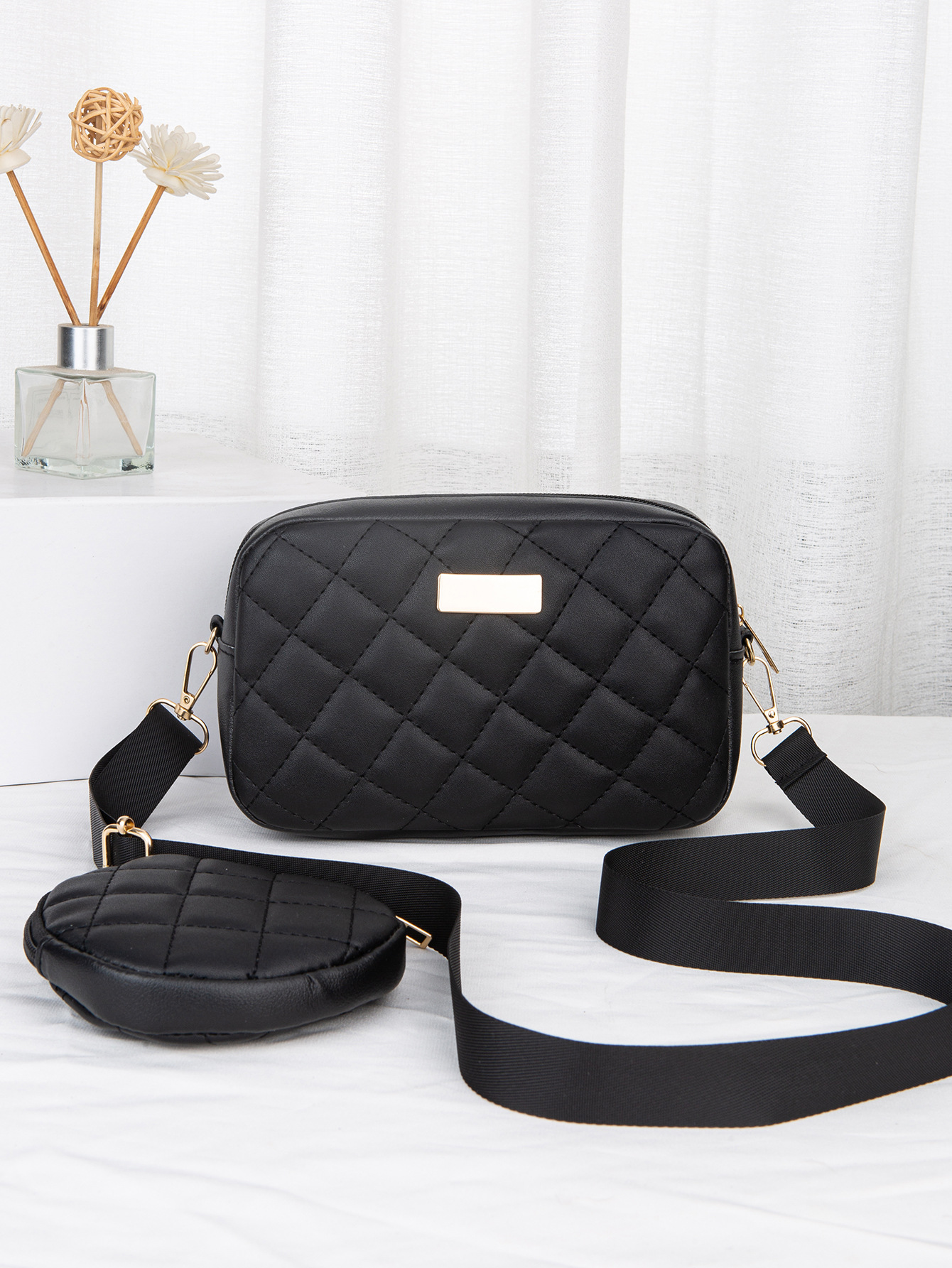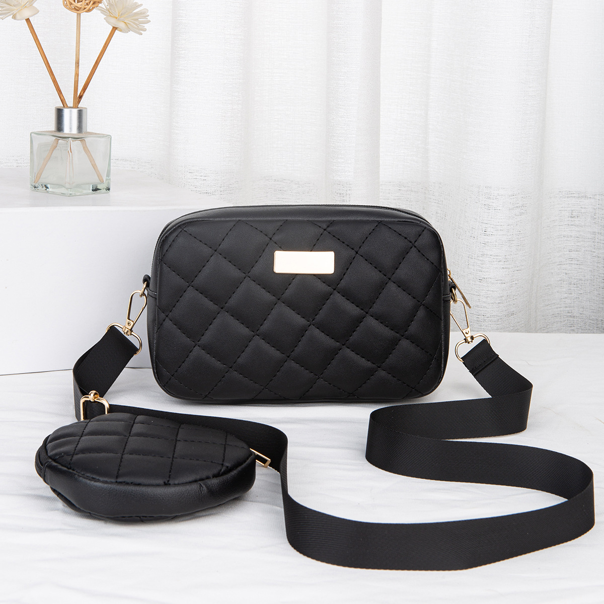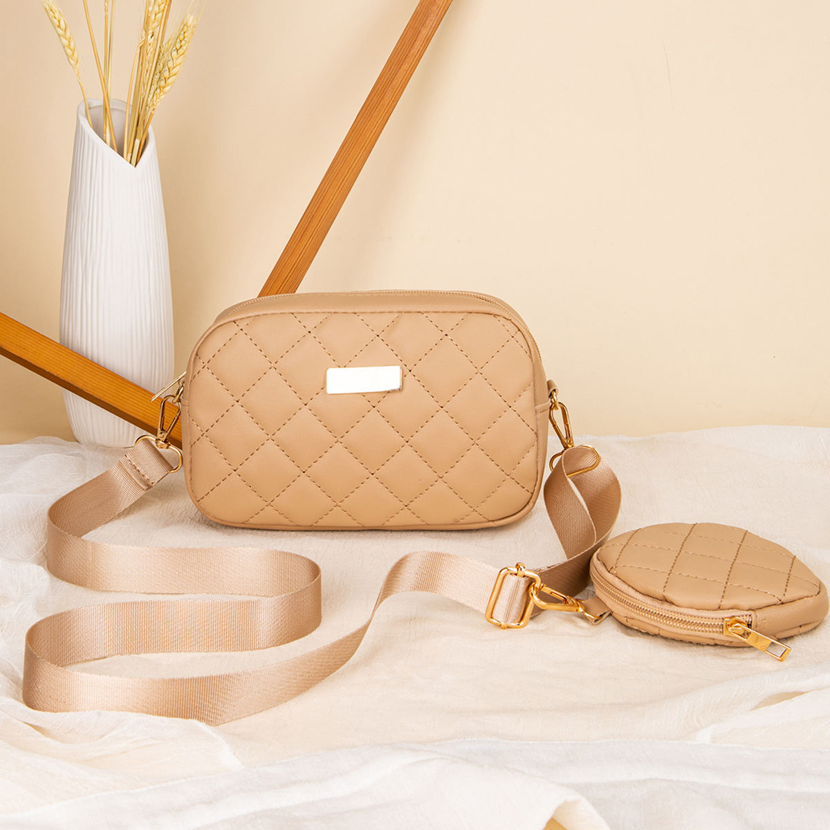새로운 카메라 가방 2024 대외 무역 여성 가방 동전 지갑 작은 향기로운 스타일 대각선 어깨 가방 다이아몬드 격자 가방