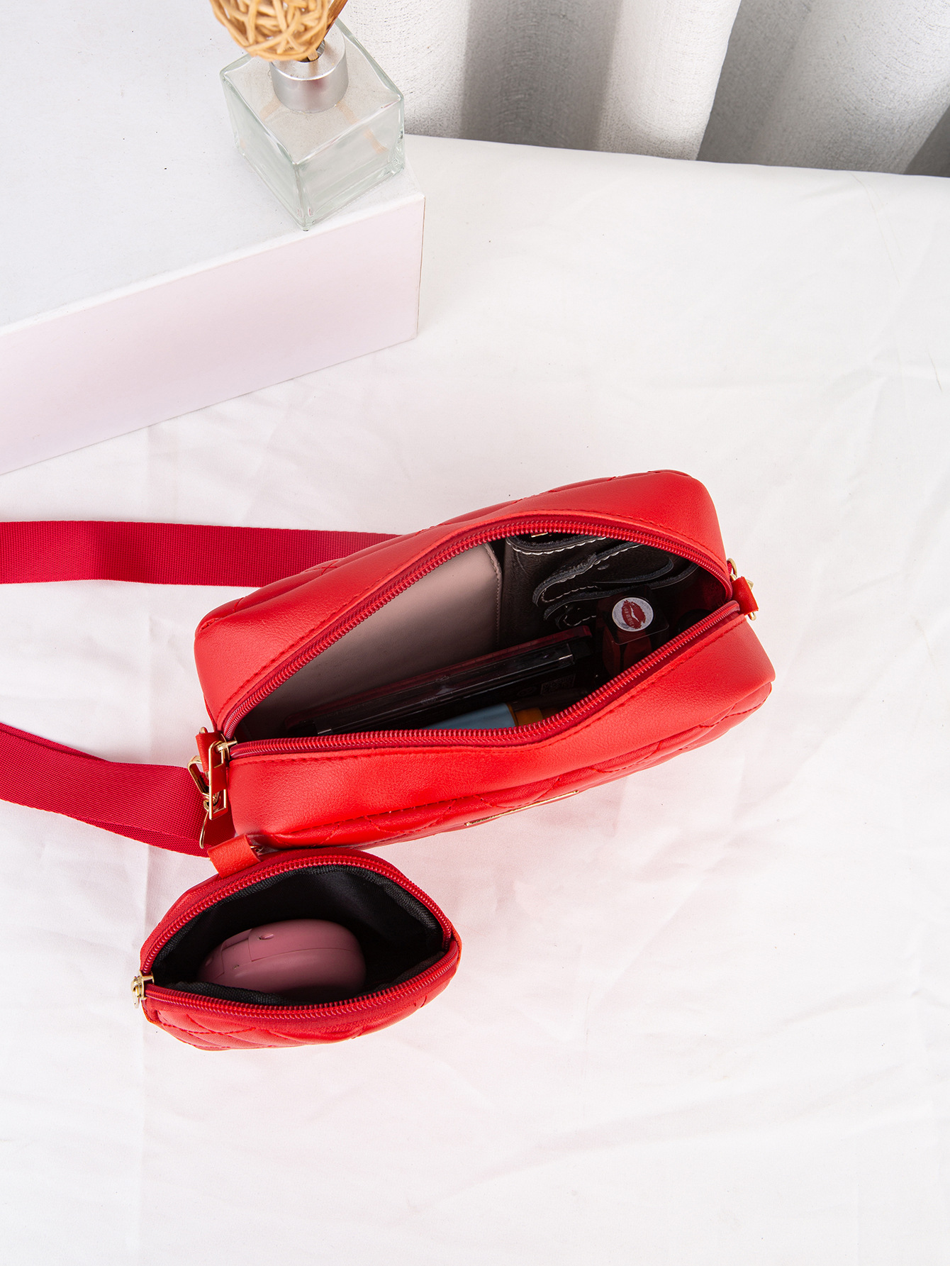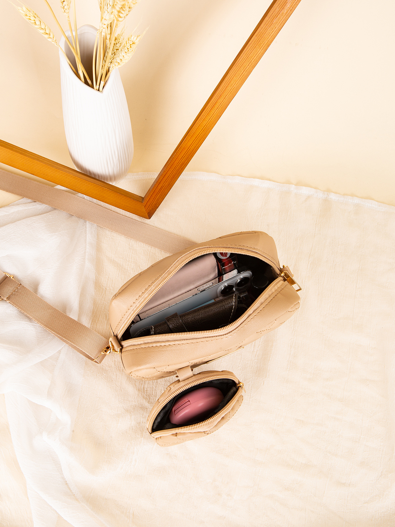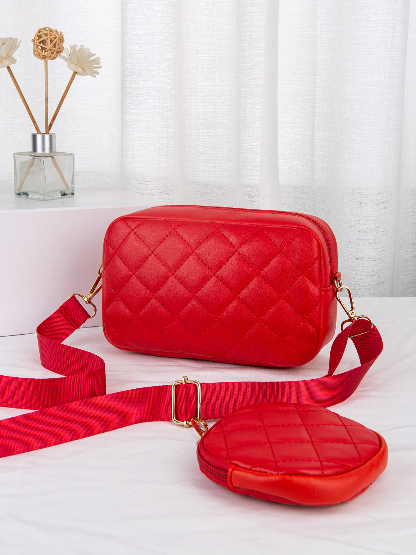 새로운 카메라 가방 2024 대외 무역 여성 가방 동전 지갑 작은 향기로운 스타일 대각선 어깨 가방 다이아몬드 격자 가방