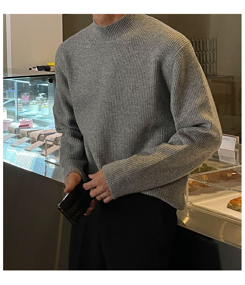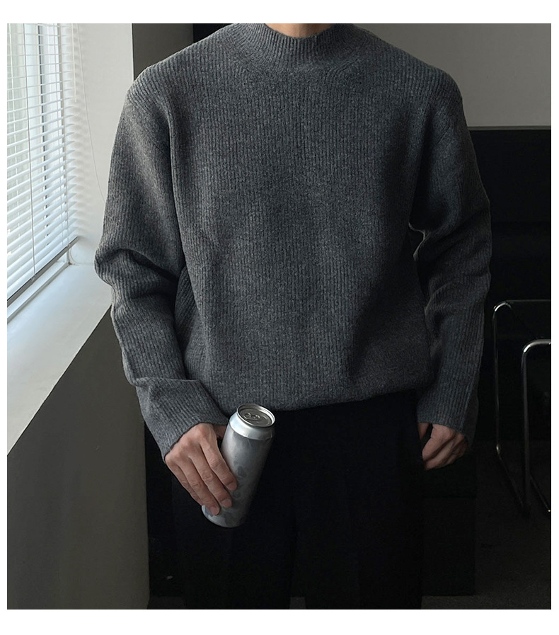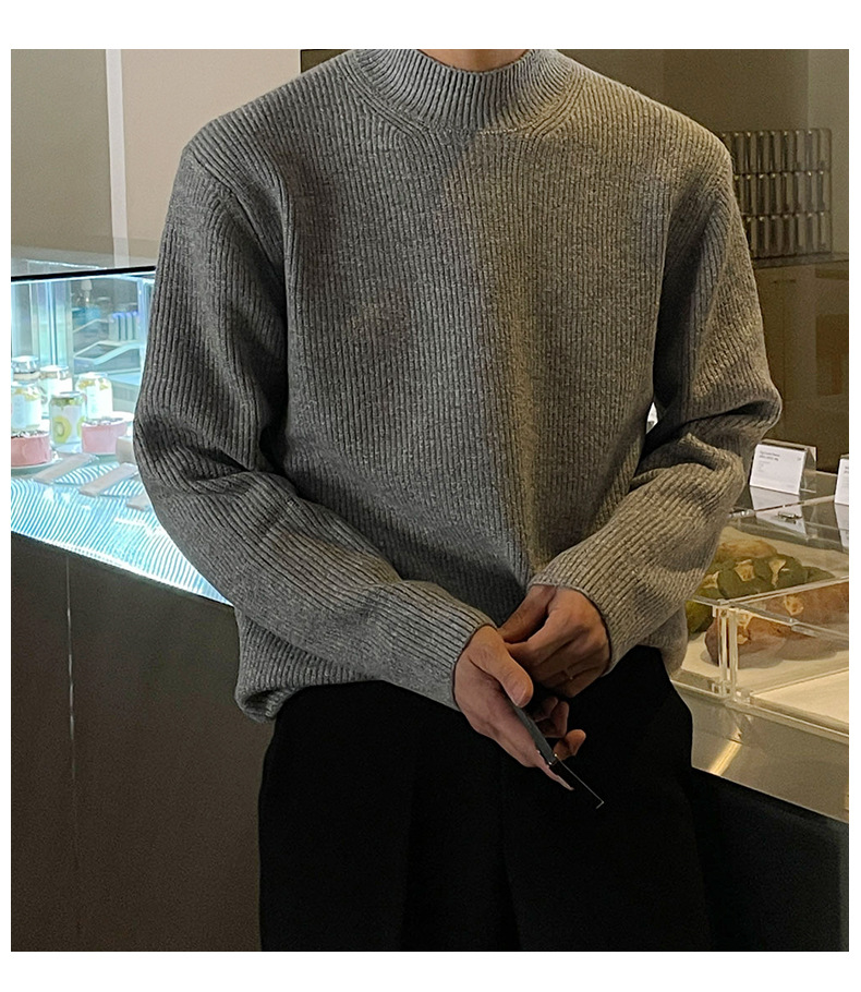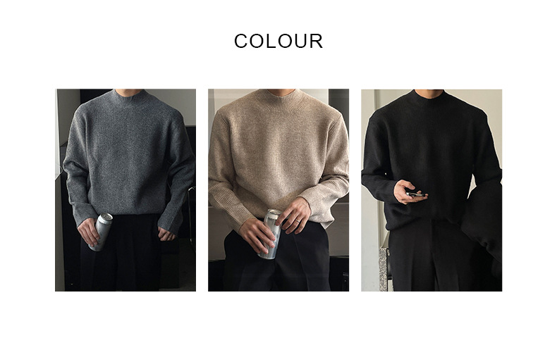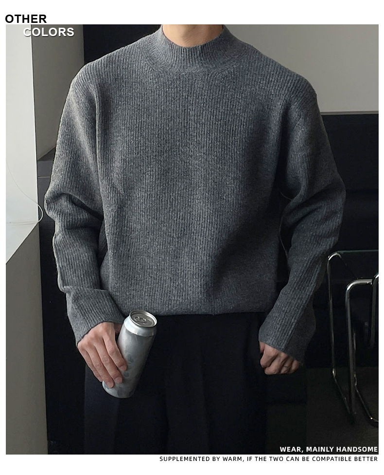 한국식 모의 칼라 코어 스핀 원사 니트 스웨터 남자 슬림 핏 긴팔 스웨터 따뜻한 베이스 울 스웨터 트렌디스토어 가기